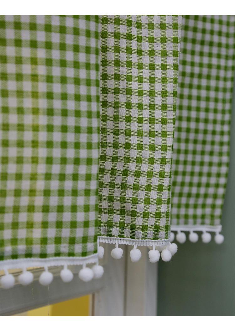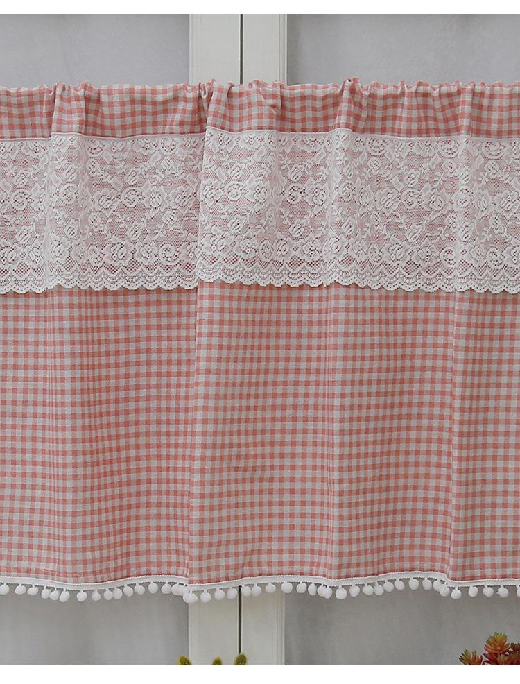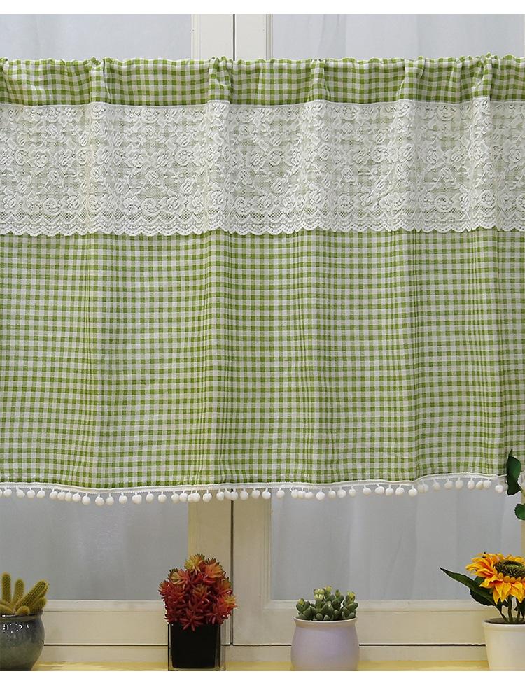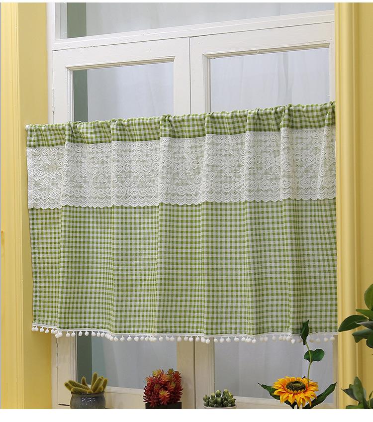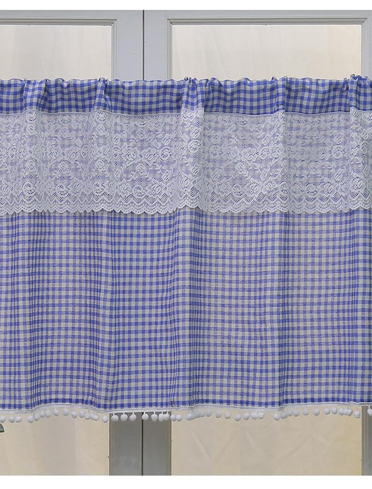 Cortinas Frescas de Cuadros Azules Estilo Americano, Cortinas de Café, Cortinas Pequeñas Montadas en Varilla, Cortinas Cortas de Encaje Acabado, Cortinas de Puerta, Media Cortinas