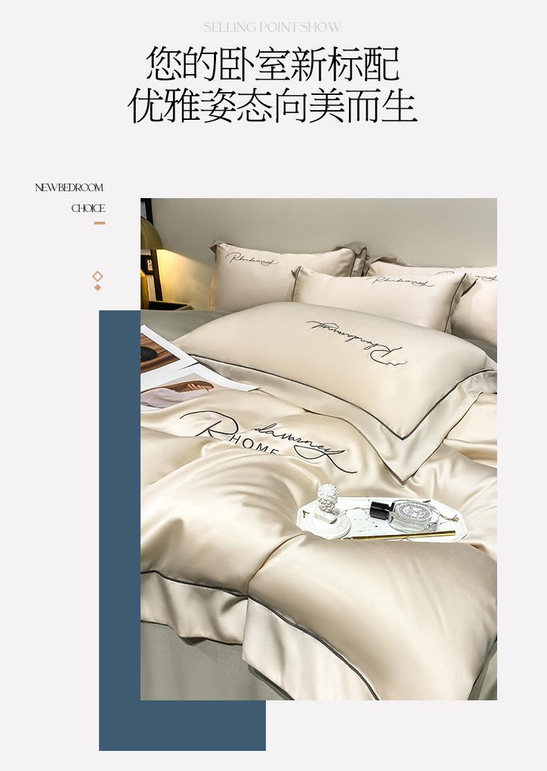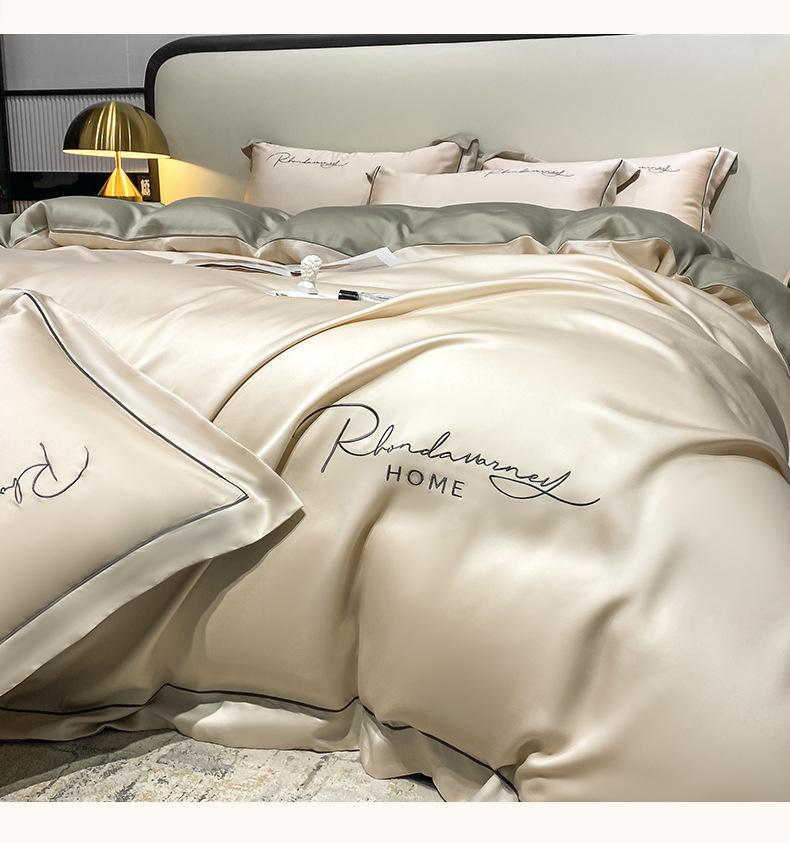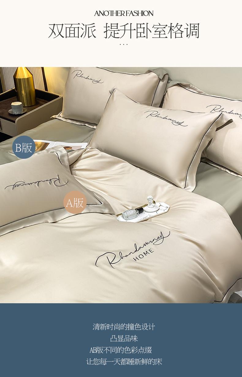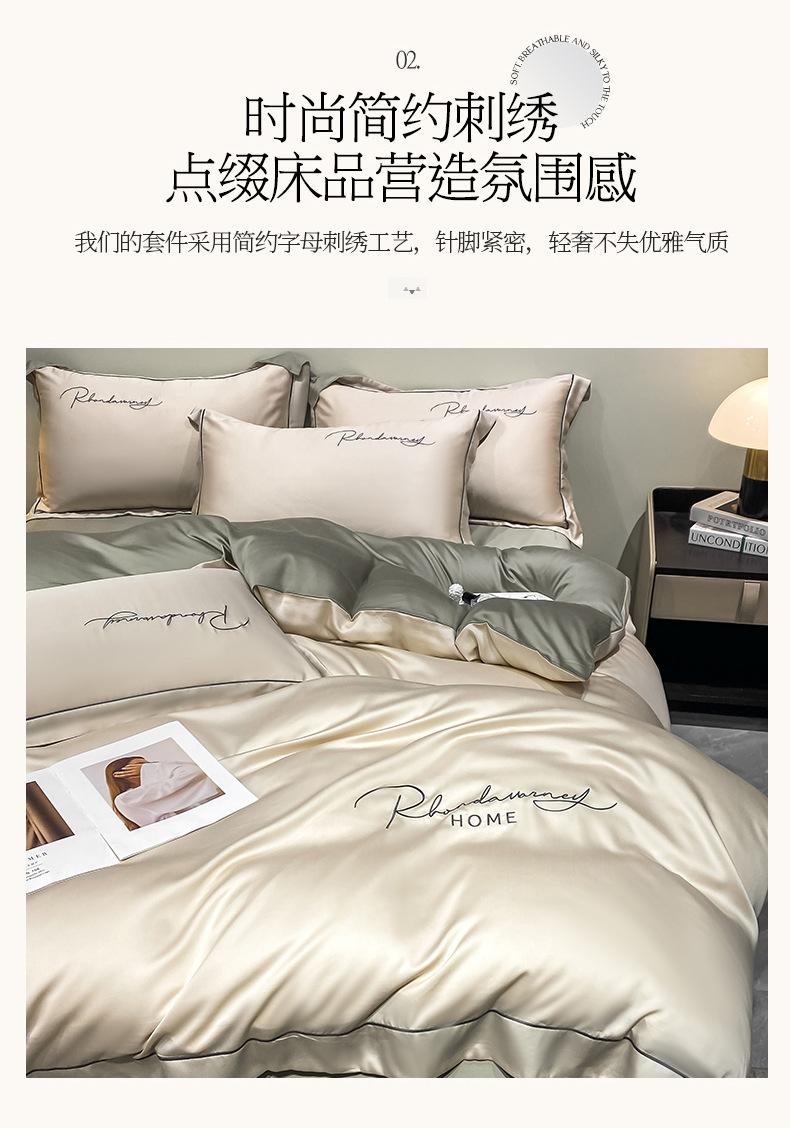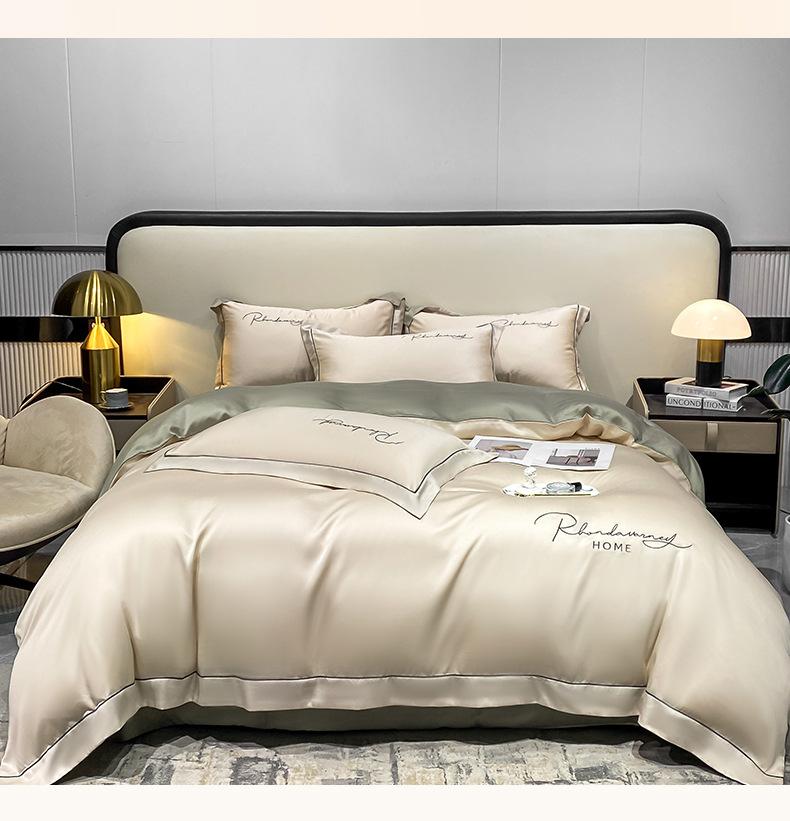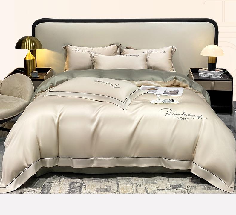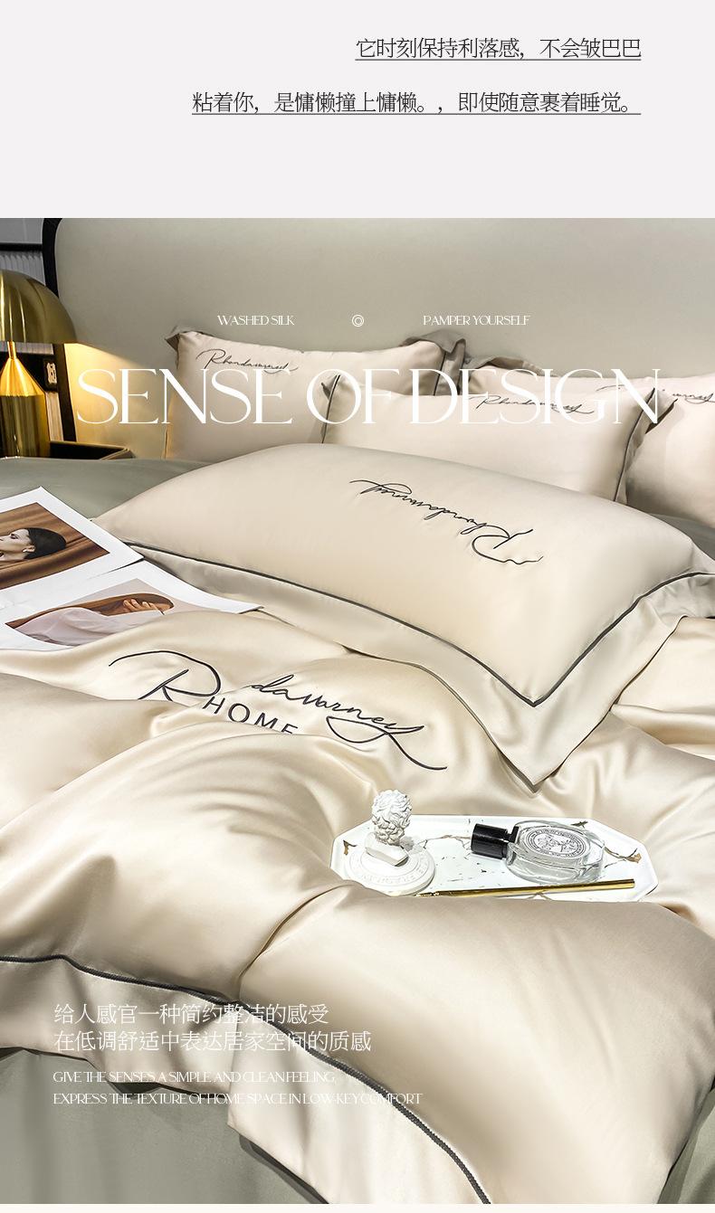 Juego de cuatro piezas de cama de seda lavada de nuevo estilo, seda de hielo de verano 2024, nuevo estilo, lujo ligero, sábana, funda de edredón, gorro de cama, juego de tres piezas