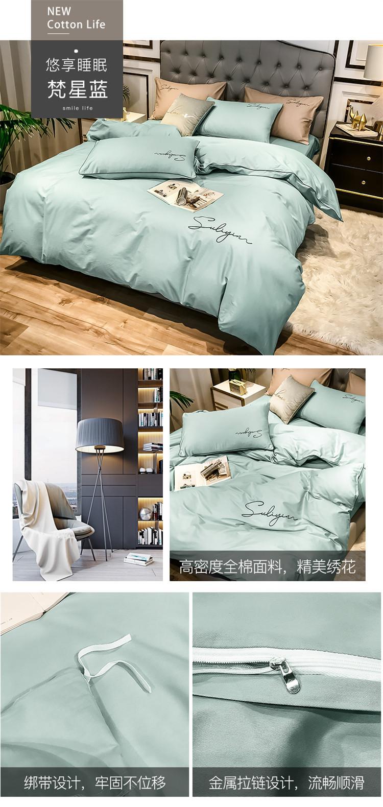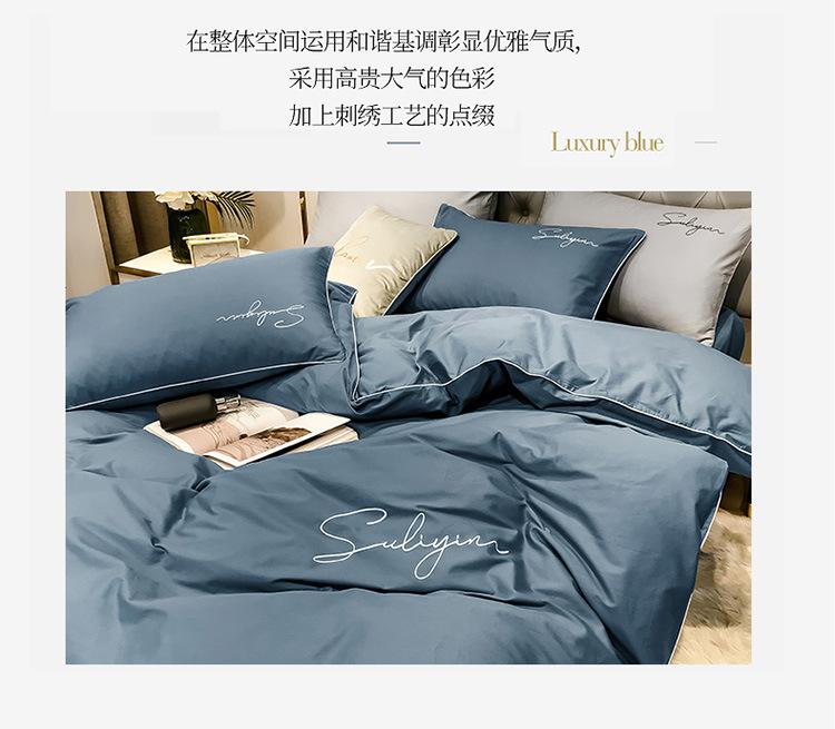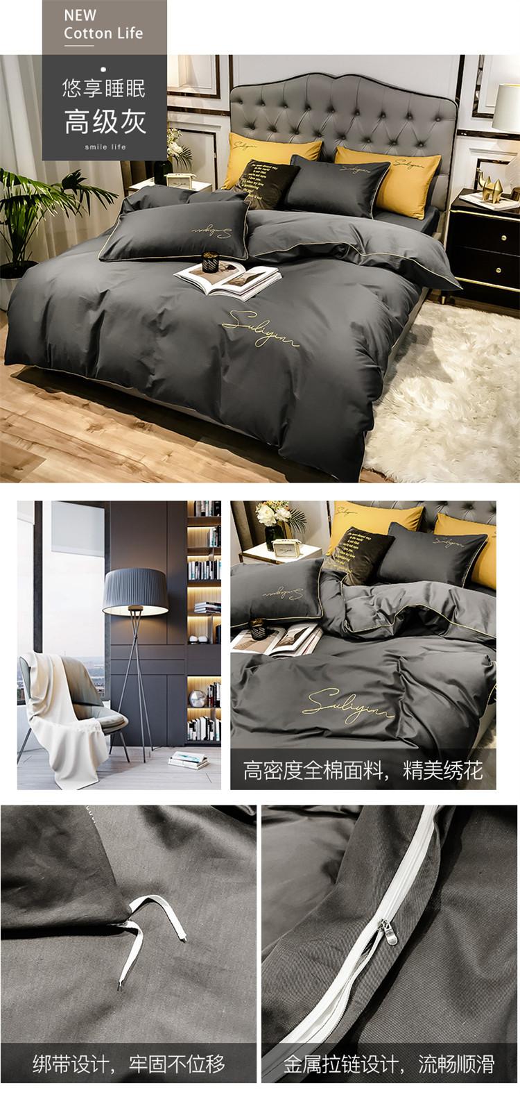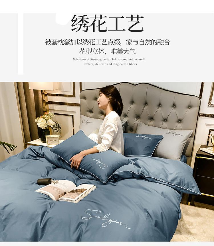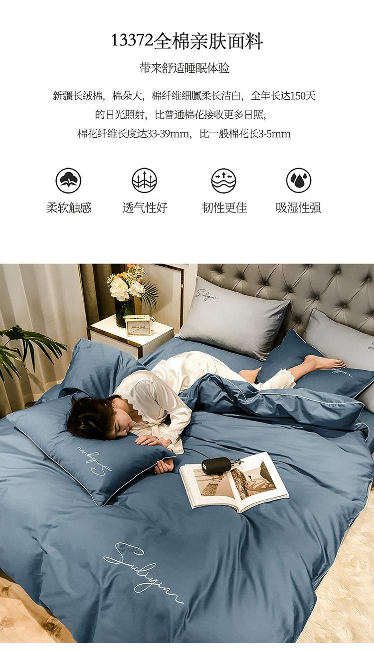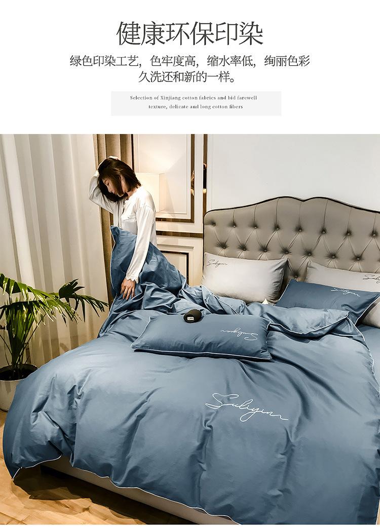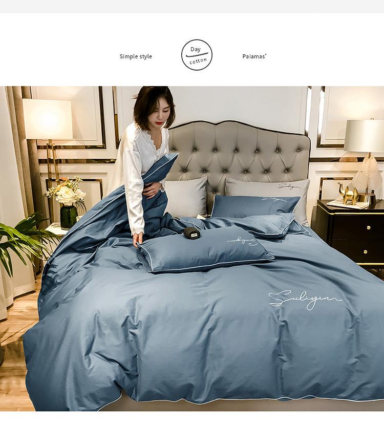 Juego de cuatro piezas de algodón Xinjiang de lujo ligero, sábana ajustable de tres piezas de algodón de fibra larga de 60, ropa de cama de algodón de color sólido, venta al por mayor
