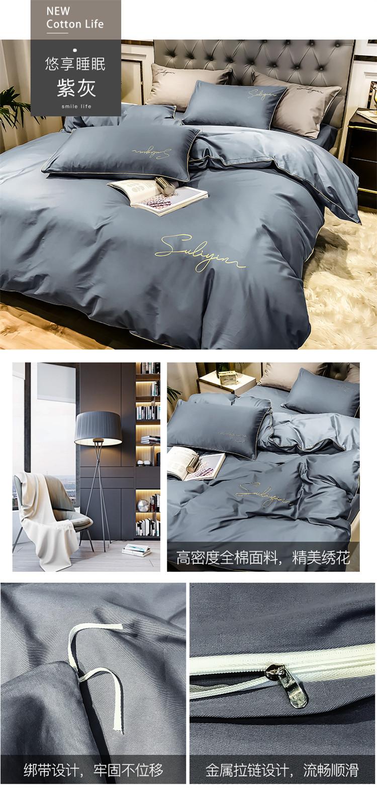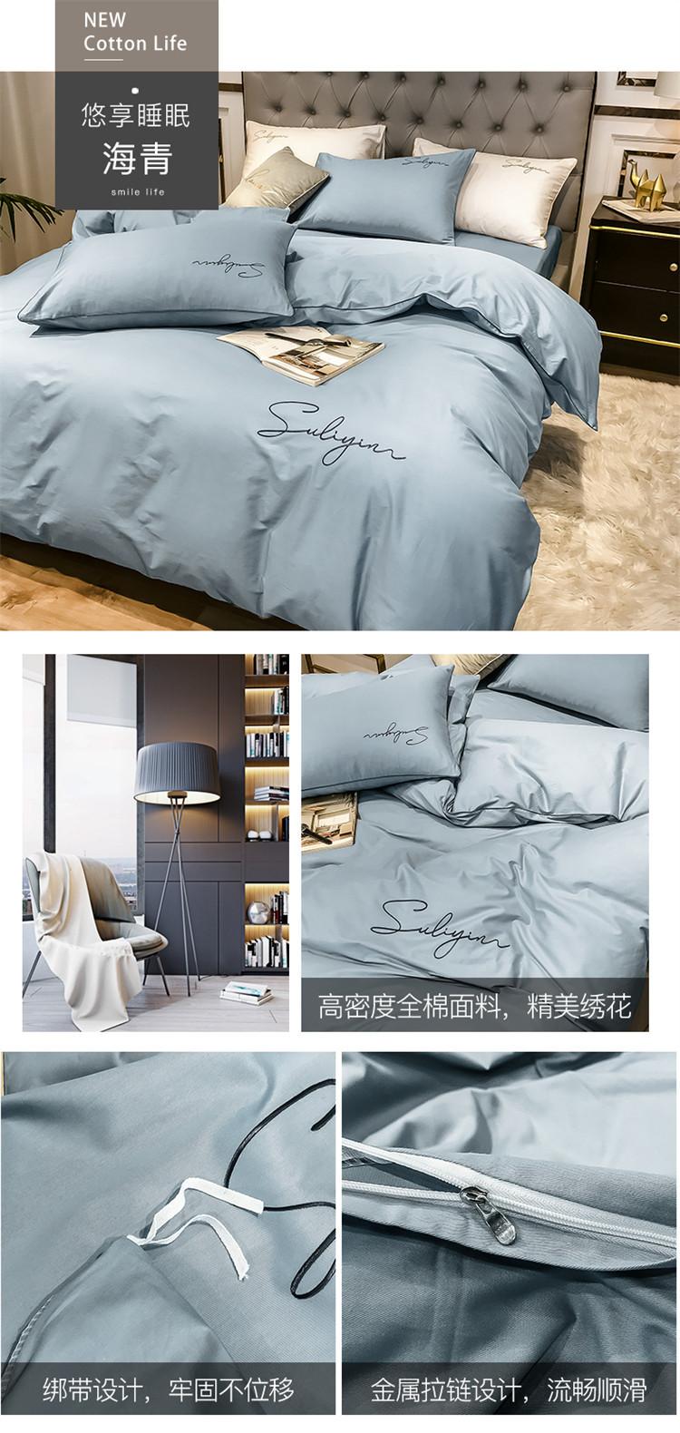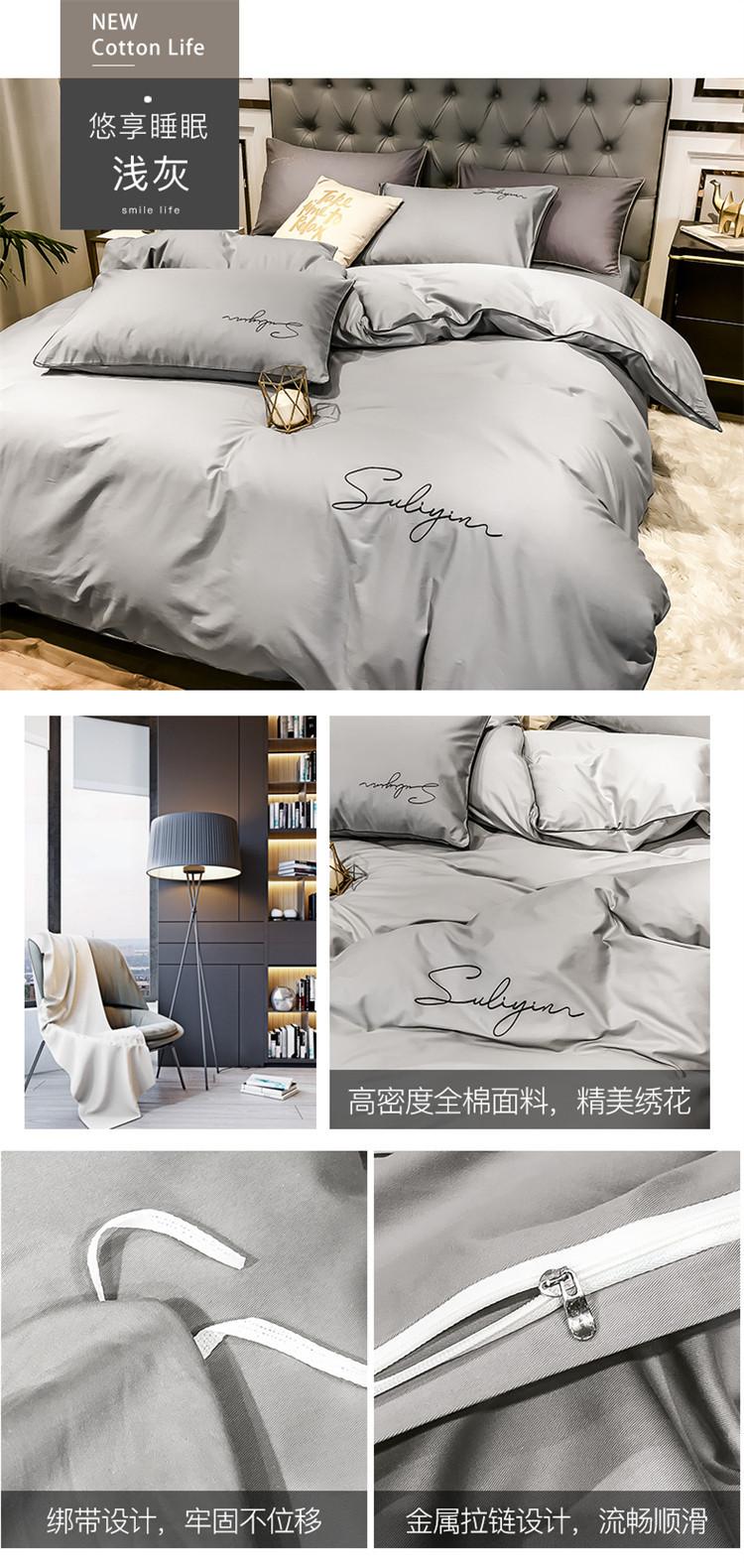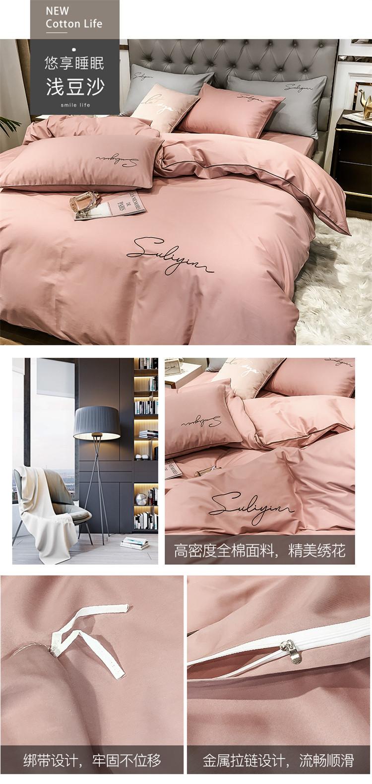 Juego de cuatro piezas de algodón Xinjiang de lujo ligero, sábana ajustable de tres piezas de algodón de fibra larga de 60, ropa de cama de algodón de color sólido, venta al por mayor