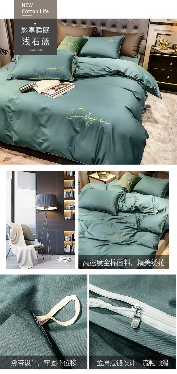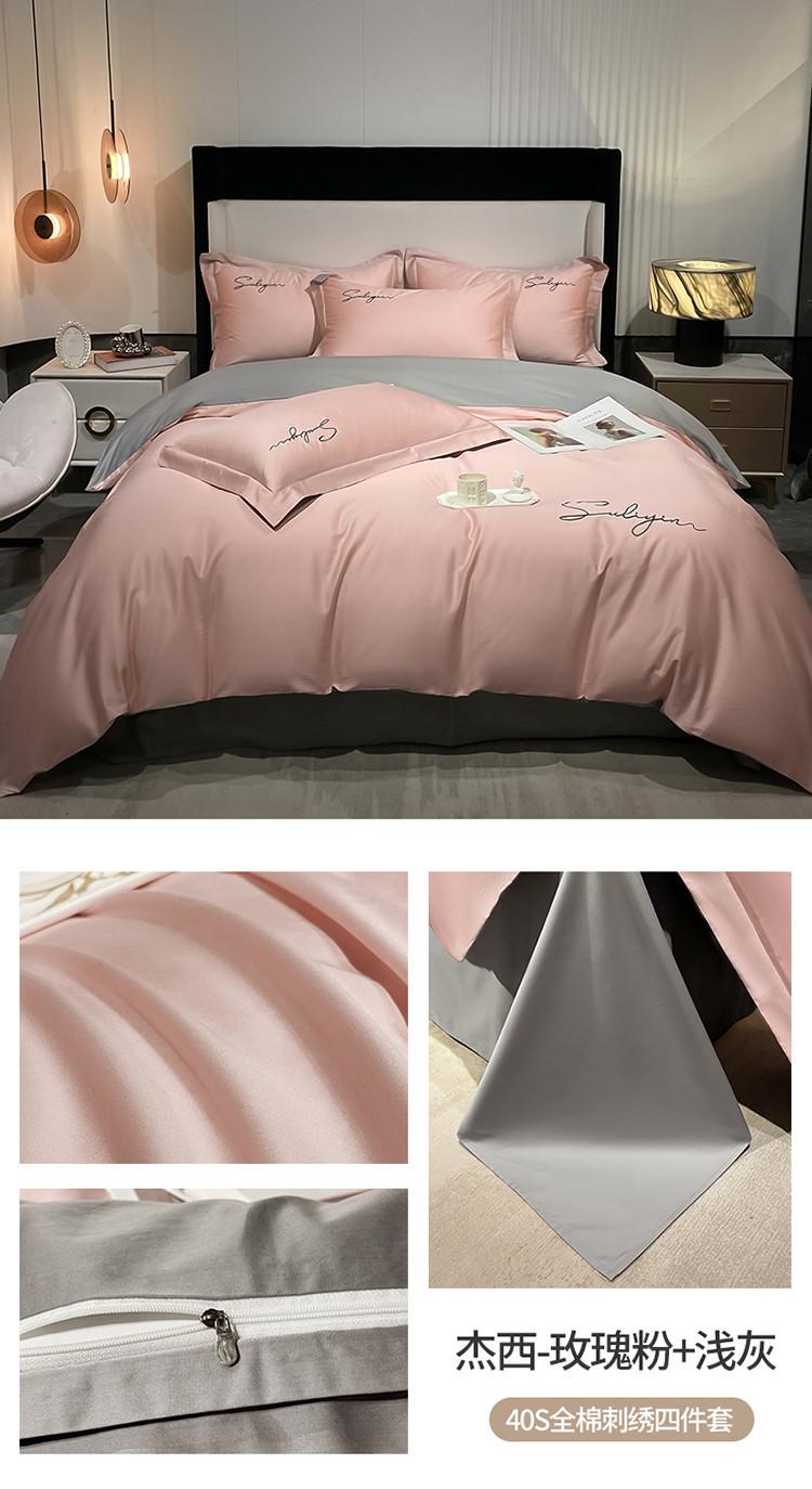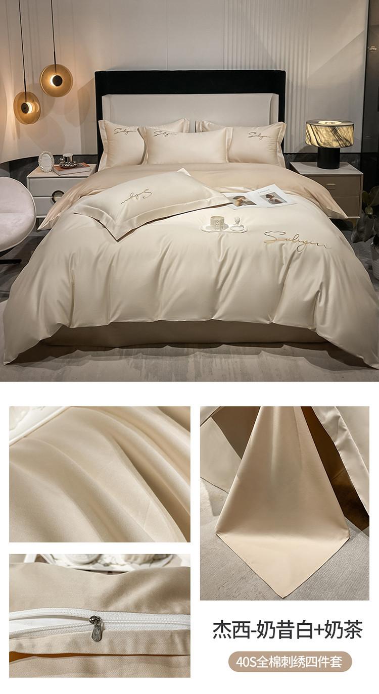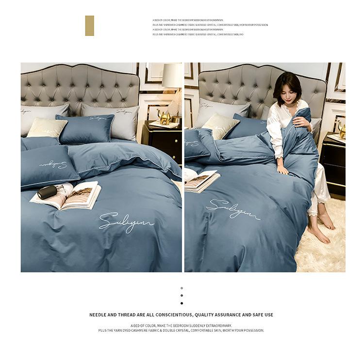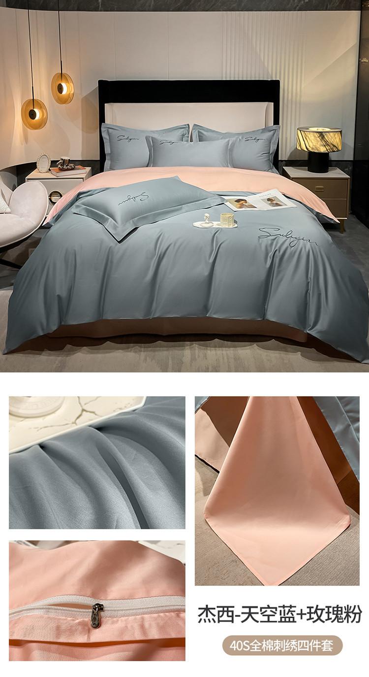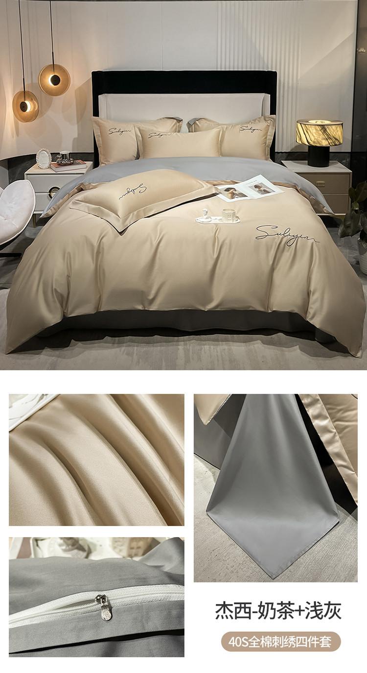Juego de cuatro piezas de algodón Xinjiang de lujo ligero, sábana ajustable de tres piezas de algodón de fibra larga de 60, ropa de cama de algodón de color sólido, venta al por mayor
