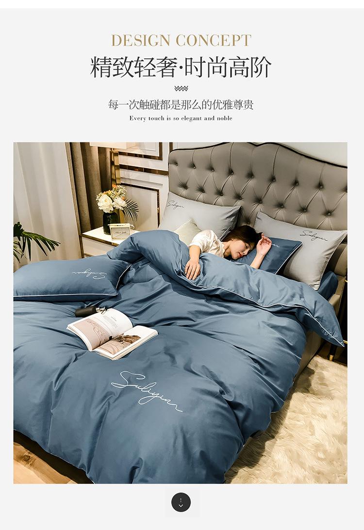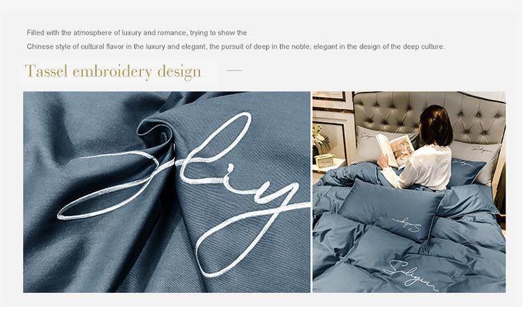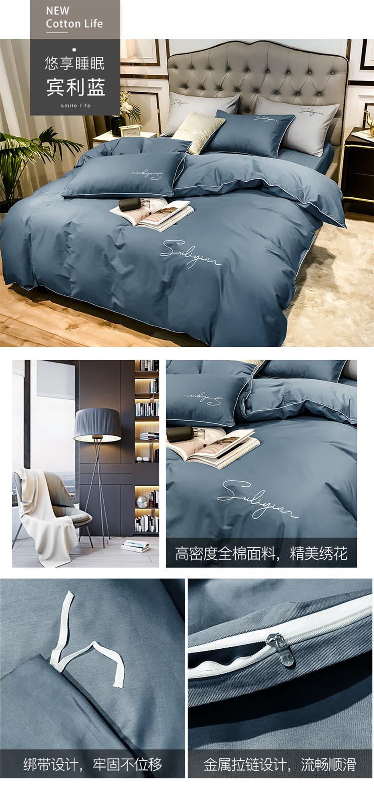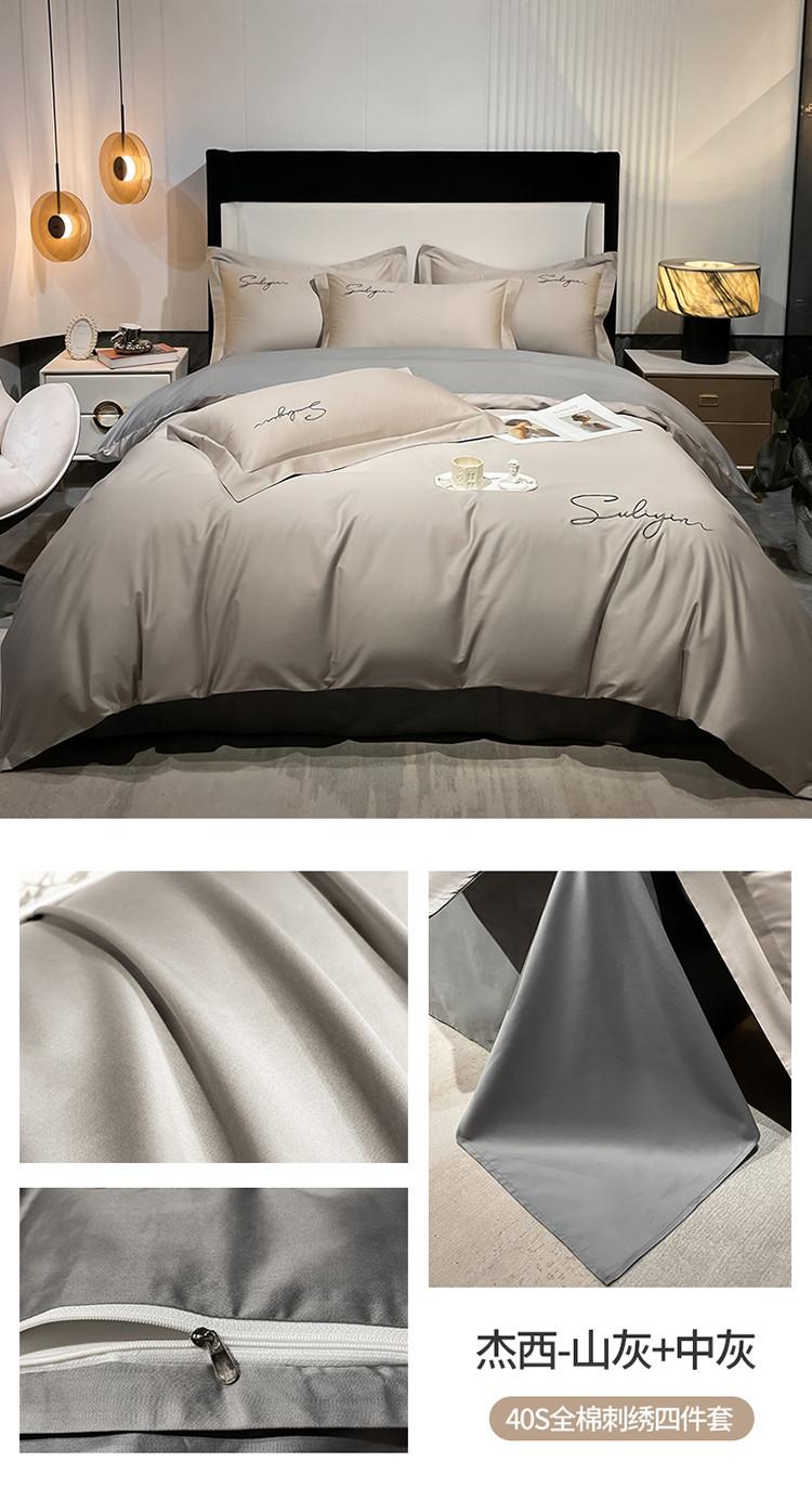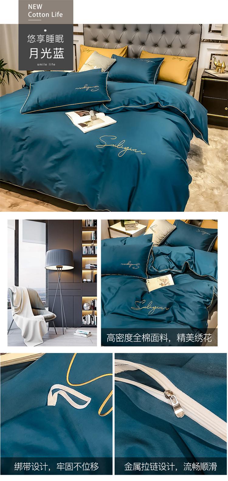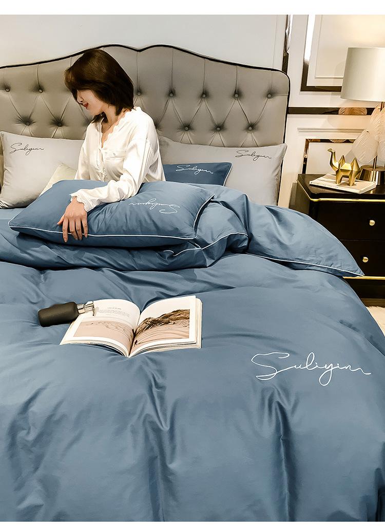 Juego de cuatro piezas de algodón Xinjiang de lujo ligero, sábana ajustable de tres piezas de algodón de fibra larga de 60, ropa de cama de algodón de color sólido, venta al por mayor