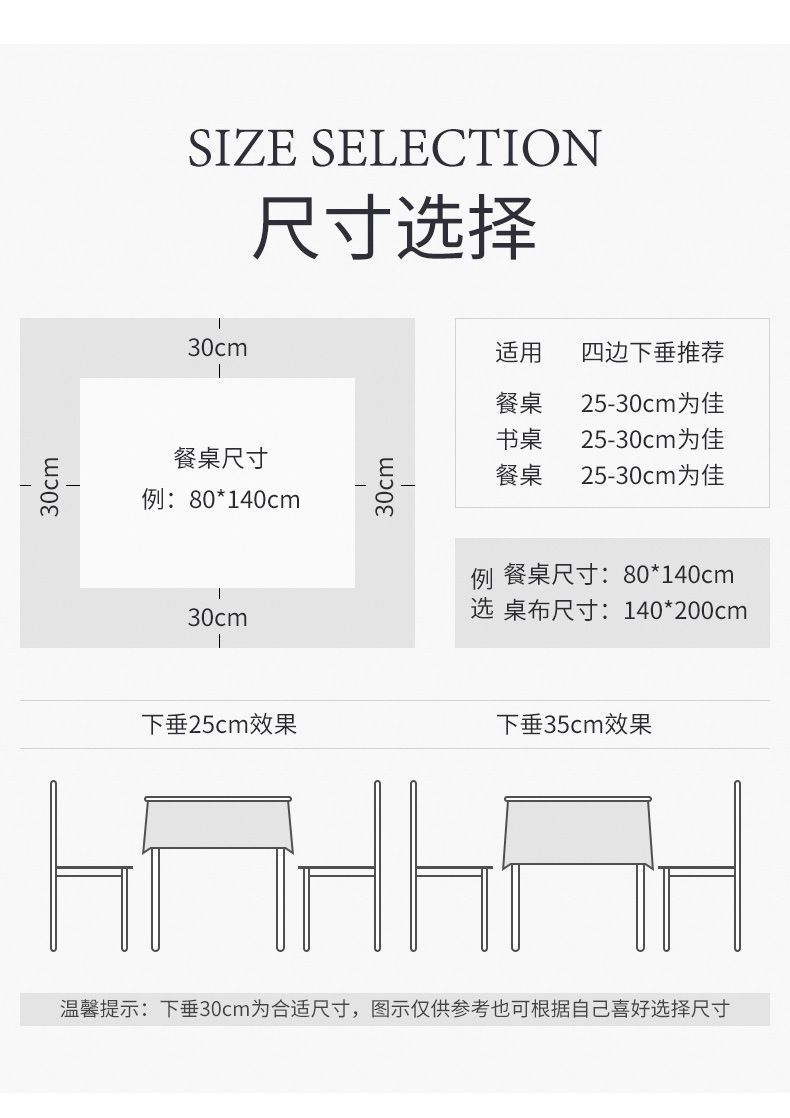 80*120cm [suitable for small dining tables], 90*135cm [suitable for small coffee tables], 90*150cm [suitable f...