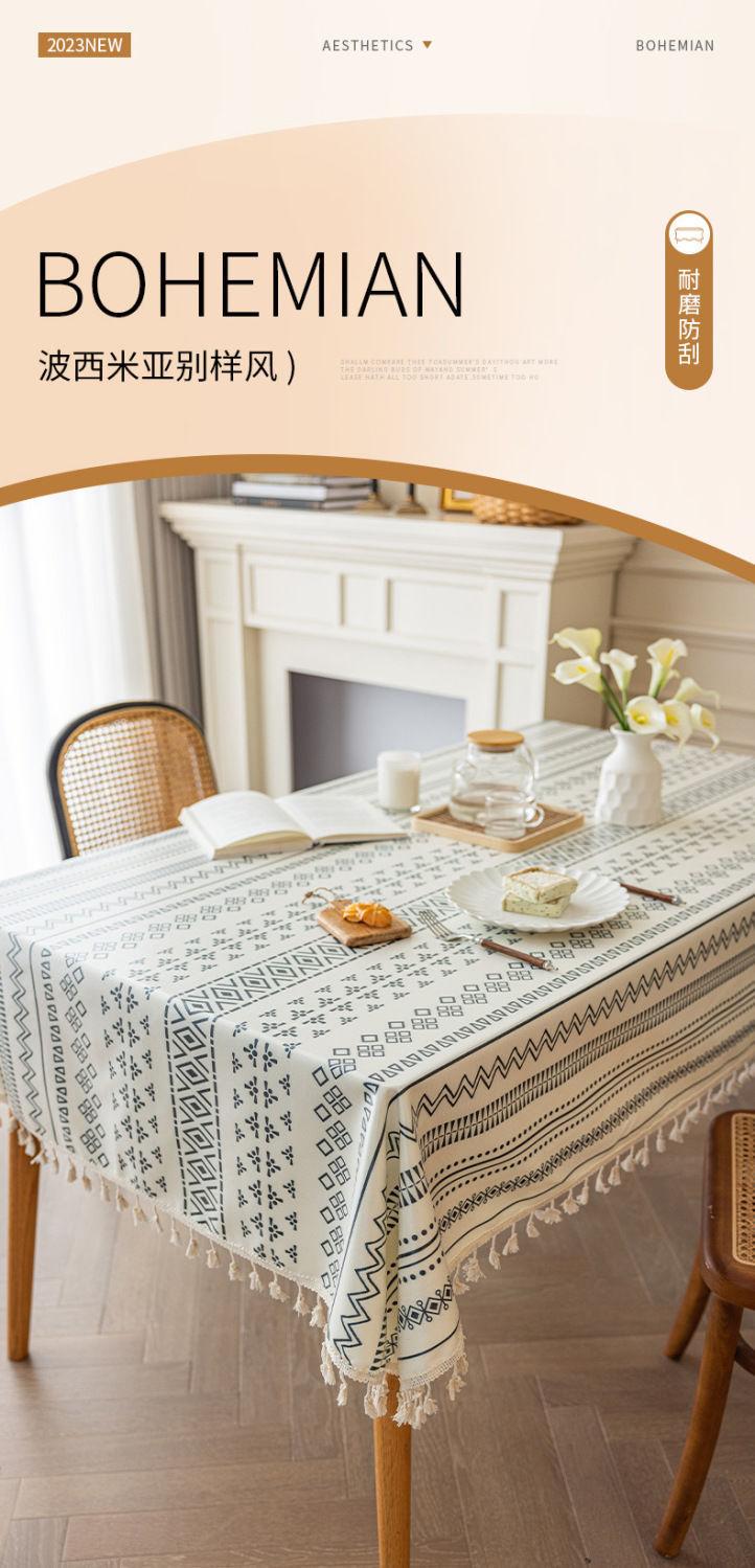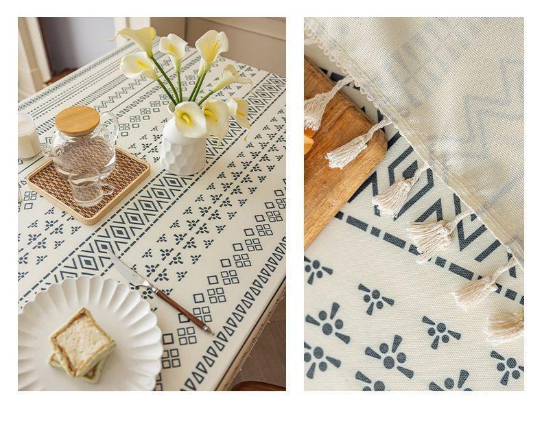 Mantel de Mesa Estilo Nórdico Bohemio Algodón Lino Sin Lavado Estilo Étnico Rectangular Borla Mantel de Camping Impermeable y a Prueba de Aceite
