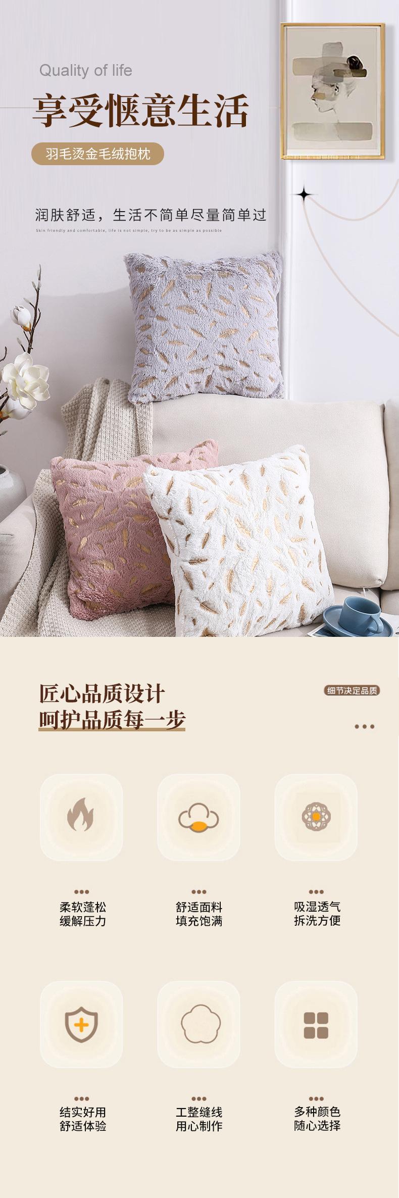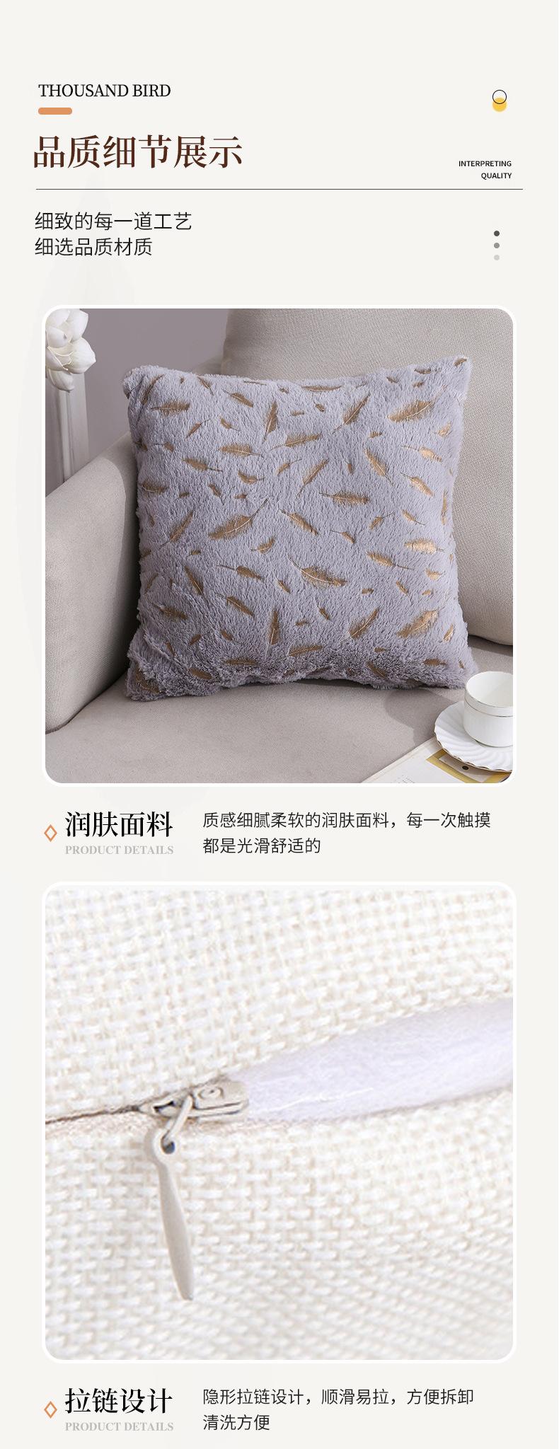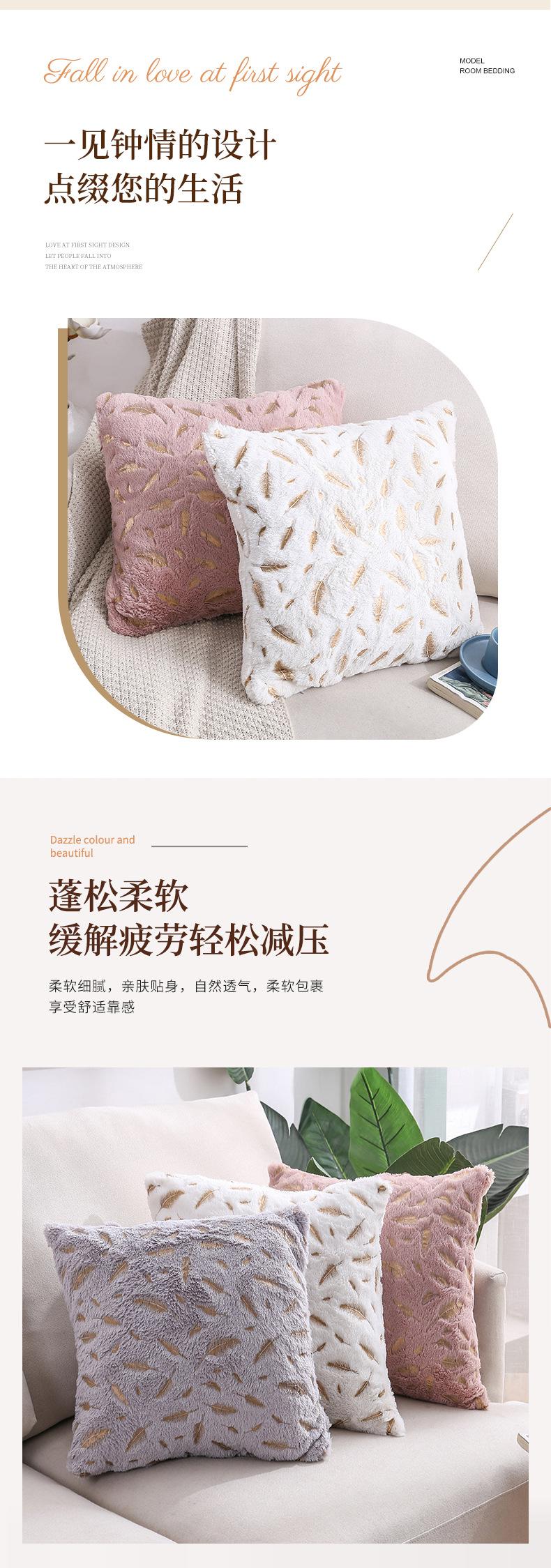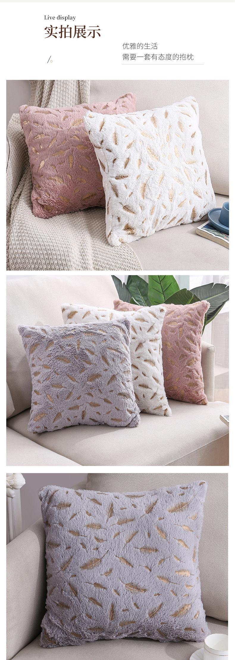 Funda de almohada para sofá Amazon Cross-border Home, corta, de felpa, con plumas color bronce, moderna y sencilla.