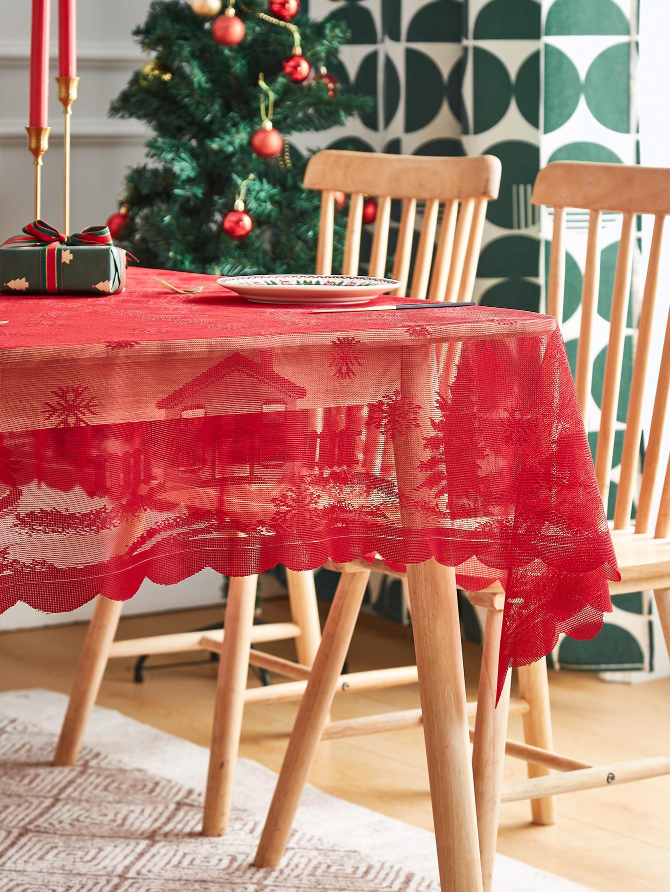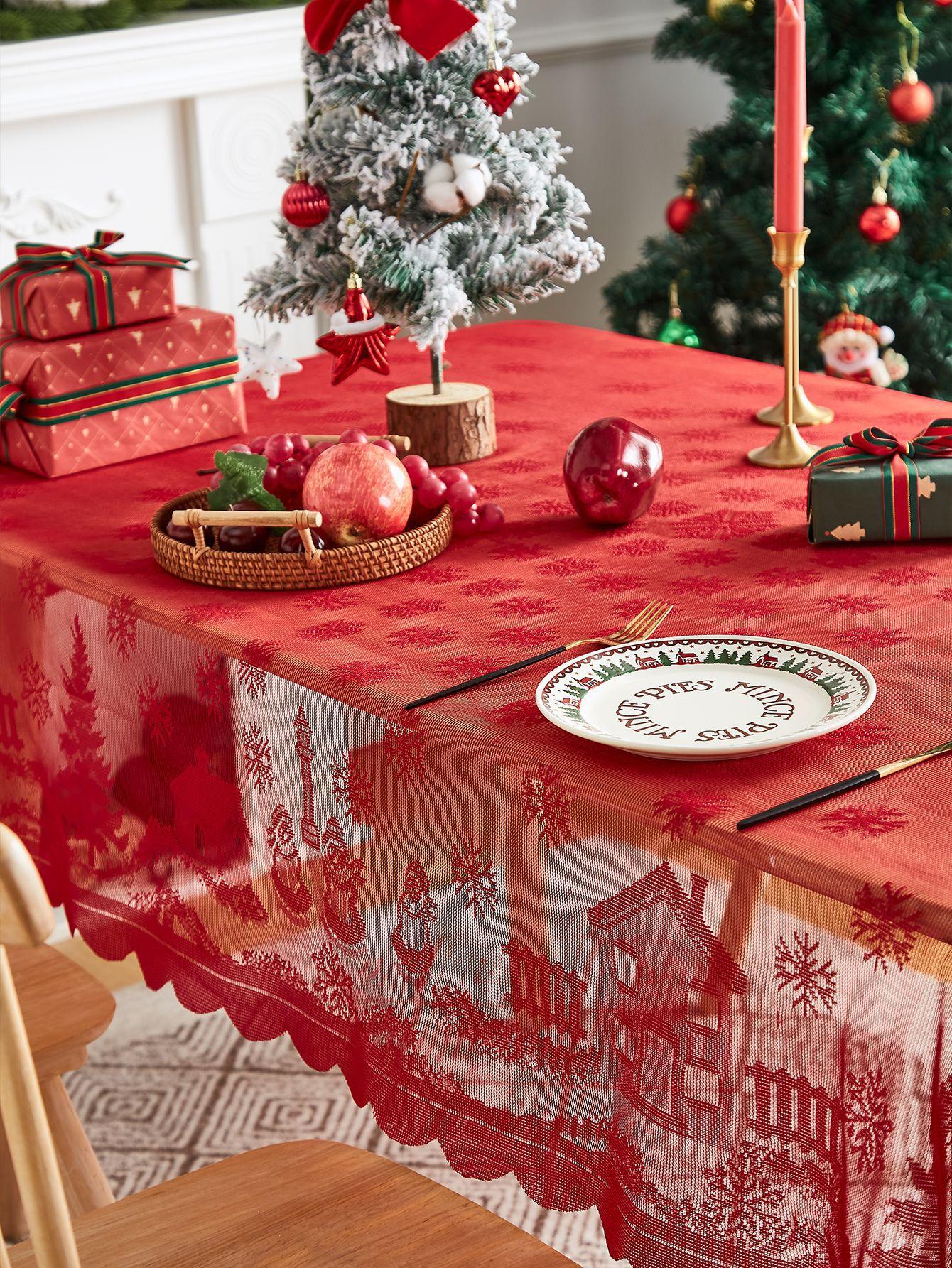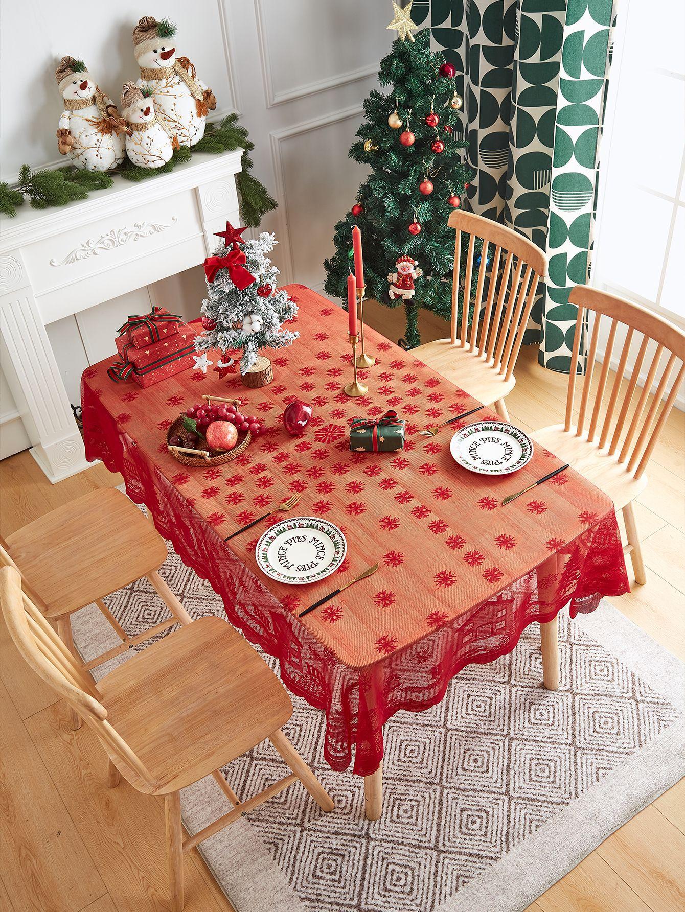 Compra Mantel de estilo americano con temática navideña, rectangular, de encaje rojo, para mesa de comedor, con bandera, para decoración navideña. al por mayor en Joom.pro