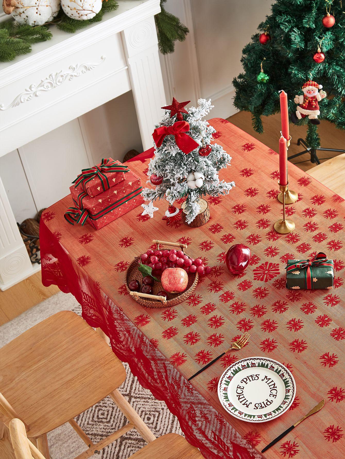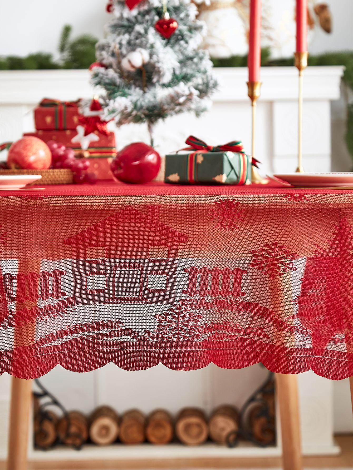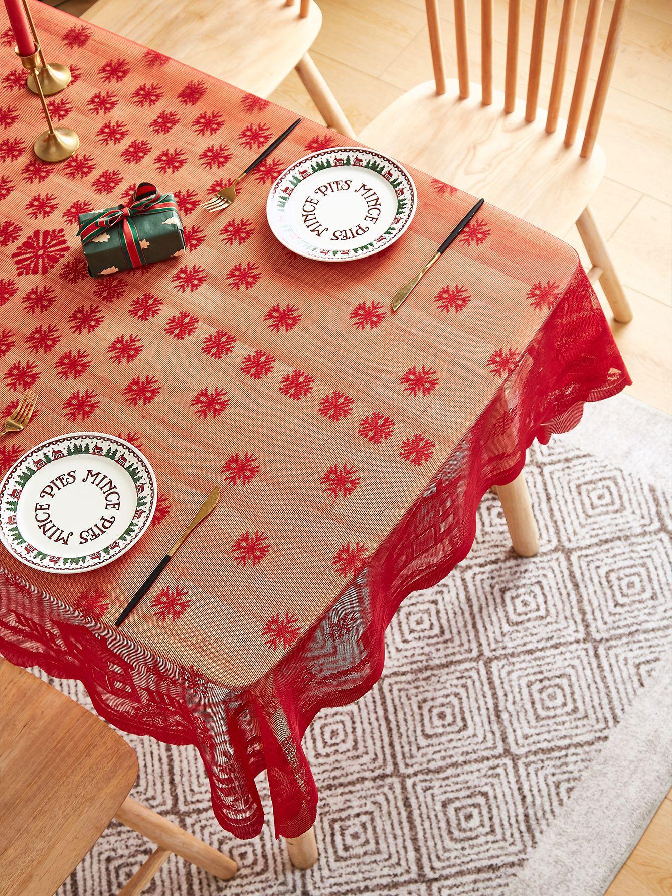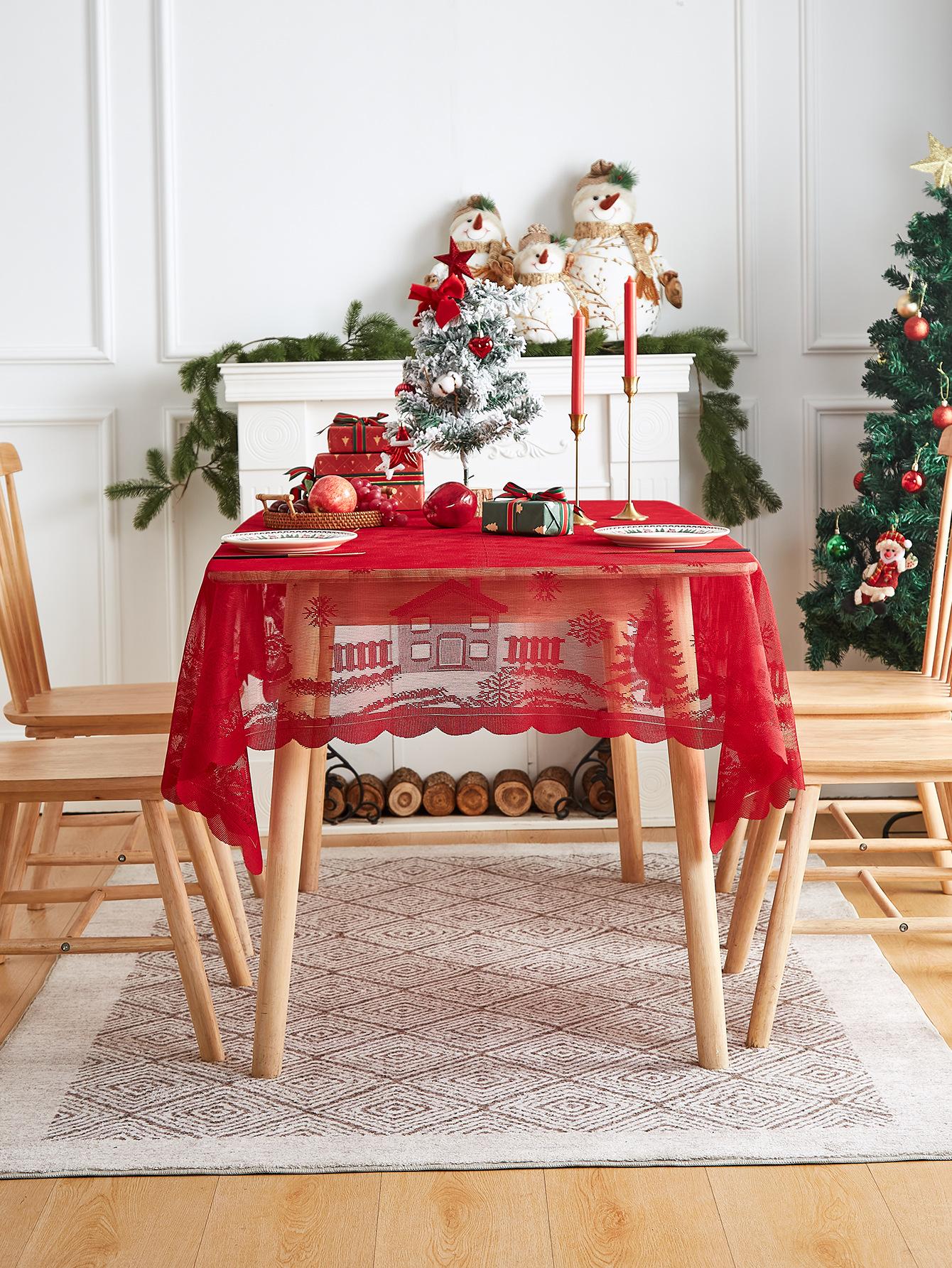 Compra Mantel de estilo americano con temática navideña, rectangular, de encaje rojo, para mesa de comedor, con bandera, para decoración navideña. al por mayor en Joom.pro