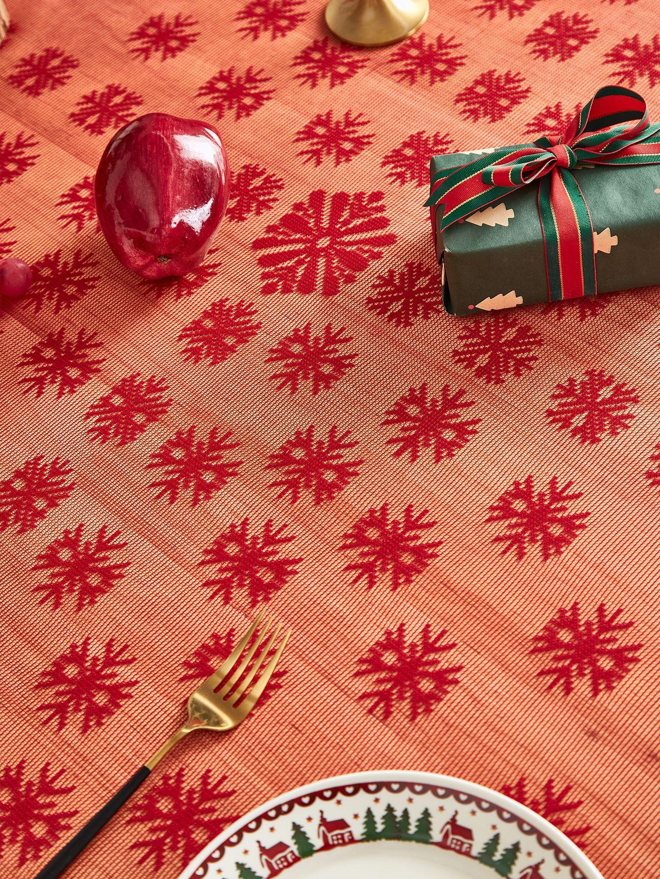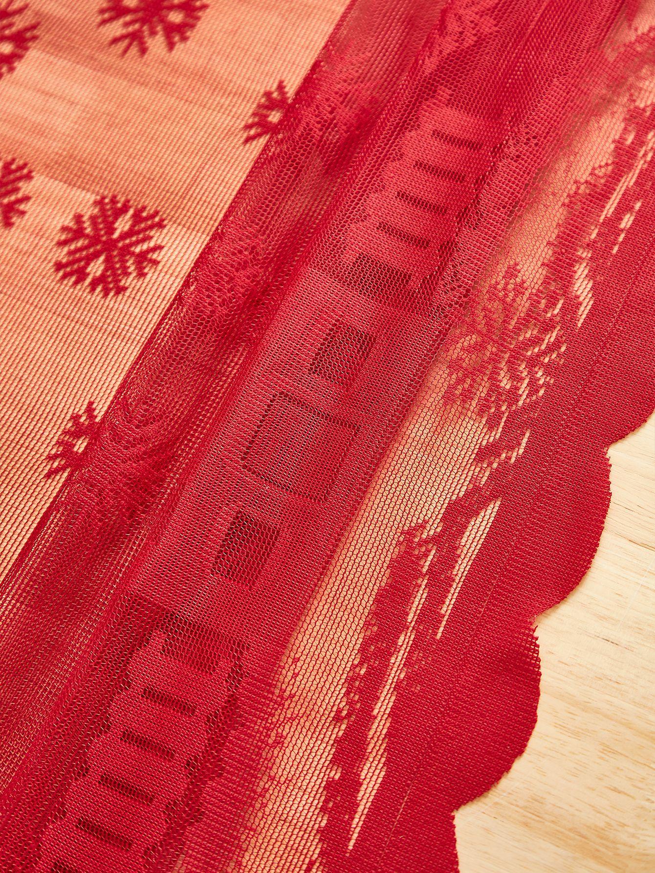 Mantel de estilo americano con temática navideña, rectangular, de encaje rojo, para mesa de comedor, con bandera, para decoración navideña.