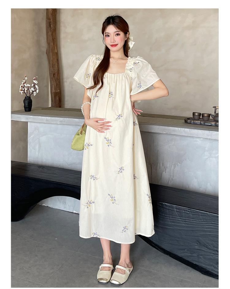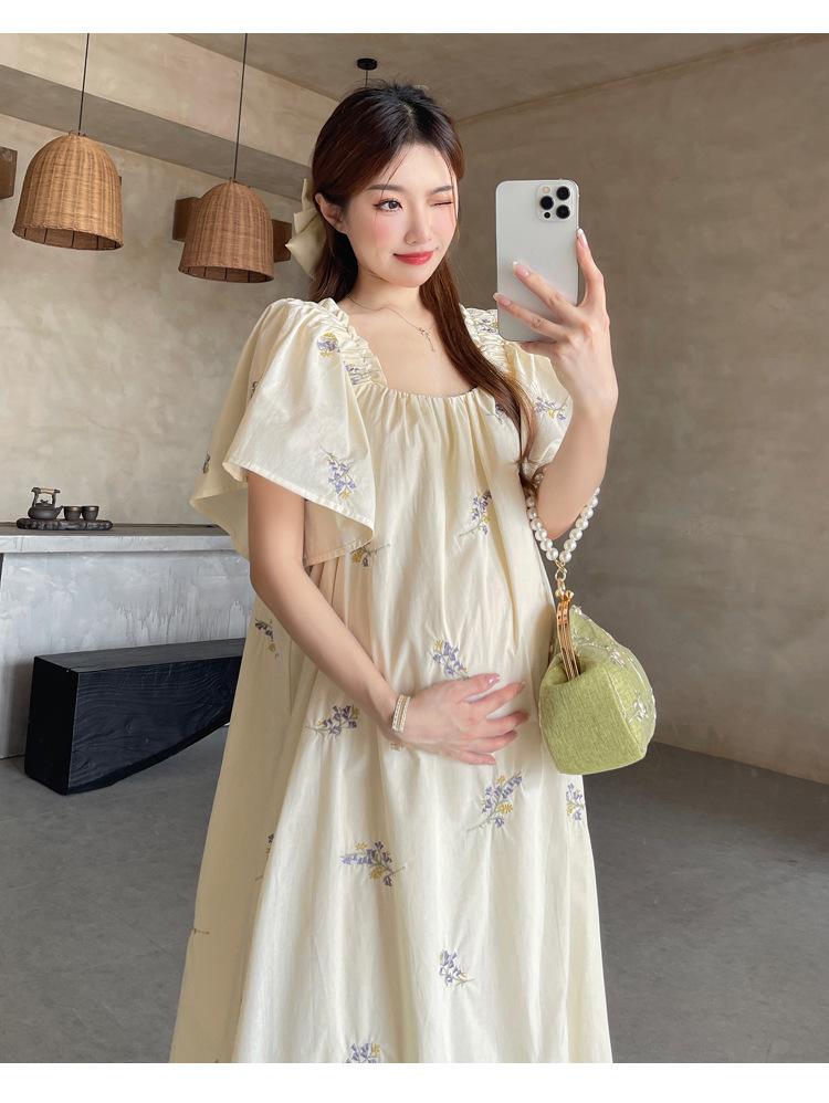 Vestido de verano para embarazadas, nuevo, de algodón bordado, pequeño, fresco, de longitud media, para embarazadas.