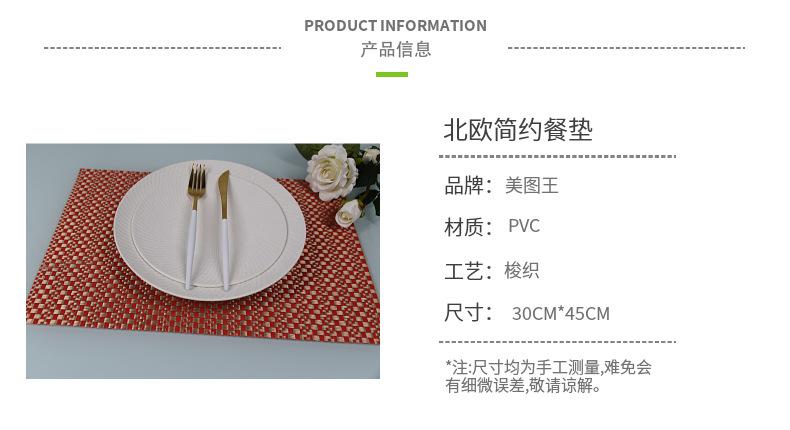 Mantel individual de PVC transfronterizo, fácil de limpiar, tejido occidental, creativo, estilo europeo, aislante del calor, posavasos, mantel, camino de mesa, 8 x 8