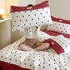 Juego de Cama Doble de Cuatro Piezas de Algodón Puro Bordado Estilo Nórdico Lindo Juego de Cama de Tres Piezas de Lunares Venta al por Mayor