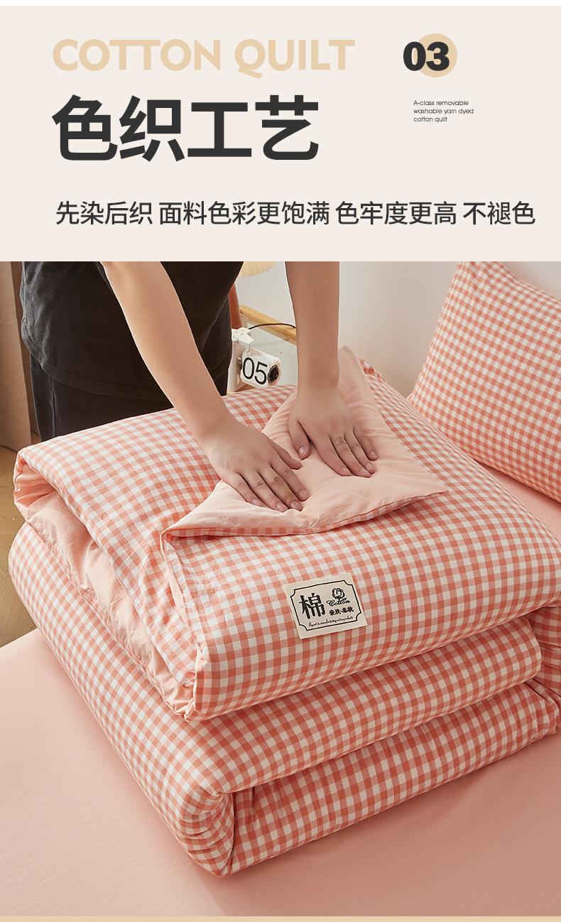 Pink grids { class a cotton quilt removable and washable}, Gray thin strips { class a cotton quilt removable a...