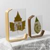 Marco de fotos acrílico de doble cara con tallado de hojas curvas, marco de fotos creativo, adornos de escritorio de madera maciza, especímenes de plantas al por mayor
