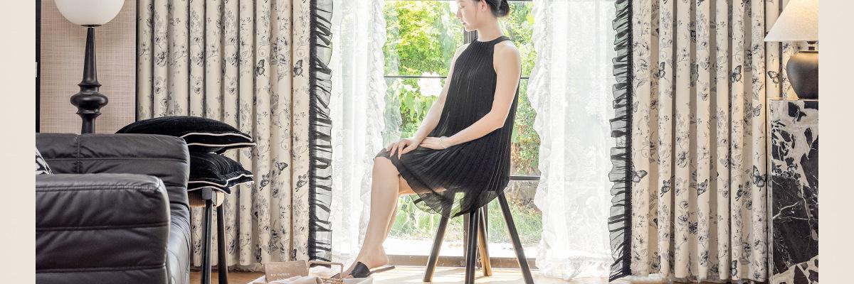 Cortina de encaje de mariposa 2025, nueva sala de estar, dormitorio de alto sombreado, cortina vintage de chenilla estampada de lujo de alta calidad