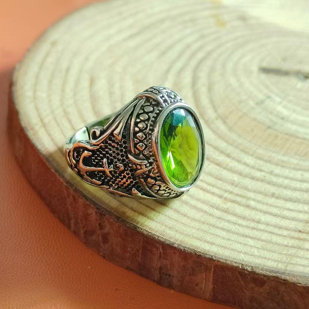 Anillo de gema ovalada con ancla de barco pirata, joyería transfronteriza europea y americana, estilo hip-hop retro para hombre, venta al por mayor