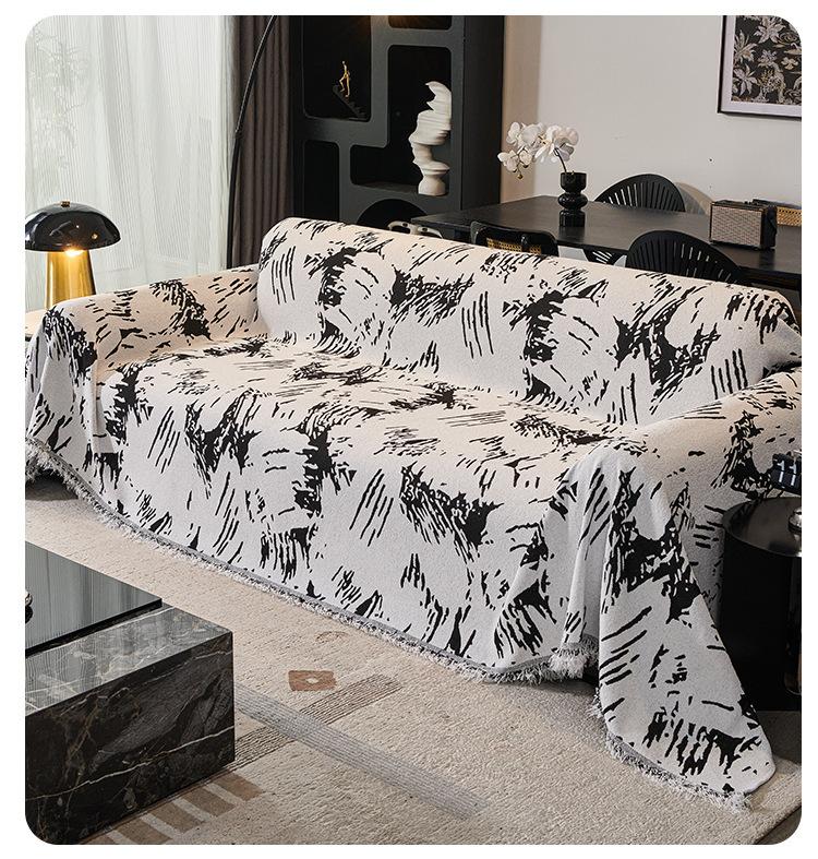 Toalla para Sofá Estilo Lujo Ligero Cojín Tela Nueva Tela para Cubrir Sofá Blanco y Negro de Alta Gama Universal para Cuatro Estaciones Antideslizante Cubierta para Sofá Manta