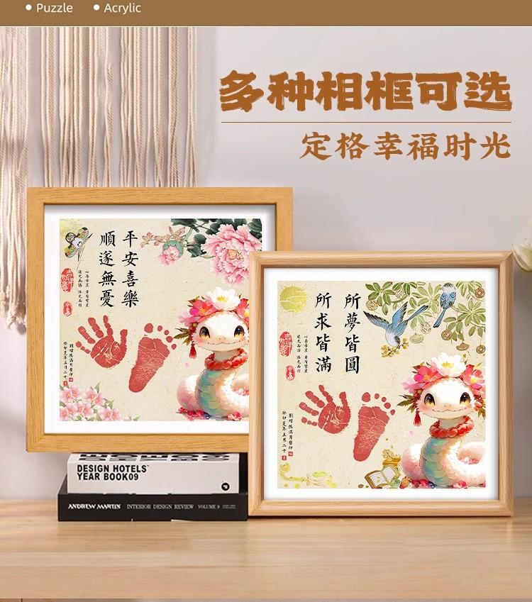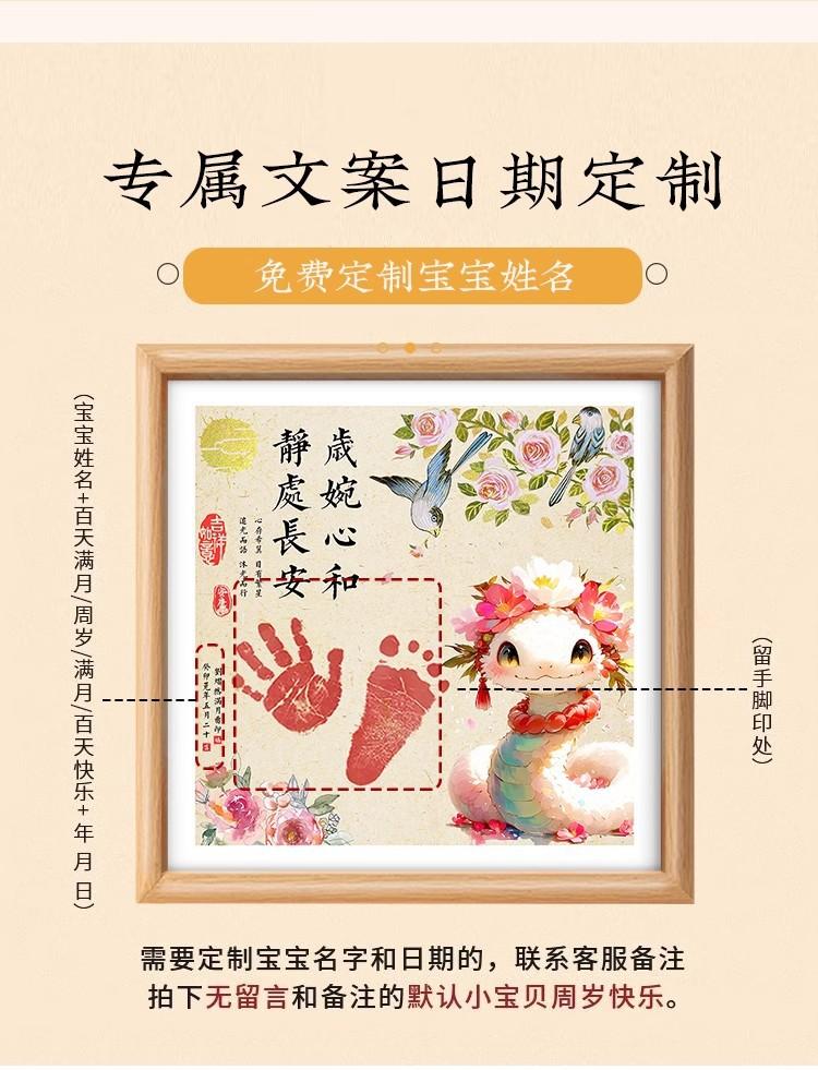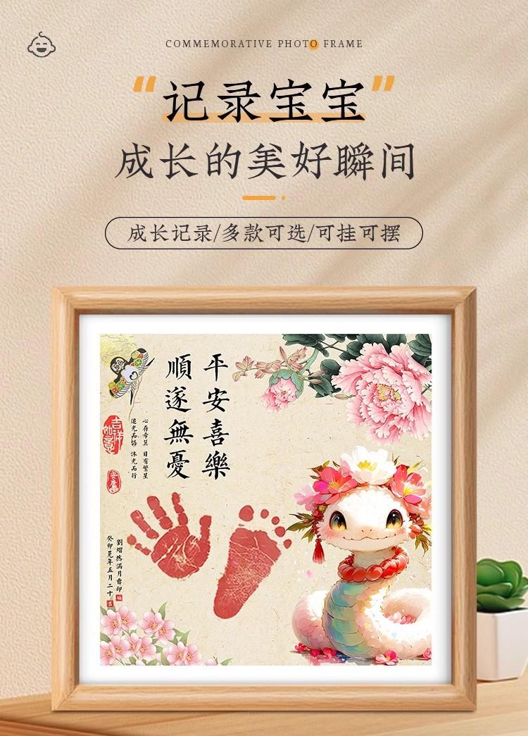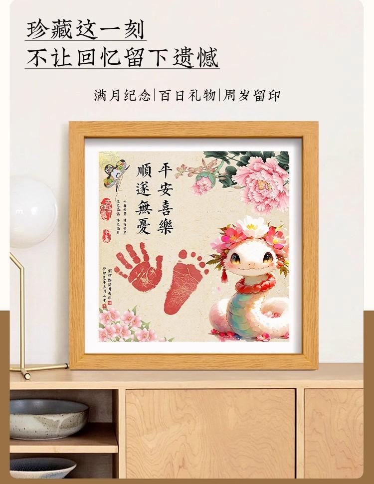 Bebé serpiente luna llena huellas de mano y pie bebé cien días huellas de mano y pie recién nacido nacimiento ceremonia conmemorativa suministros marco de fotos venta al por mayor