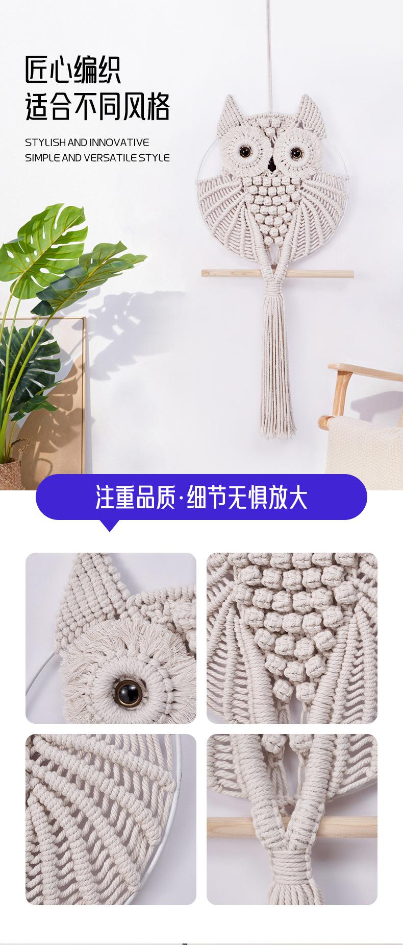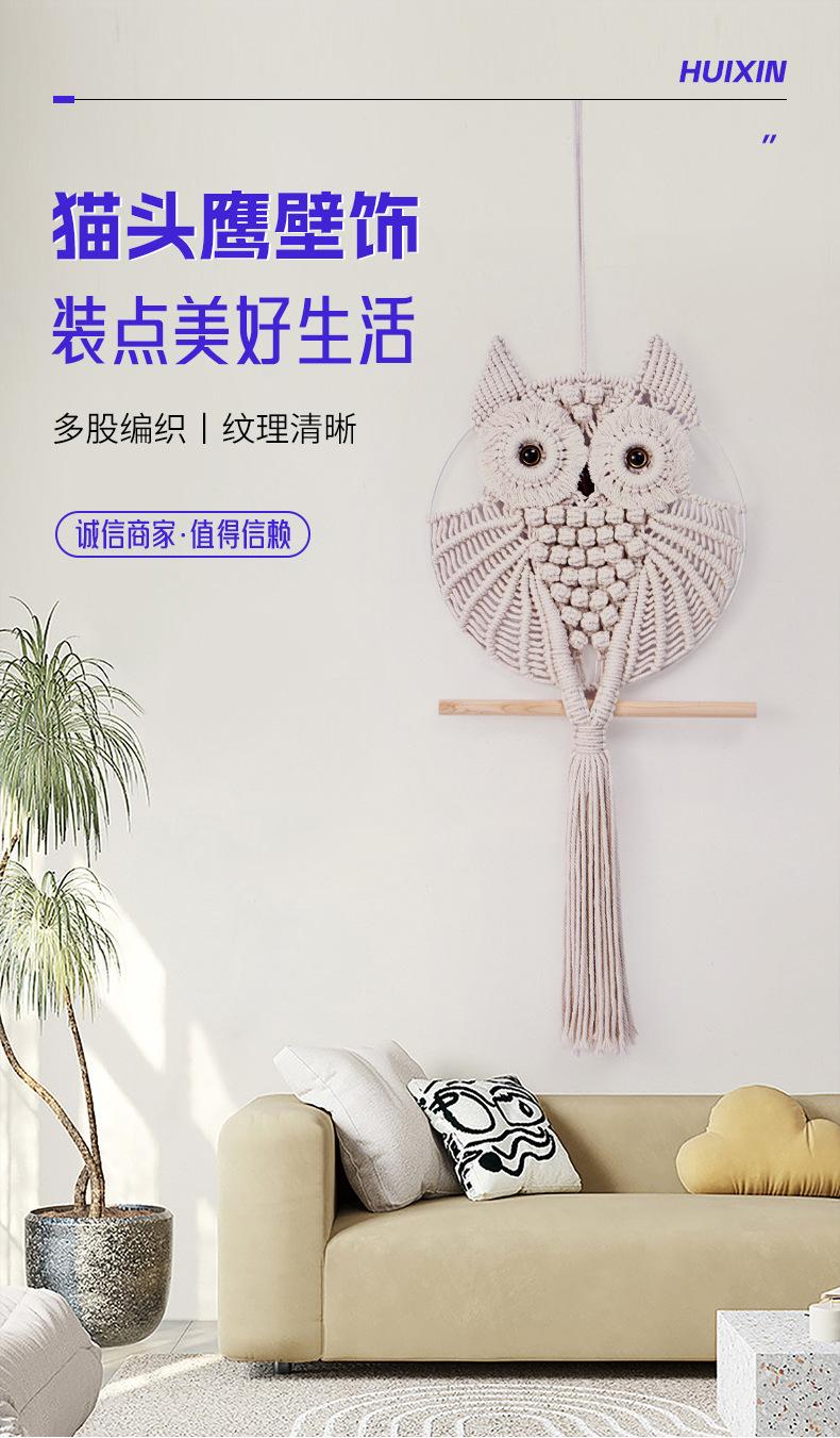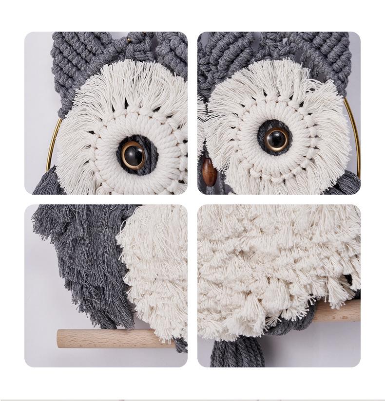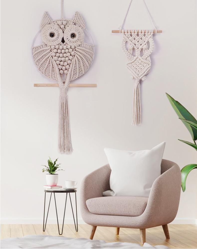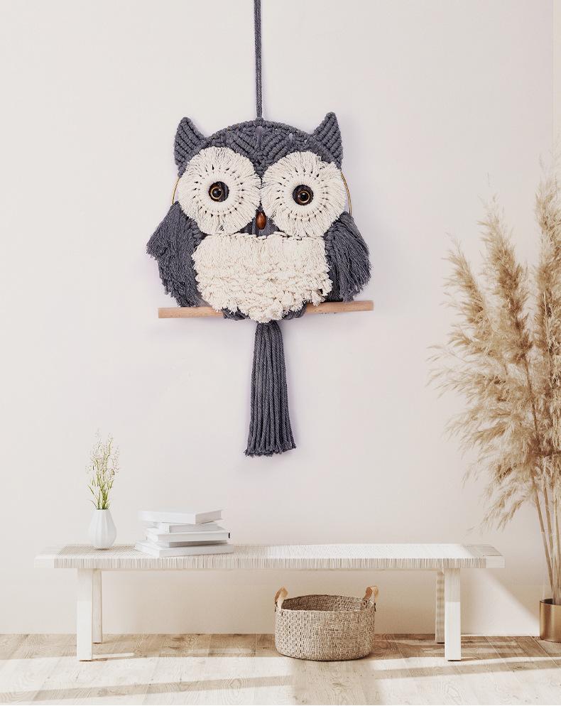 Decoración nórdica para el hogar, decoración de pared, tapiz creativo de búho tejido a mano, arte de pared, decoración para sala de estar y dormitorio