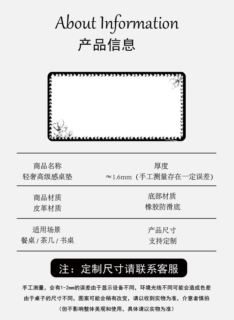 Mesa de Centro de Cuero de Lujo Ligero Mantel para Mesa de Comedor Sin Lavado Impermeable Pvc a Prueba de Aceite Aislamiento Térmico Anti-Escaldaduras Mantel de Alta Gama para Mesa de Comedor