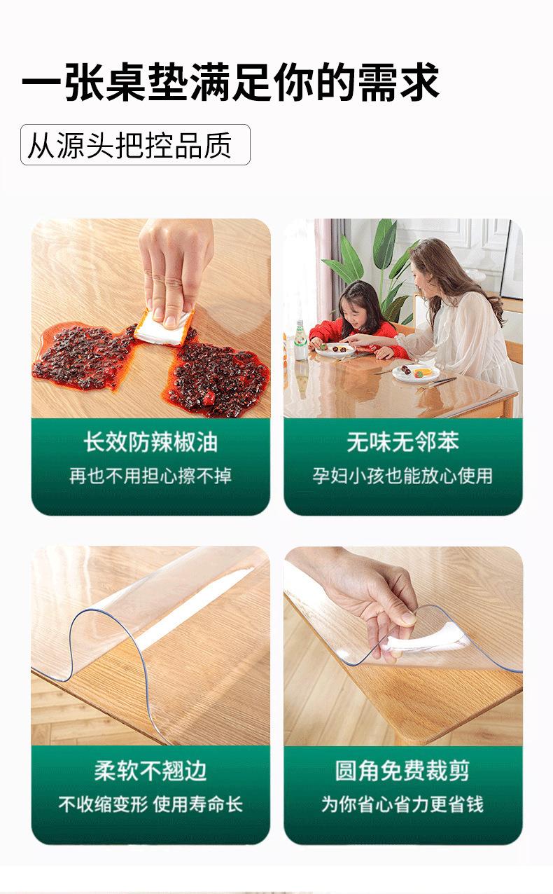 Mantel de Mesa de Vidrio Suave de TPU Transparente Impermeable y a Prueba de Aceite Fabricante Venta al por Mayor Mantel Redondo Cuadrado Mantel Engrosado Resistente a las Manchas y al Polvo Tapete de Mesa