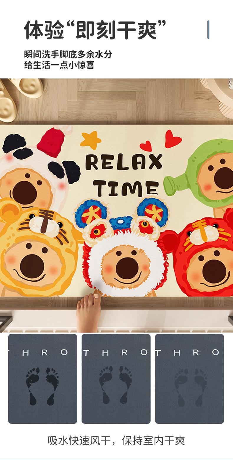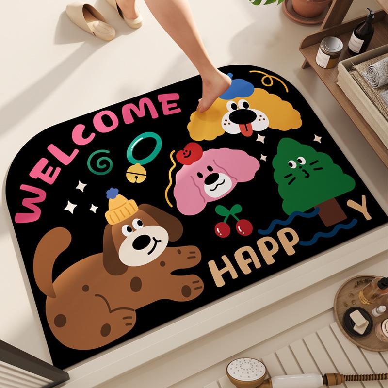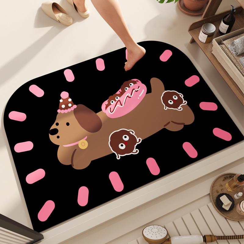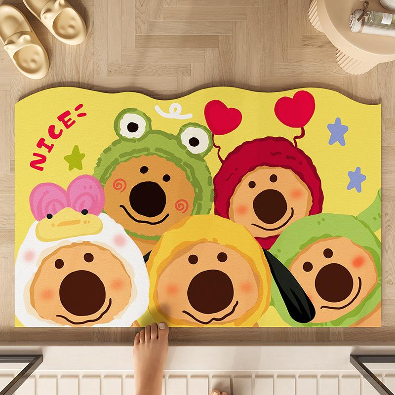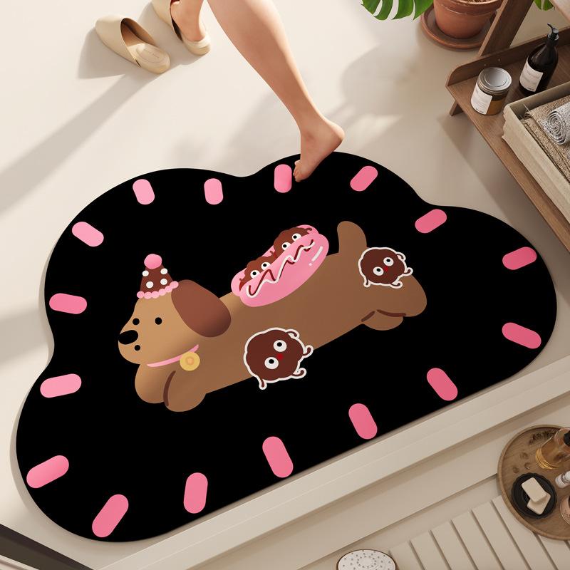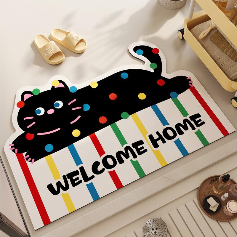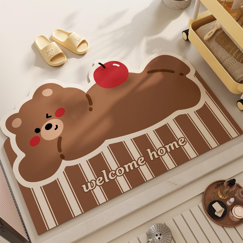 Alfombra de Piso de Baño de Barro Diatómico de Dibujos Animados para el Hogar Absorbente de Agua de Secado Rápido Alfombra para Puerta de Baño Alfombra de Cuidado Fácil Alfombra para Inodoro