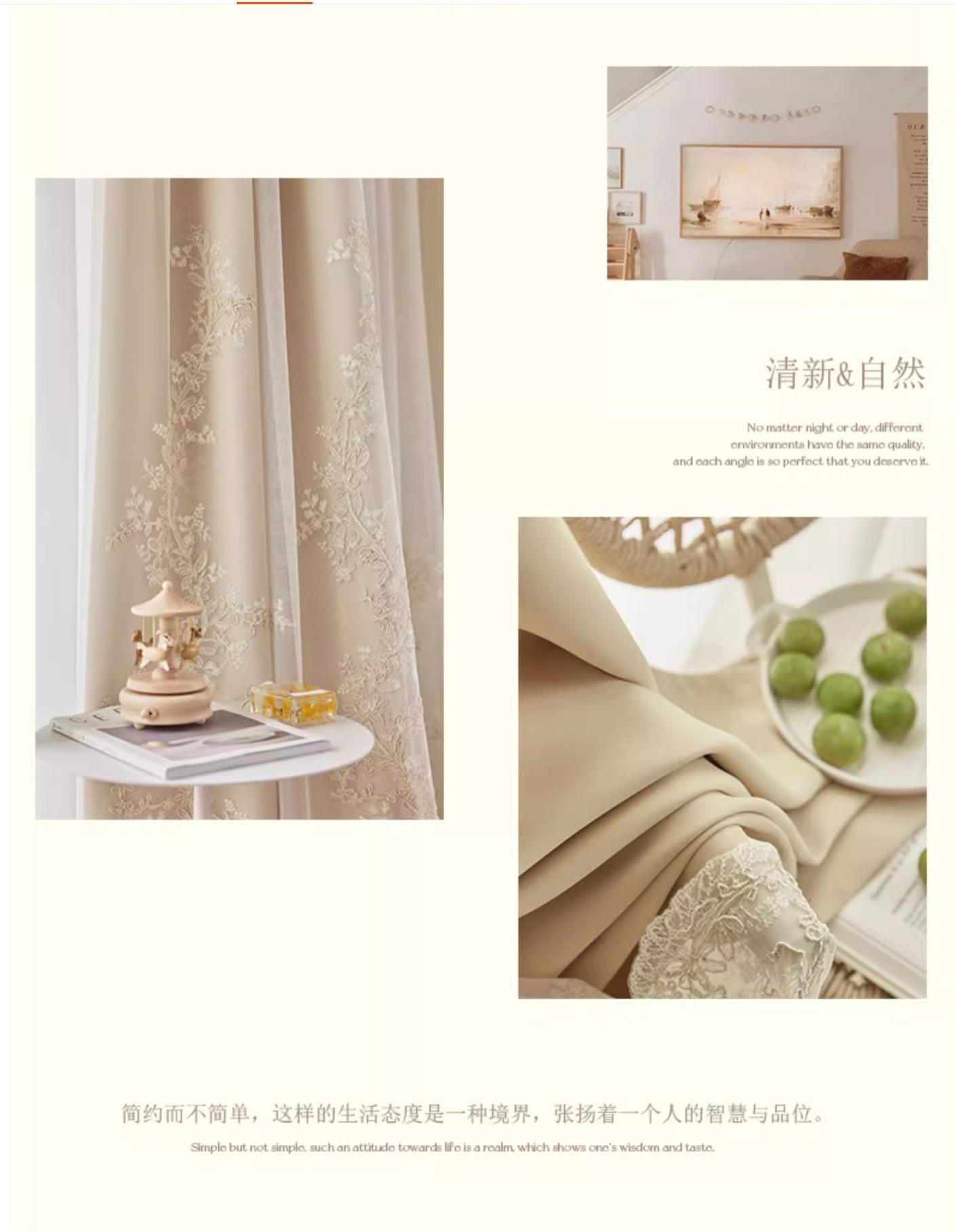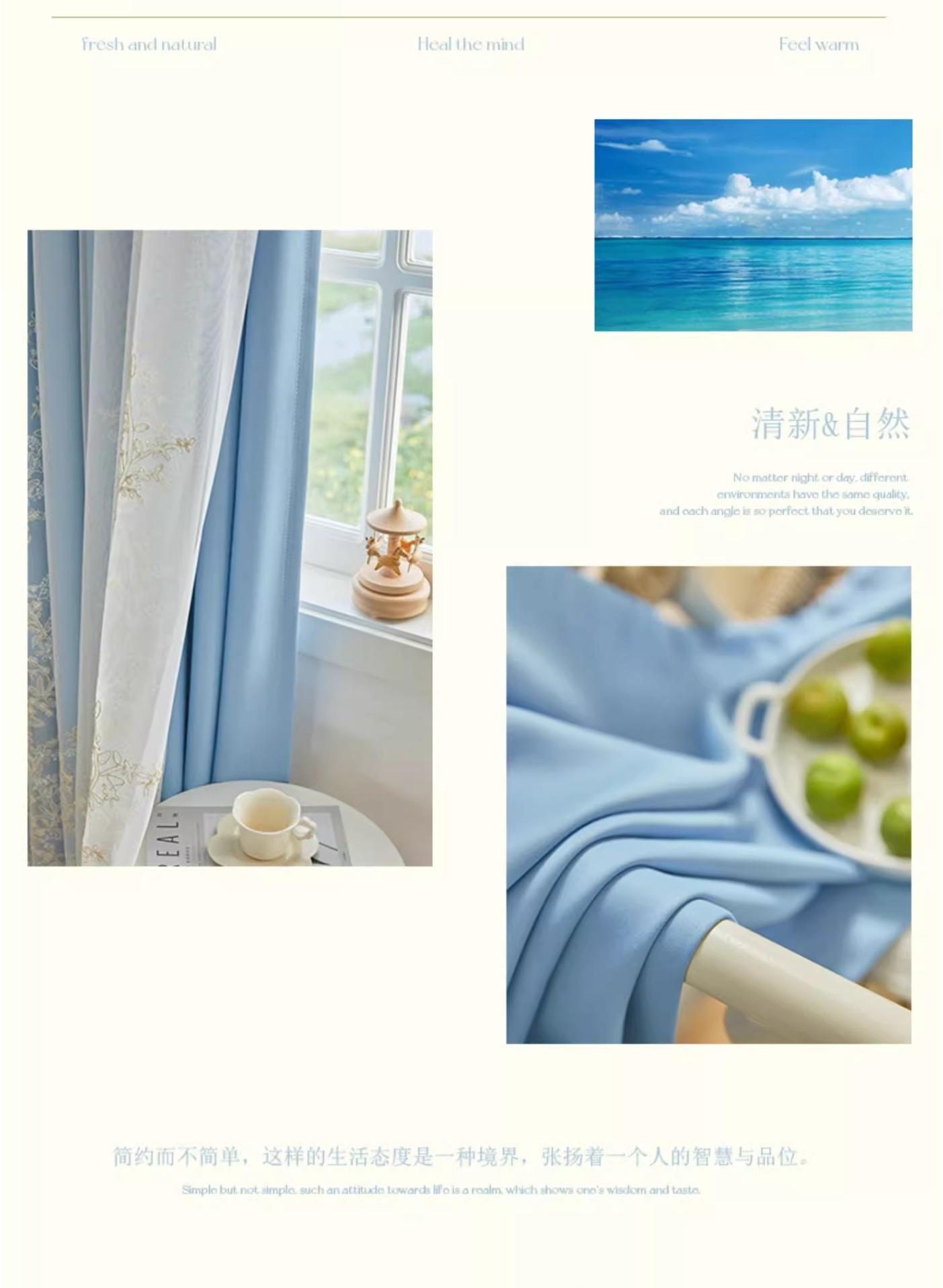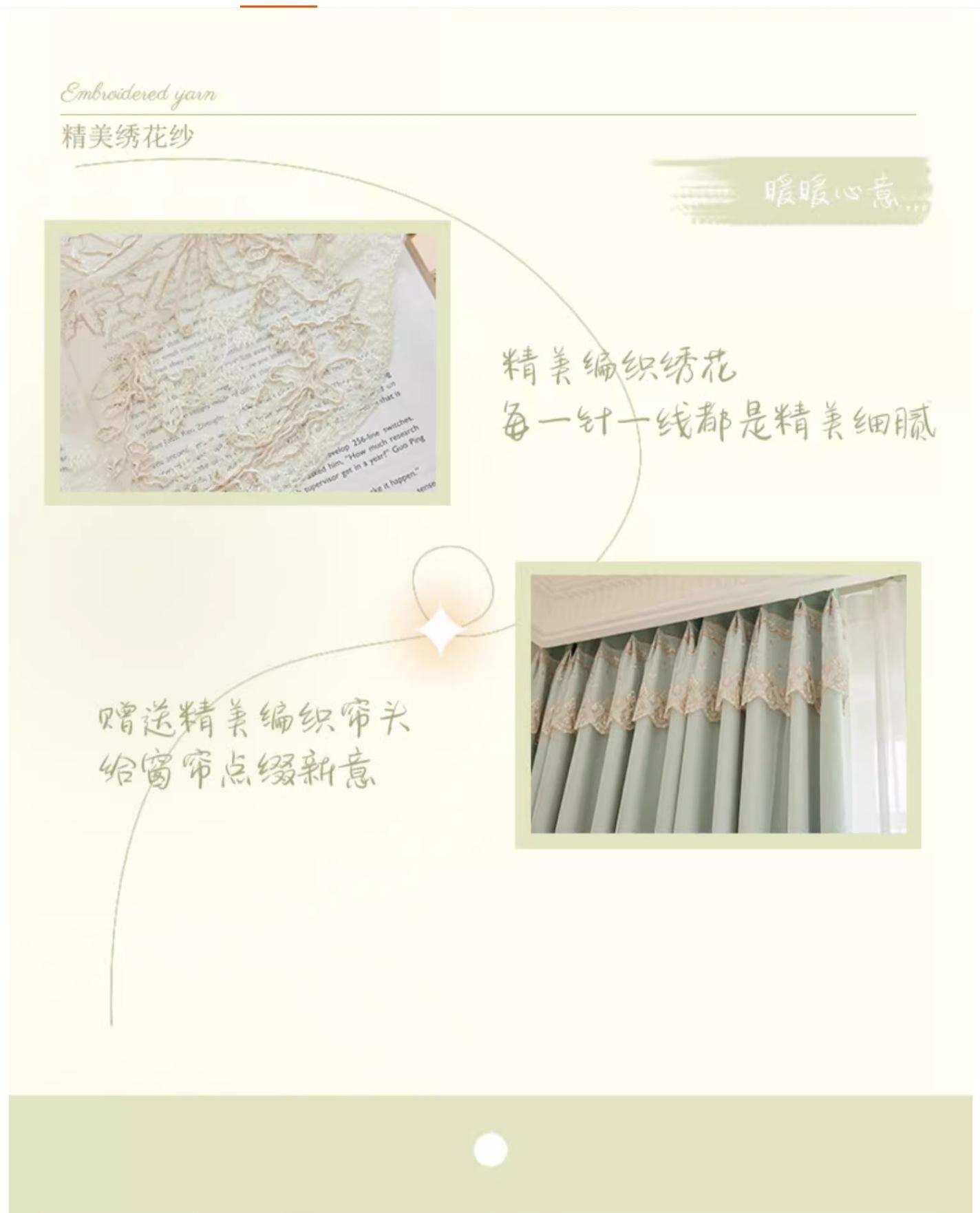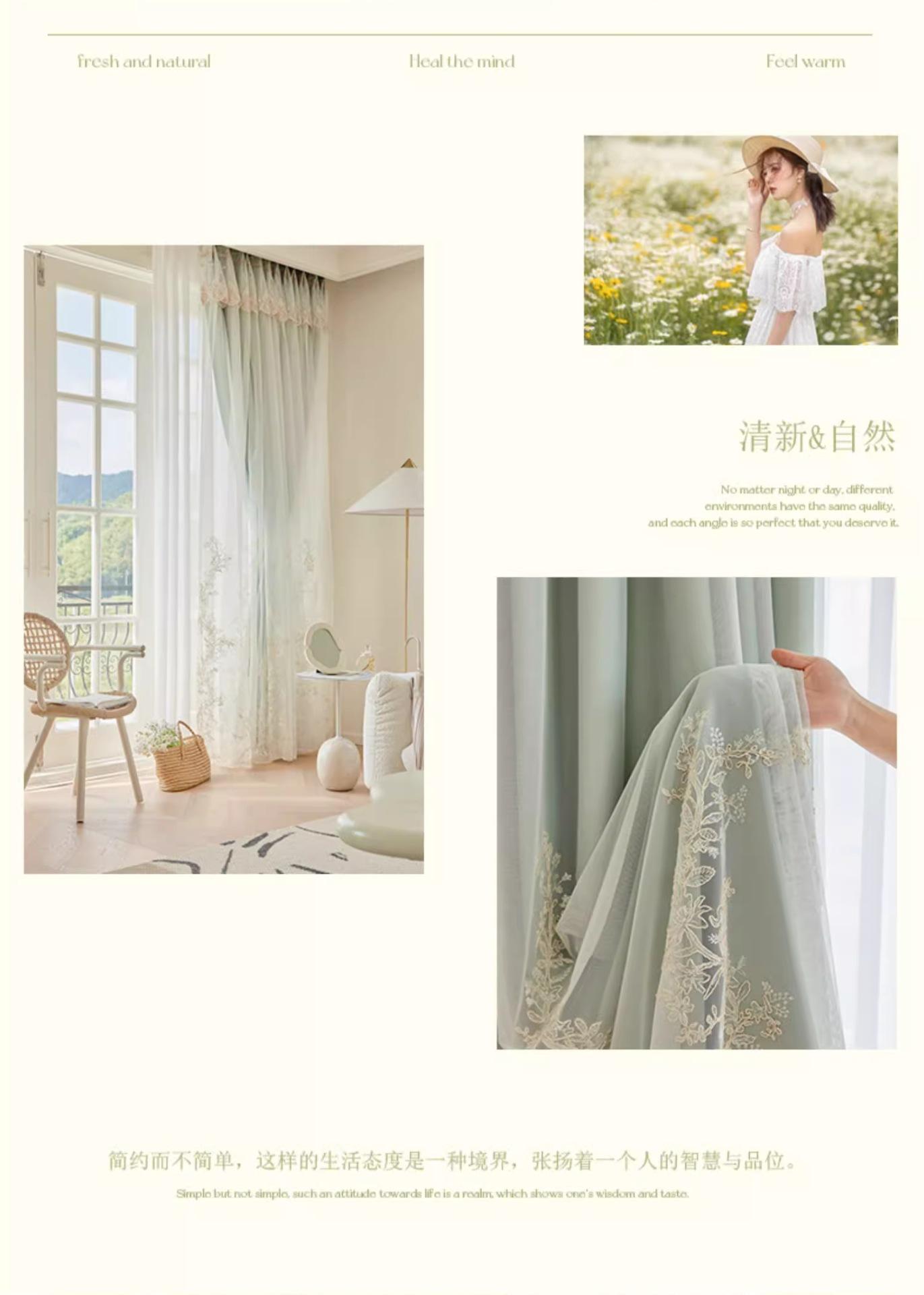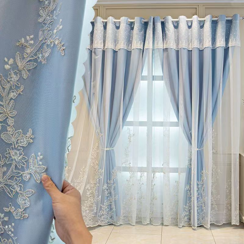 Cortina opaca completa con acabado nórdico simple para dormitorio, estilo princesa, doble capa de gasa bordada con gancho integrado.