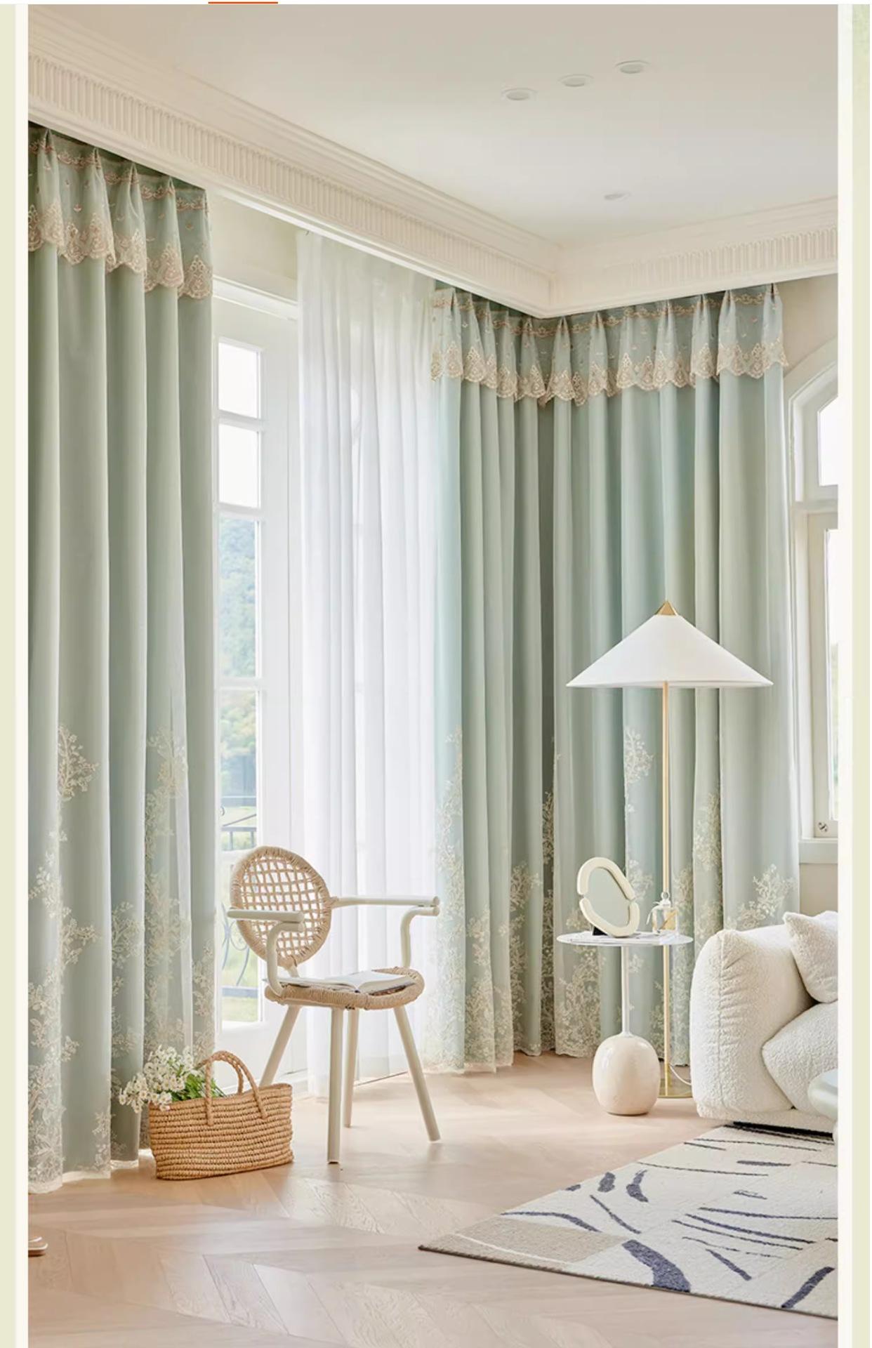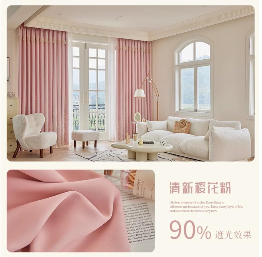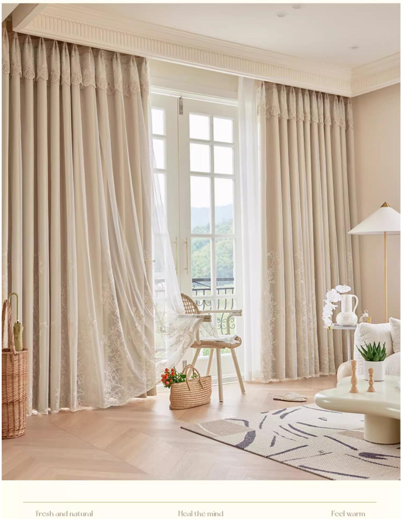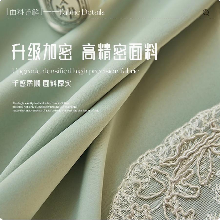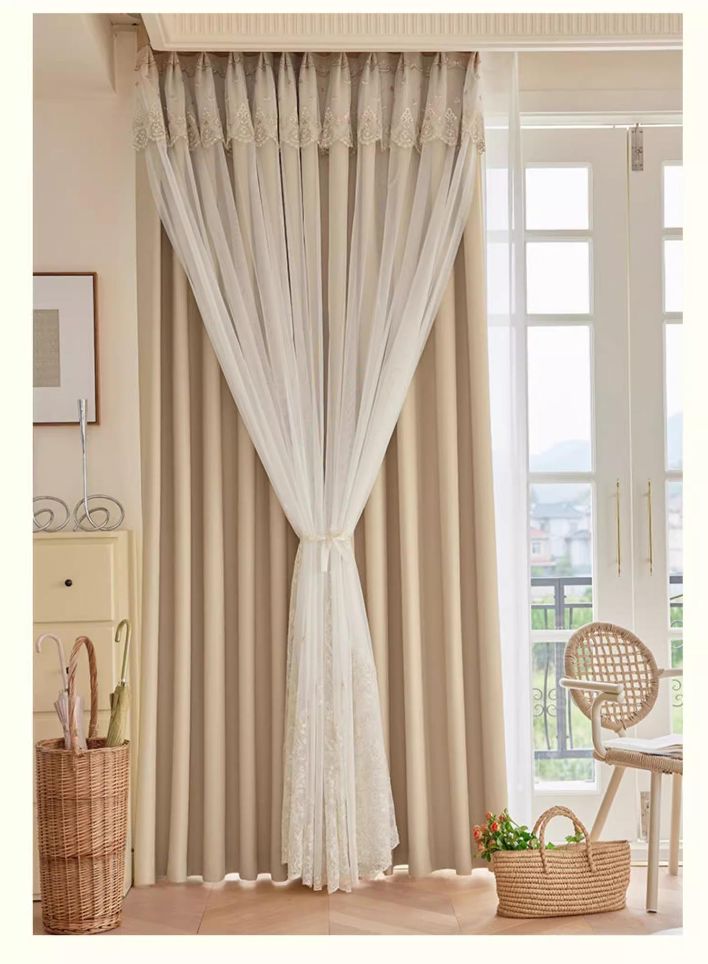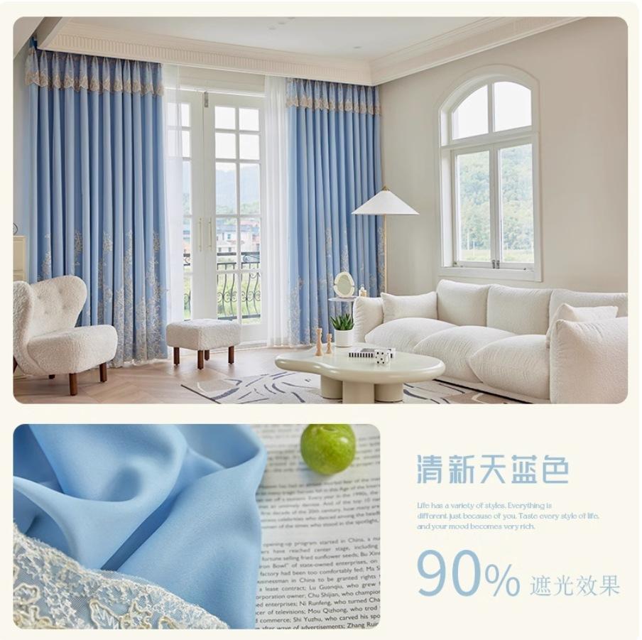 Cortina opaca completa con acabado nórdico simple para dormitorio, estilo princesa, doble capa de gasa bordada con gancho integrado.