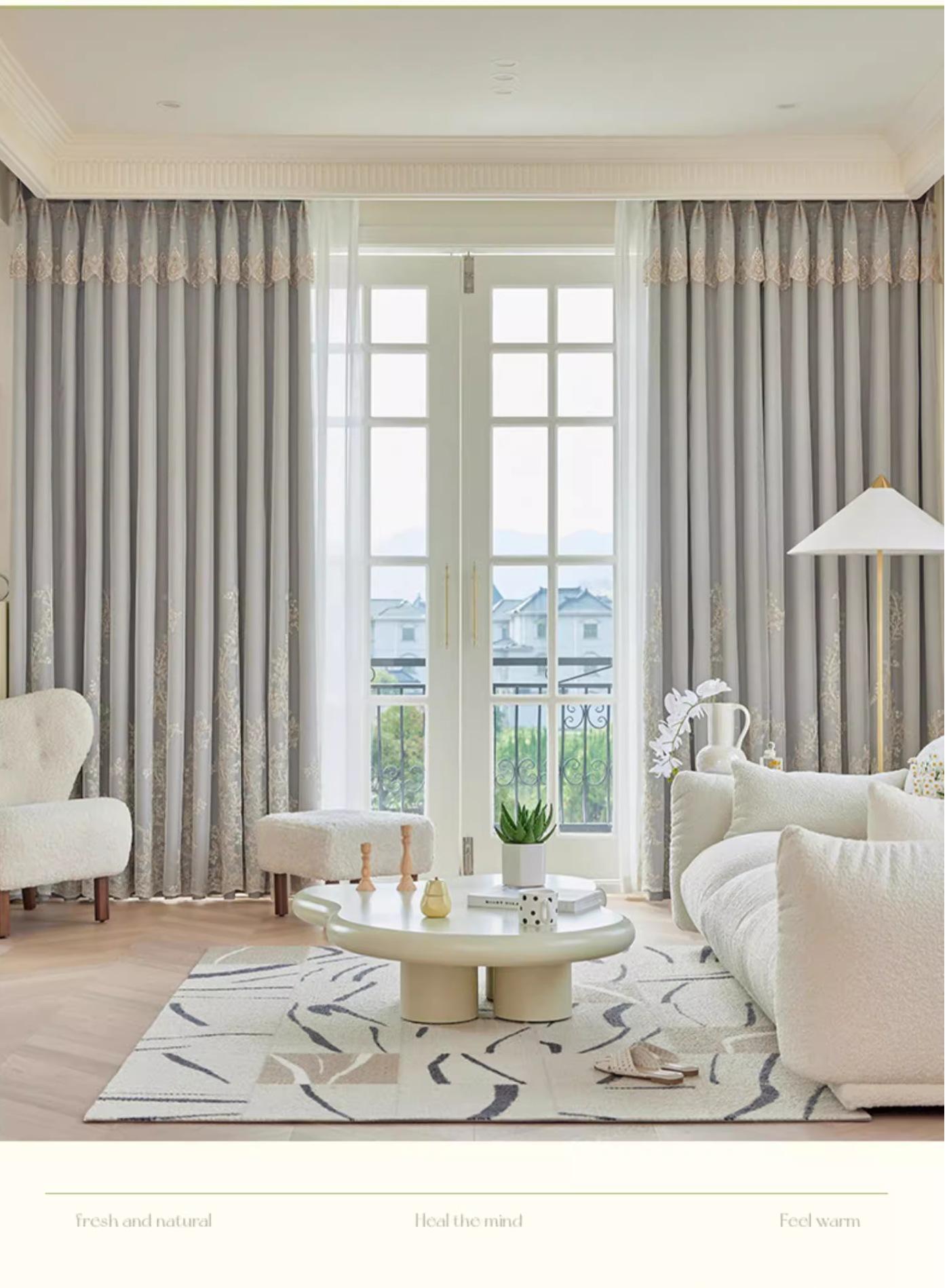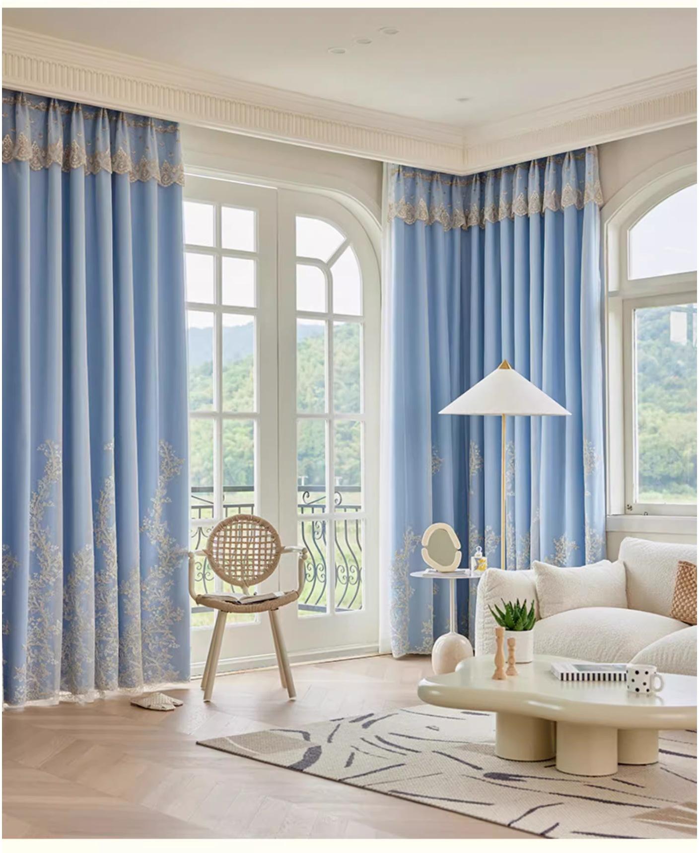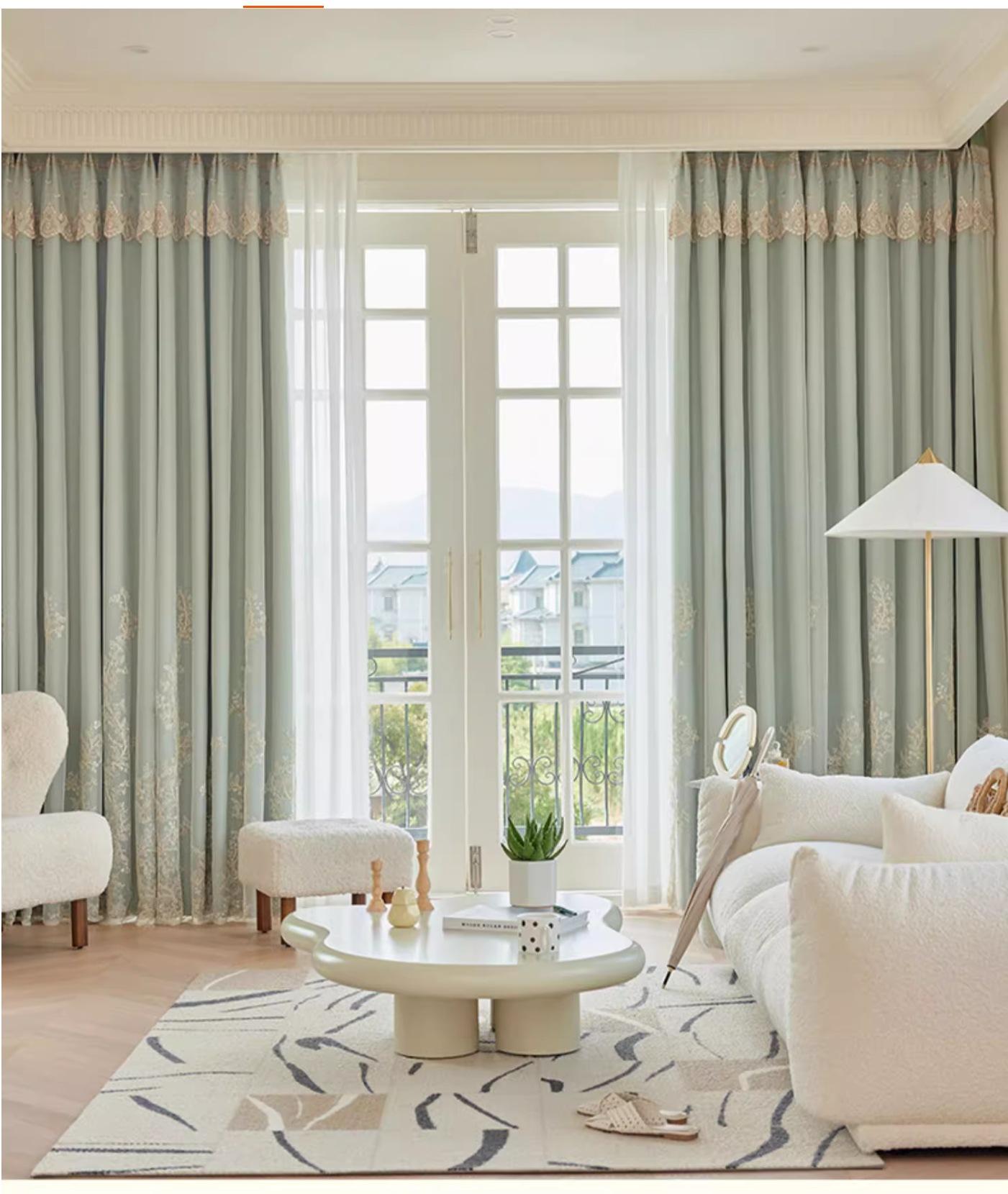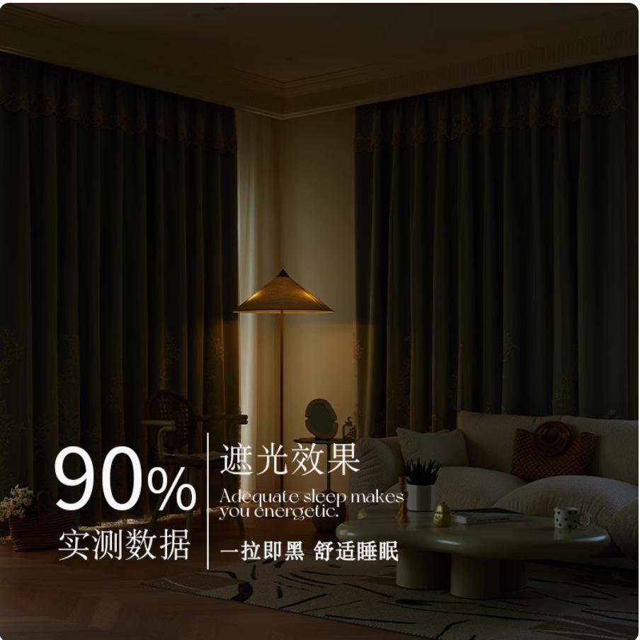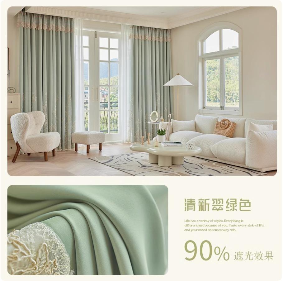 Cortina opaca completa con acabado nórdico simple para dormitorio, estilo princesa, doble capa de gasa bordada con gancho integrado.