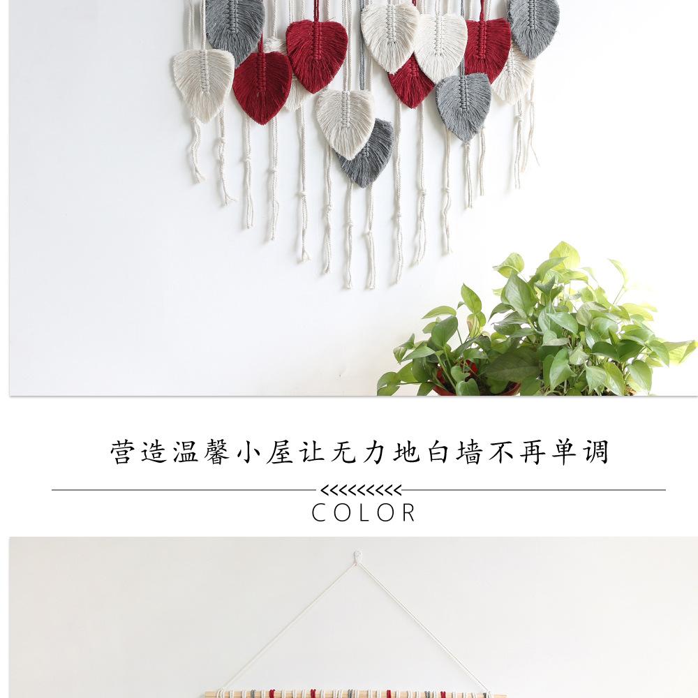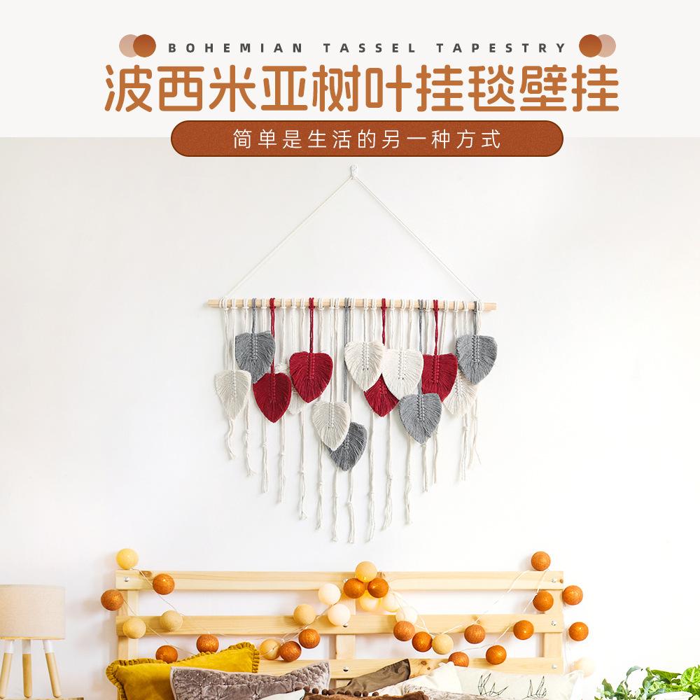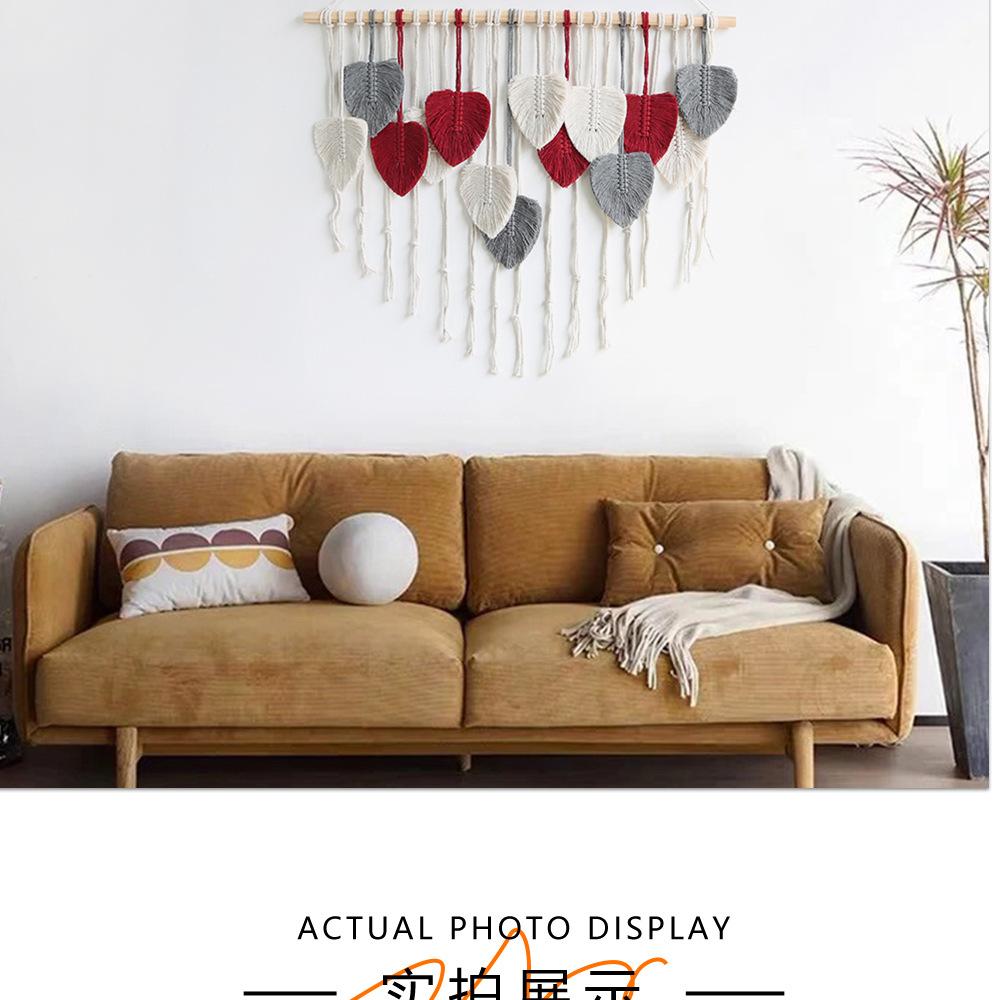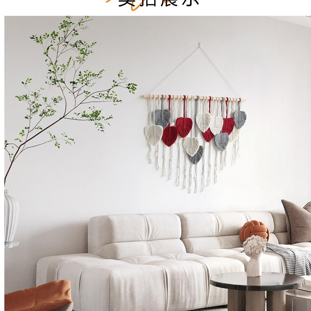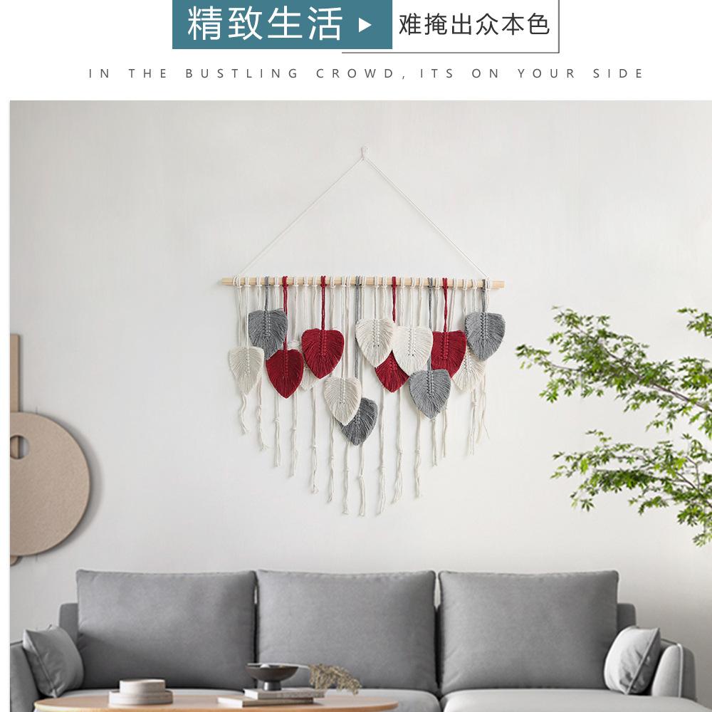 Tapiz nórdico bohemio tejido a mano con borlas de hojas para colgar en la pared de la habitación de casa, decoración de pared de fondo