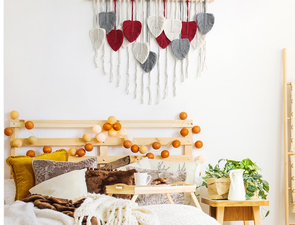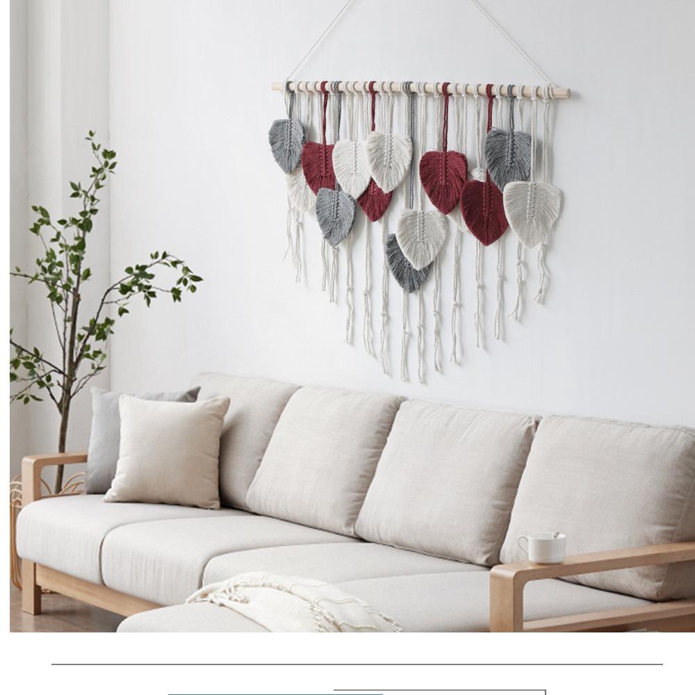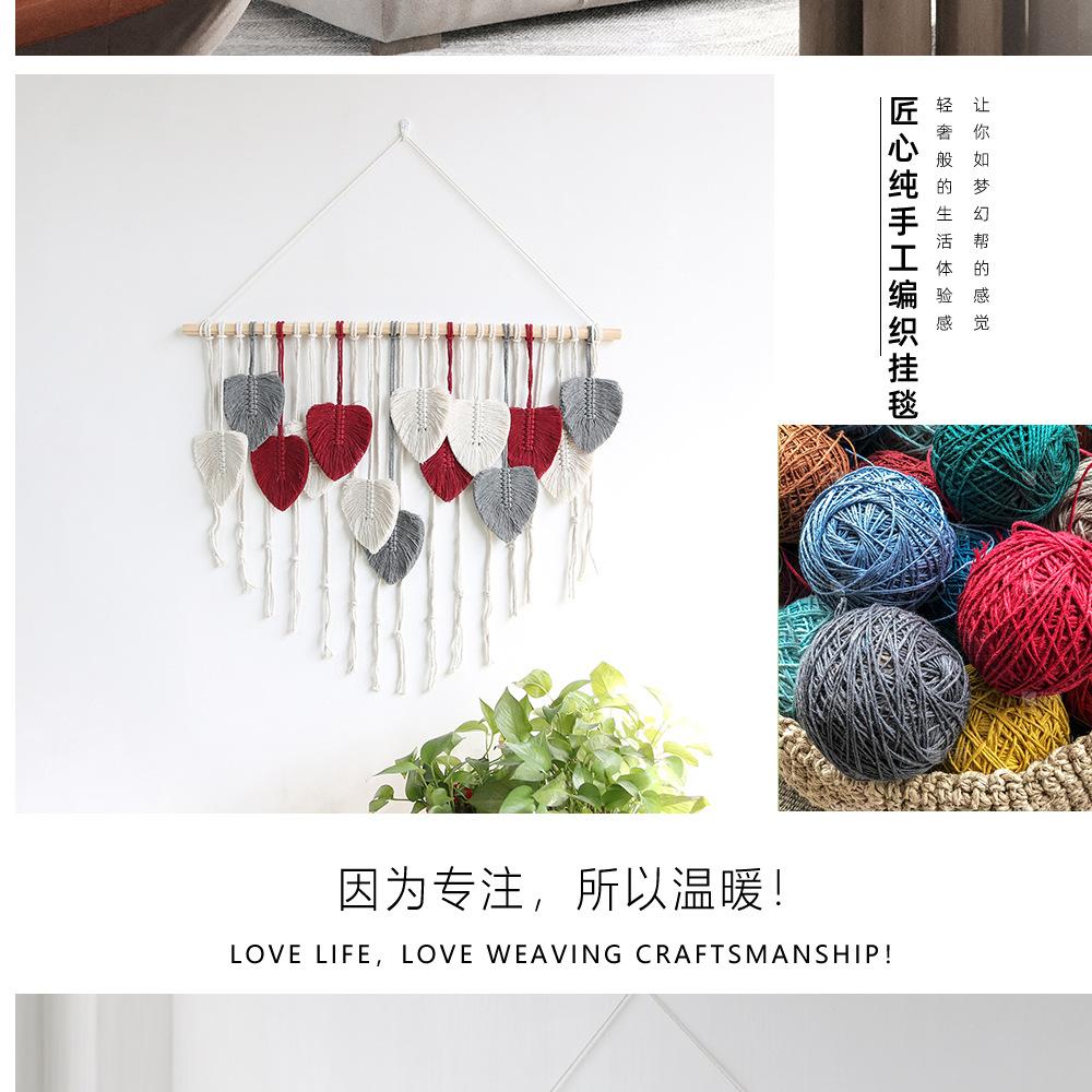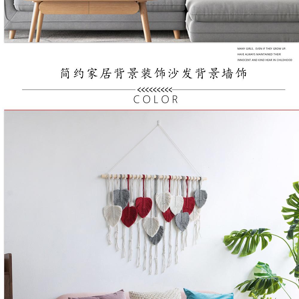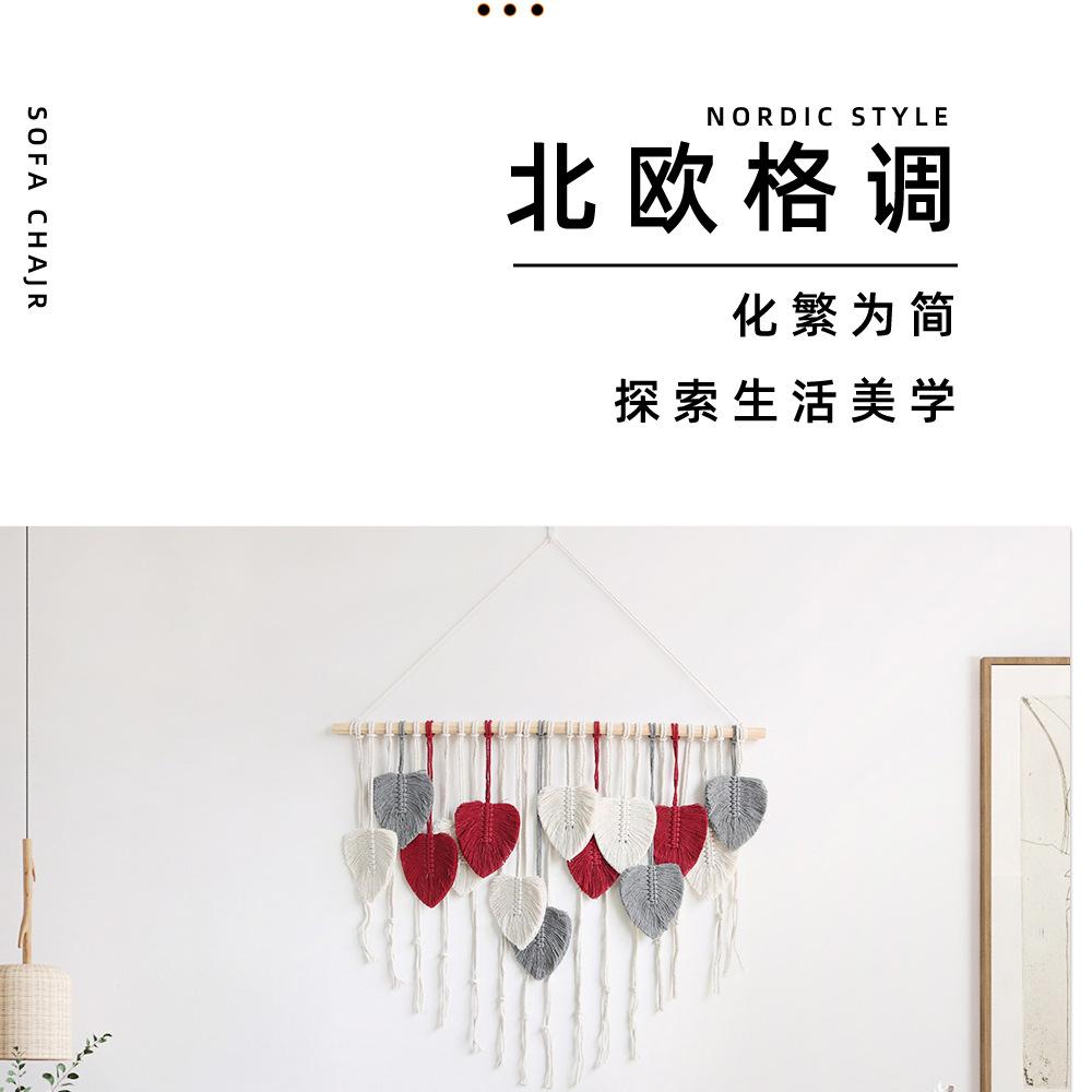 Tapiz nórdico bohemio tejido a mano con borlas de hojas para colgar en la pared de la habitación de casa, decoración de pared de fondo