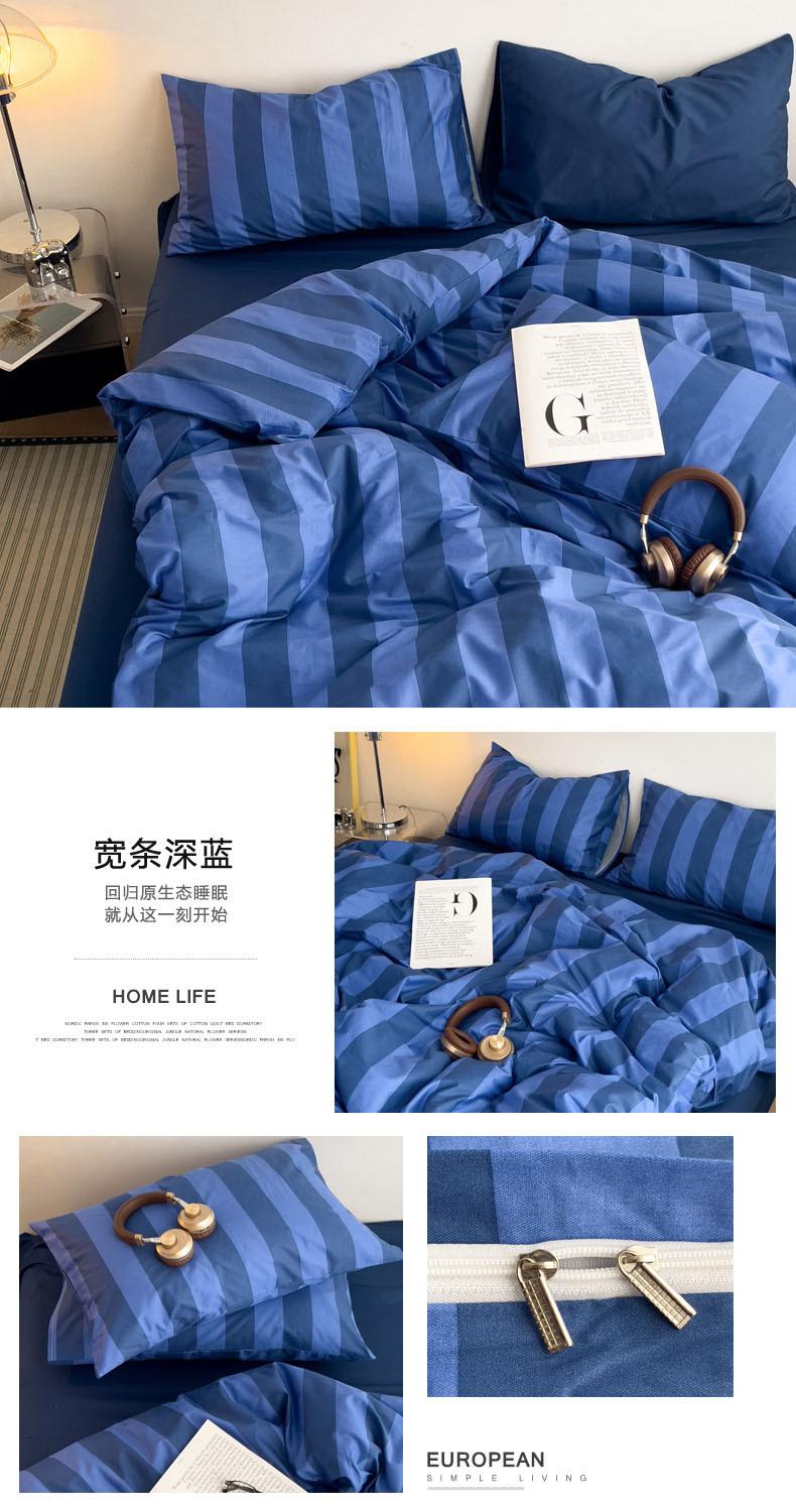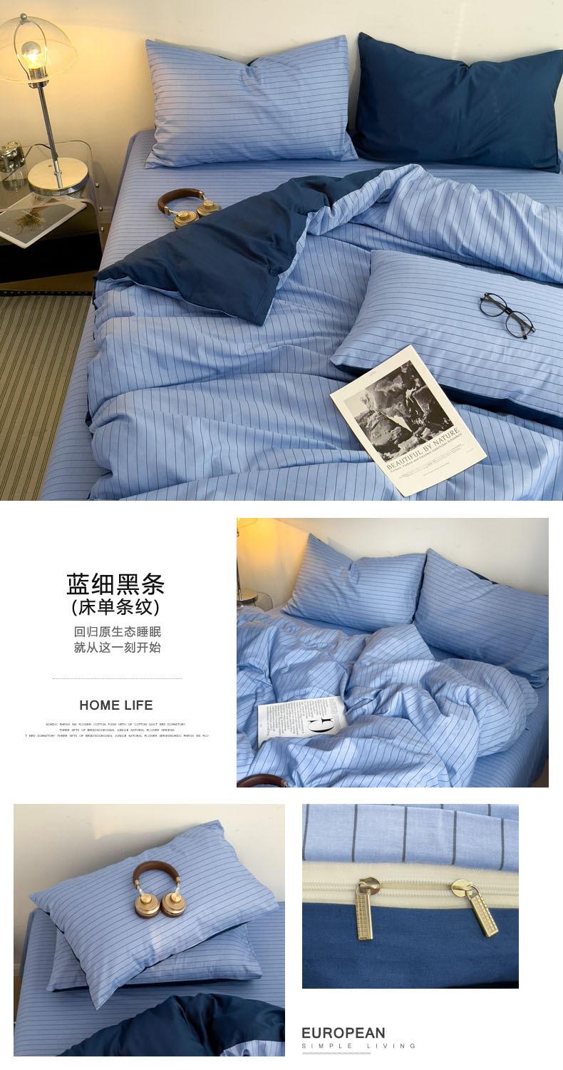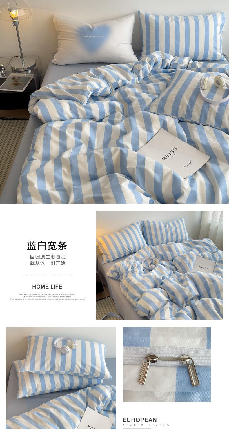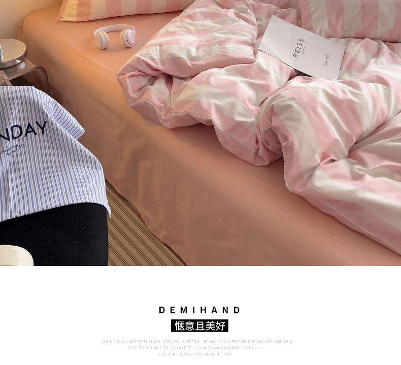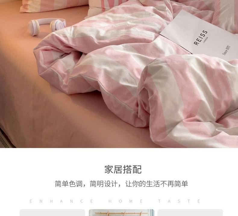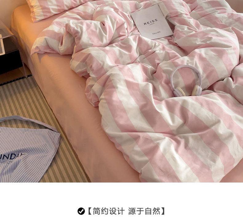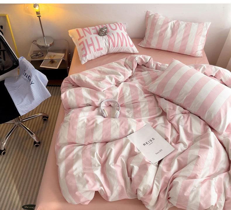 Juego de cama de cuatro piezas estilo Fuji japonés con rayas, funda de edredón y sábana, juego de tres piezas para dormitorio de estudiantes