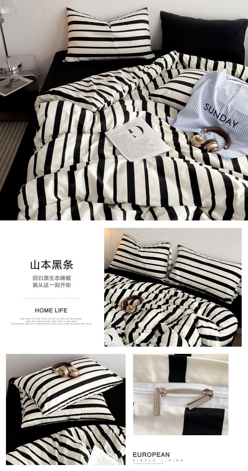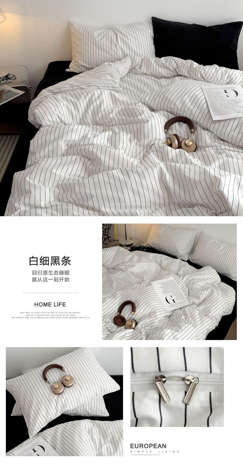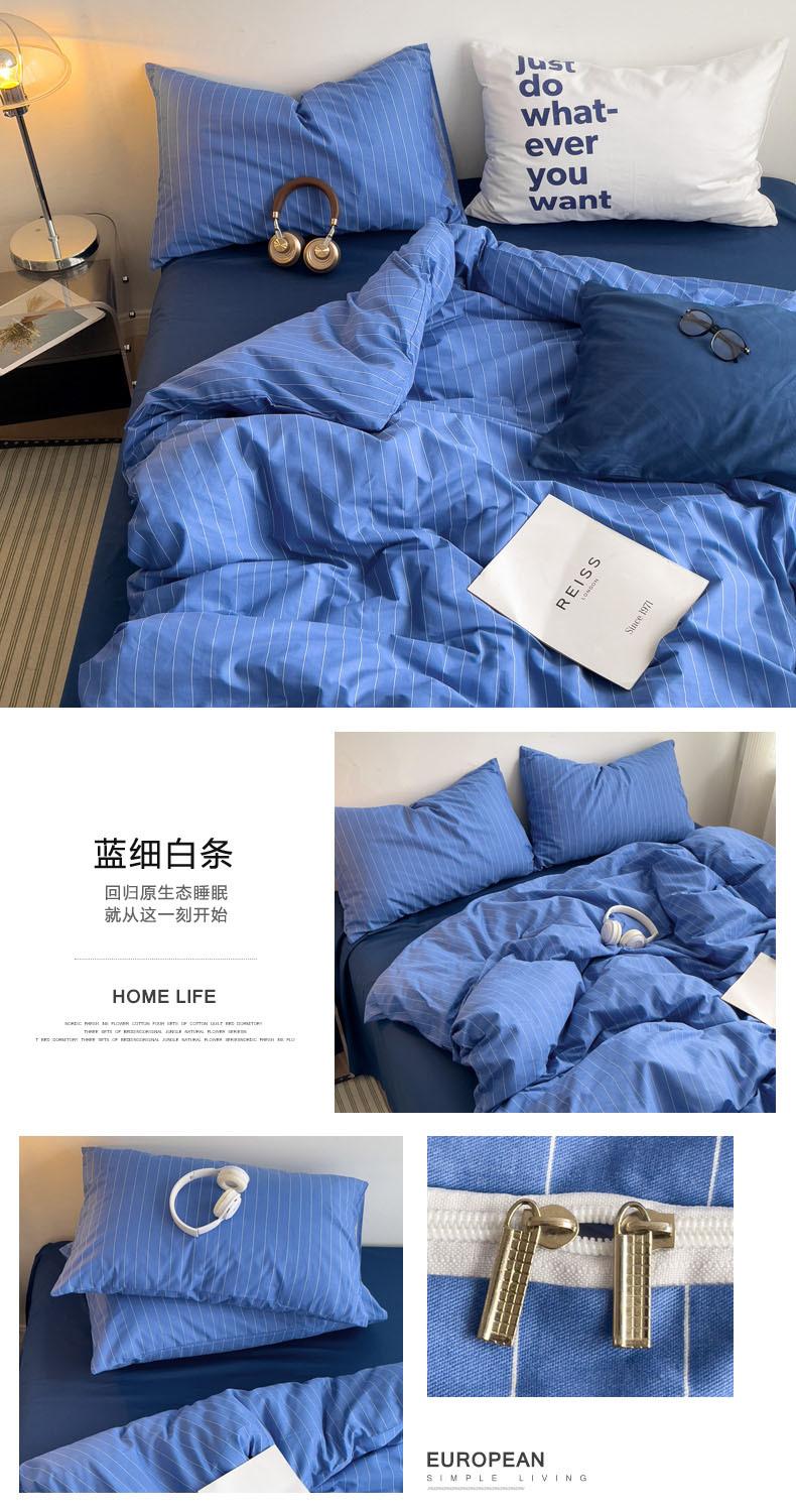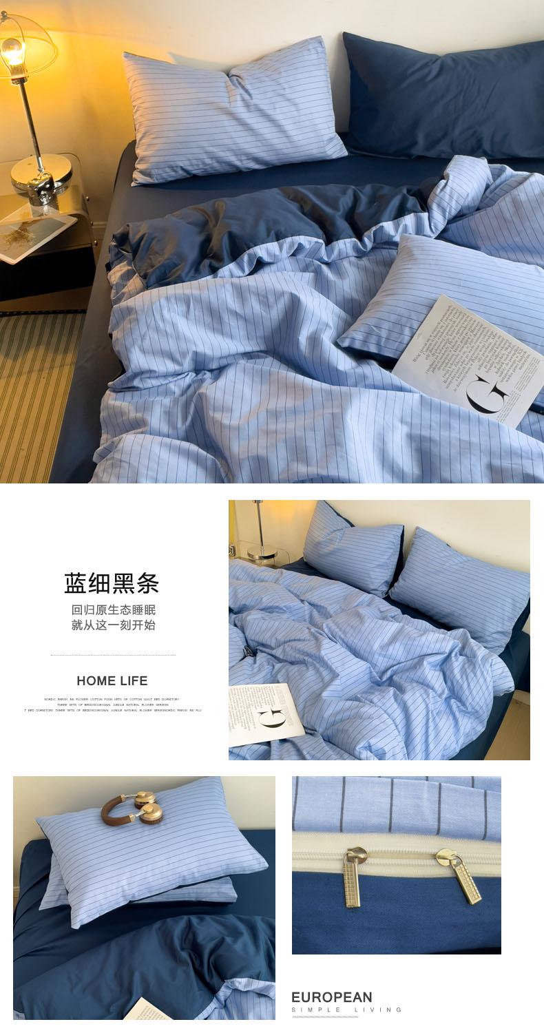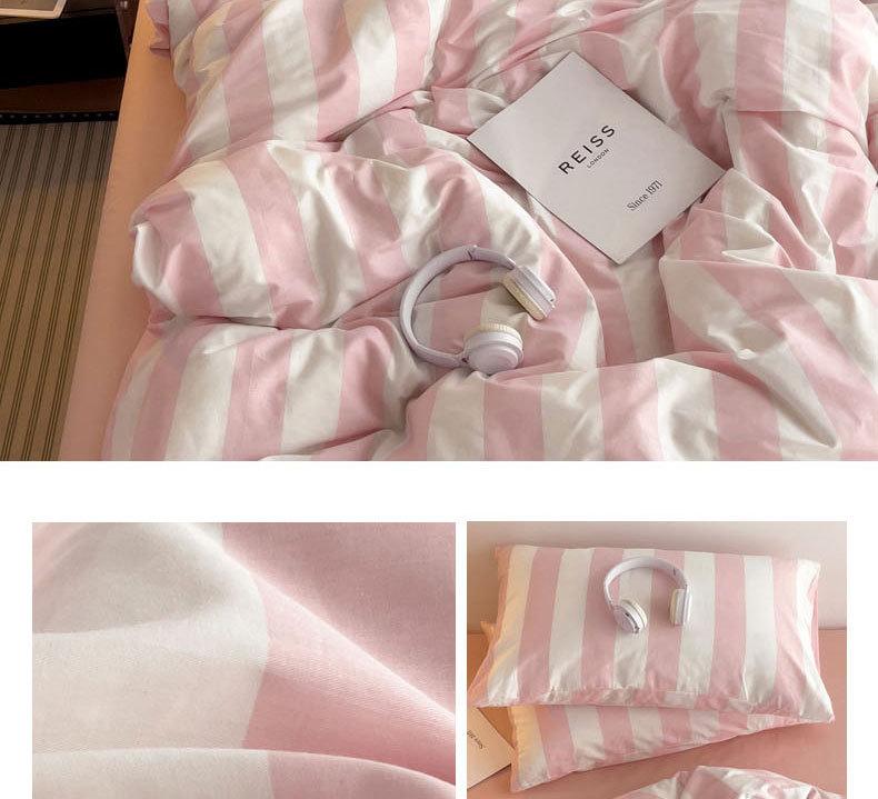 Juego de cama de cuatro piezas estilo Fuji japonés con rayas, funda de edredón y sábana, juego de tres piezas para dormitorio de estudiantes