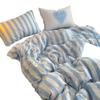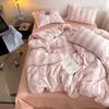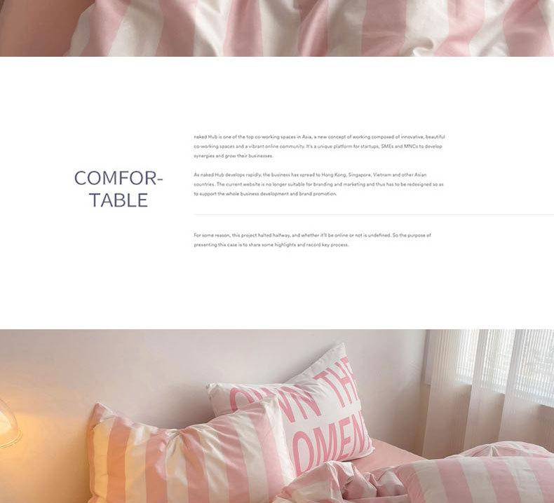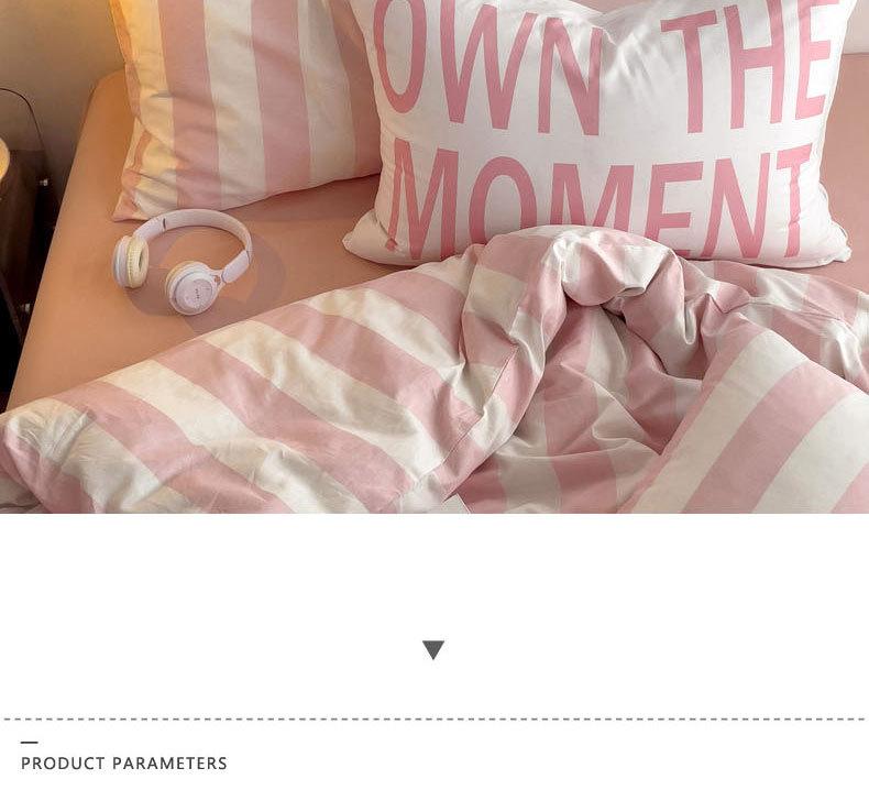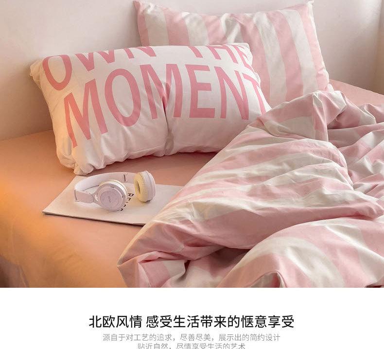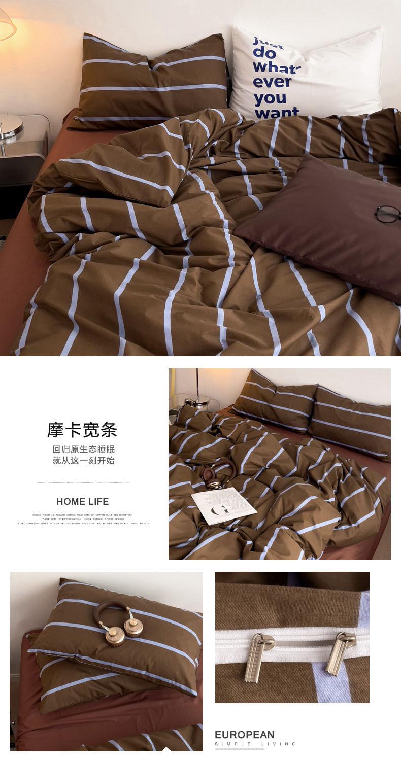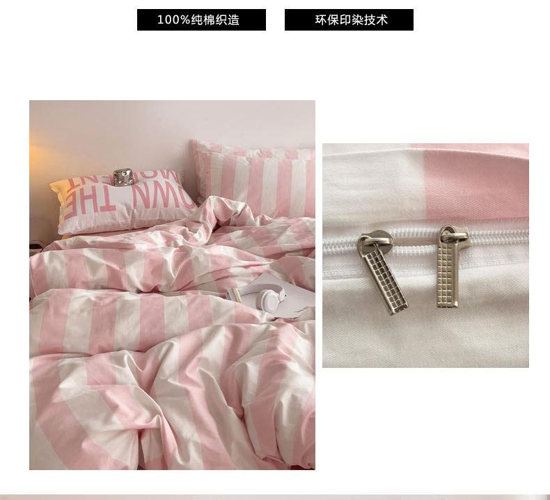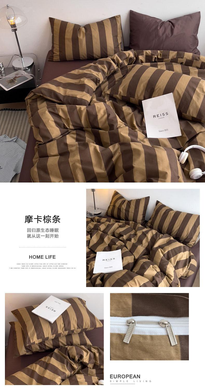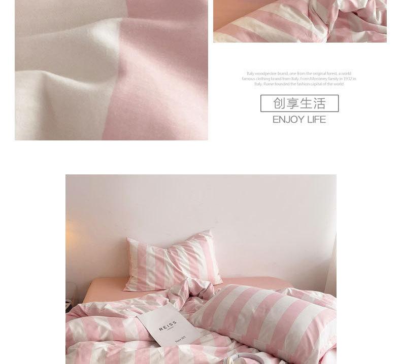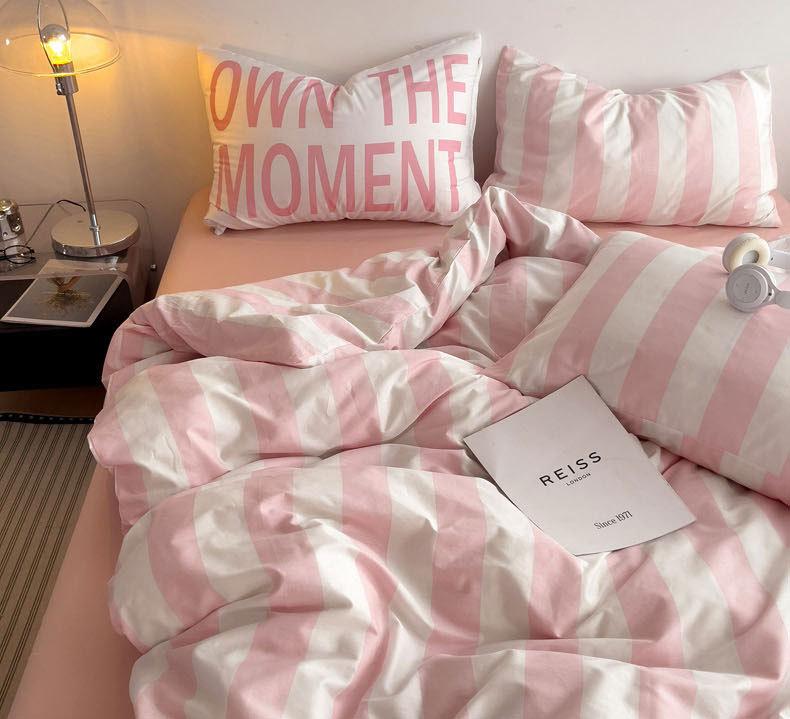 Juego de cama de cuatro piezas estilo Fuji japonés con rayas, funda de edredón y sábana, juego de tres piezas para dormitorio de estudiantes