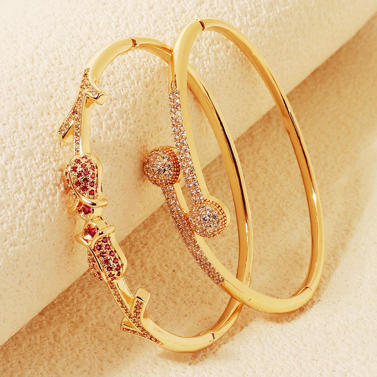 Pulsera de circonita con incrustaciones de cobre de alta calidad transfronteriza, estilo europeo y americano, nueva pulsera ligera de lujo de alta gama con forma geométrica abierta.