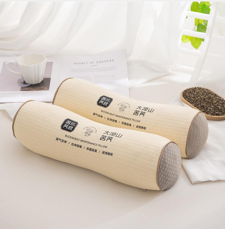 Cylindrical white reverse bow straight special buckwheat pillow [single]], Special buckwheat pillow for straig...