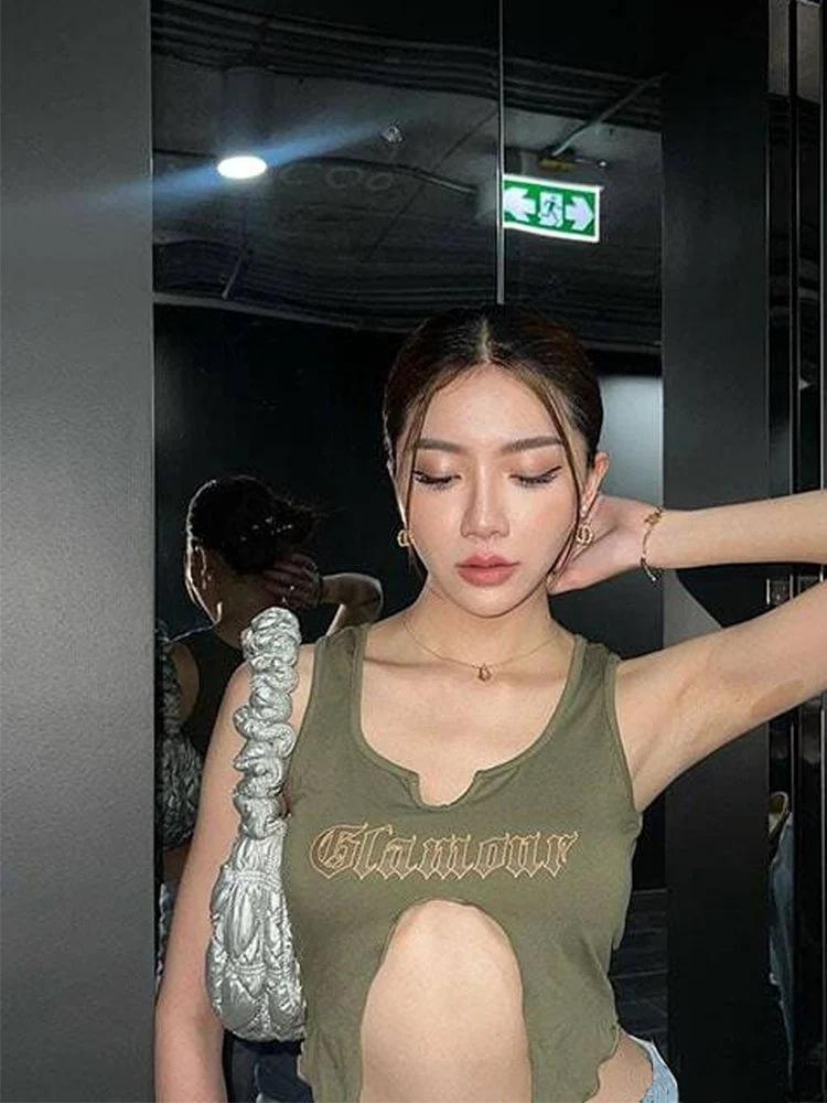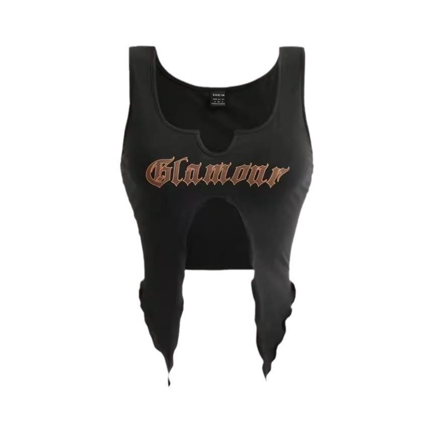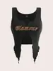 Chaleco de verano 2024 con estampado de letras, sexy, con diseño de ombligo, ajustado, para chica atractiva, que combina con todo.