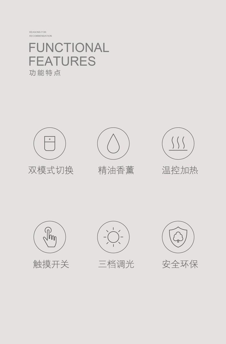 Tiempo de uso: Aromaterapia aproximadamente 2.5 horas, luz nocturna aproximadamente 2-4 horas
