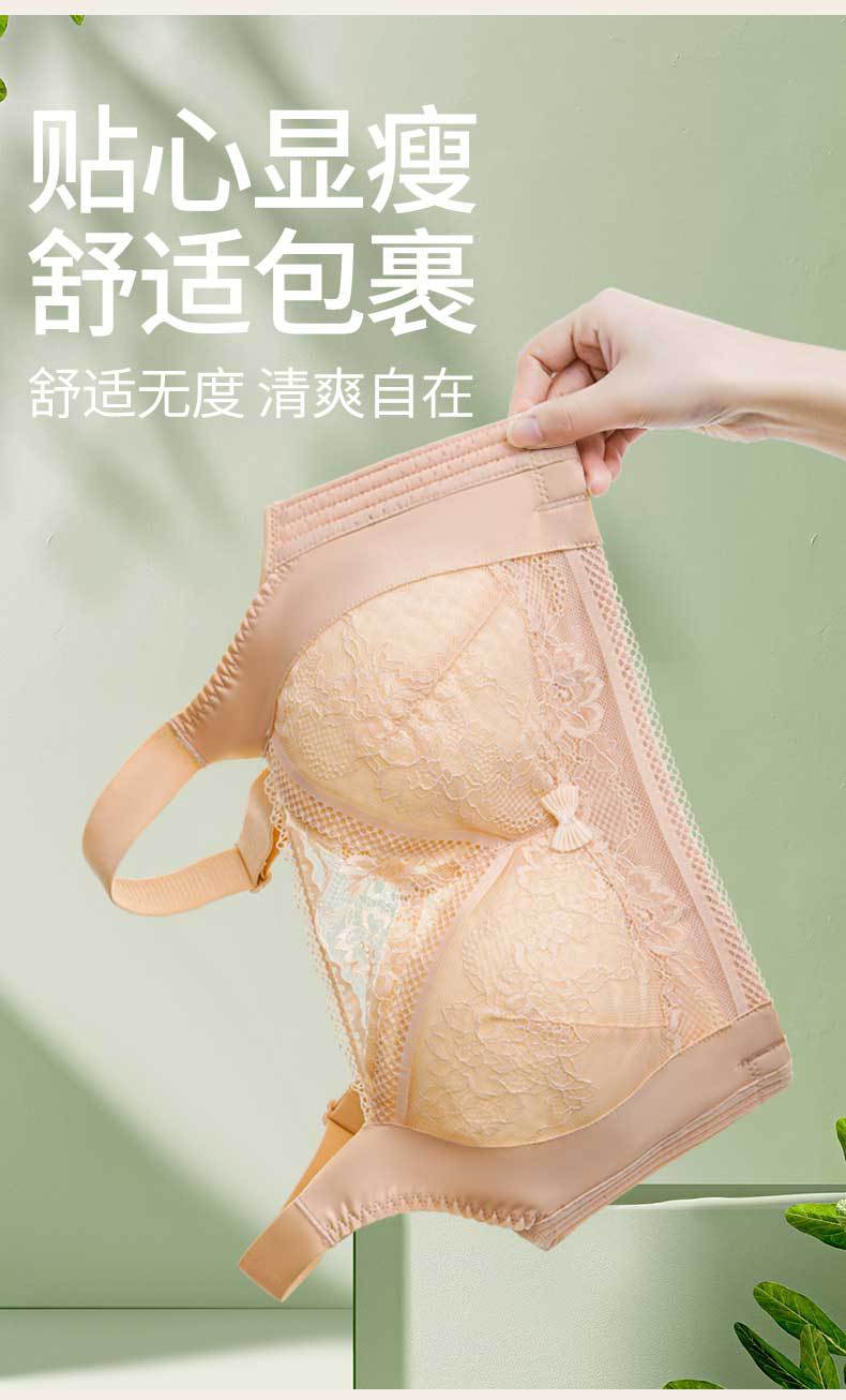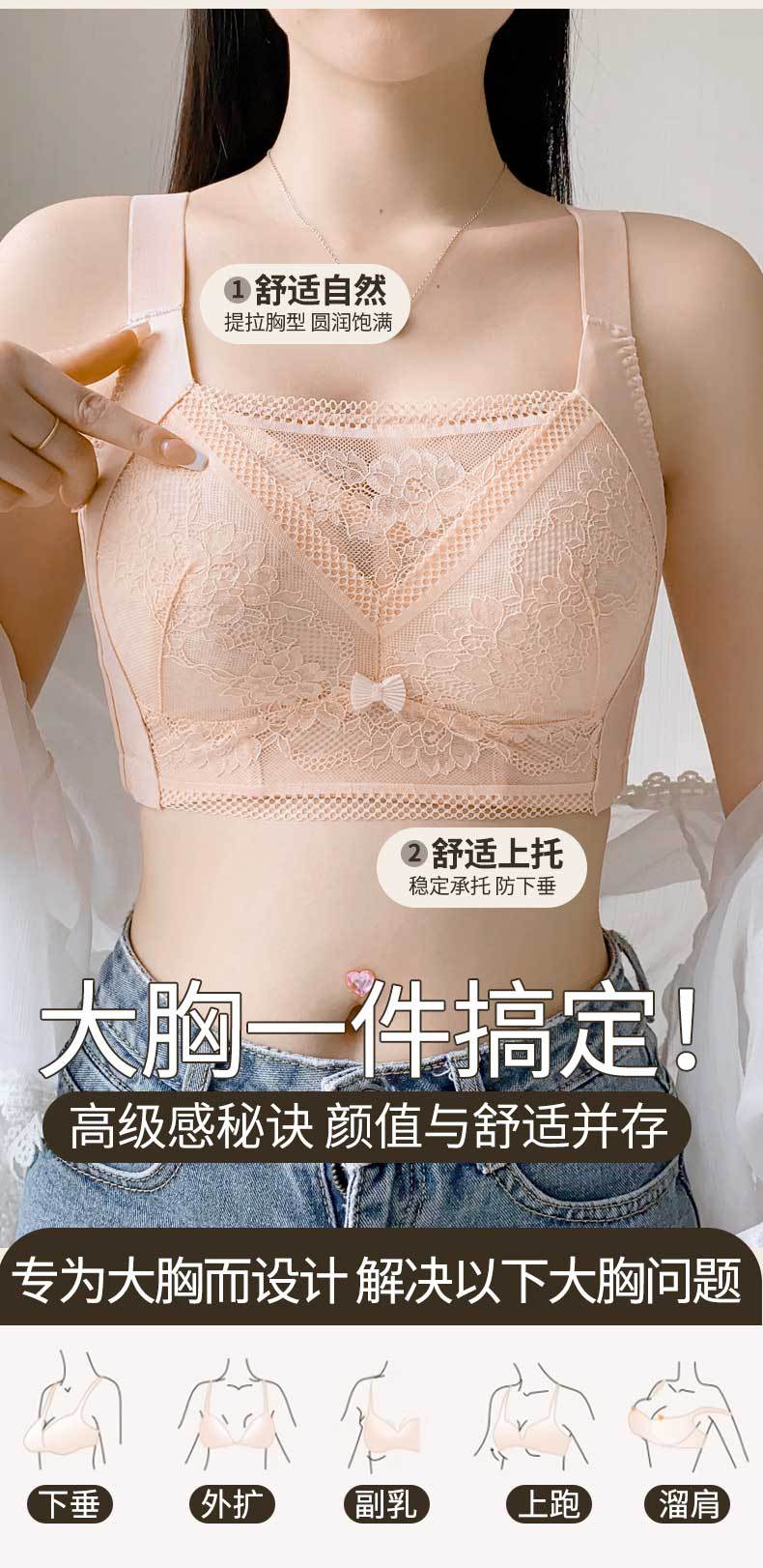 Ropa Interior de Talla Grande para Mujer Pecho Grande Llamativo Pequeño Súper Delgado Copa de Tamaño Completo Tipo Tubo para Chica Gorda Antideslizante Anillos Libres Sujetador Recolector