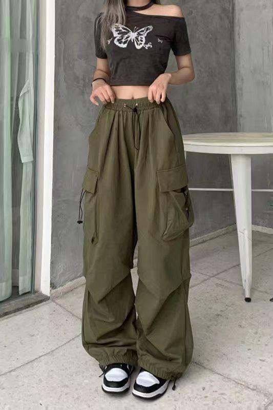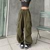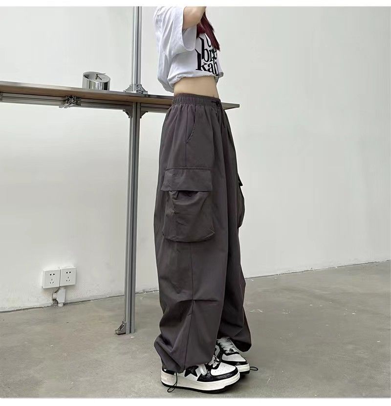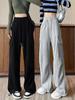 Pantalones de trabajo estilo americano retro, informales, de pierna ancha, de verano, para mujer, nuevos, rectos, combinables, de cintura alta, adelgazantes, de pierna ancha, a la moda.