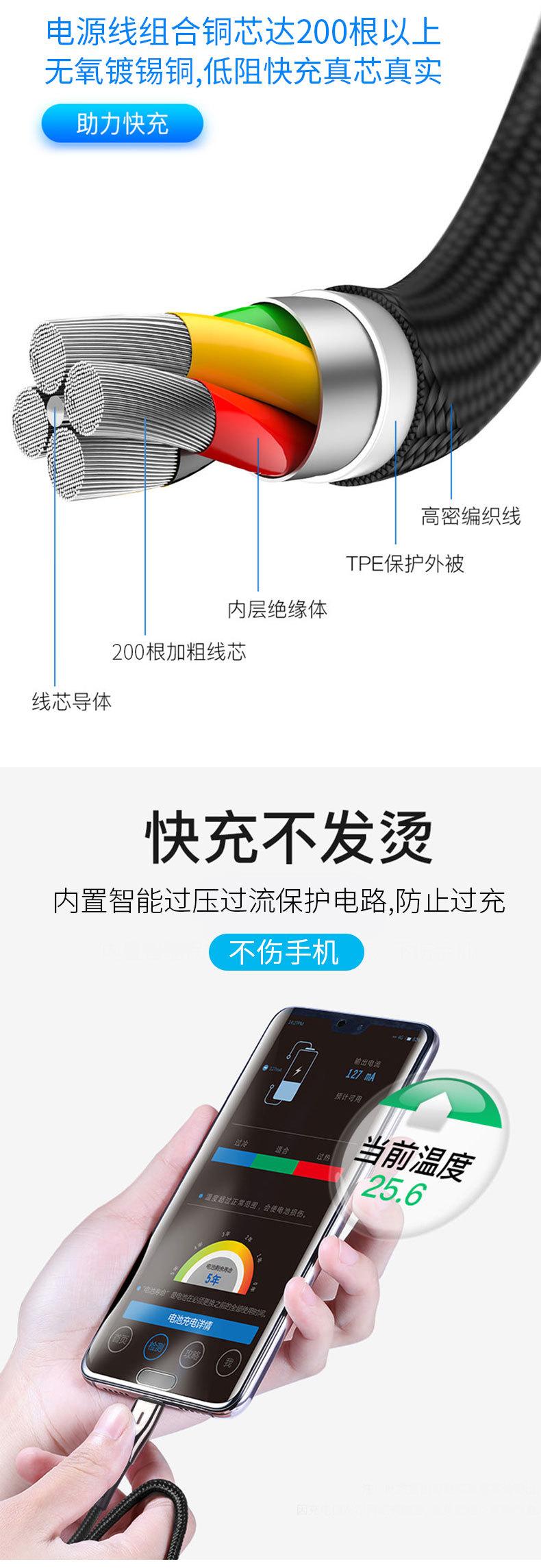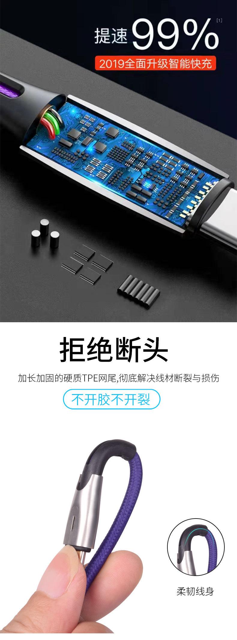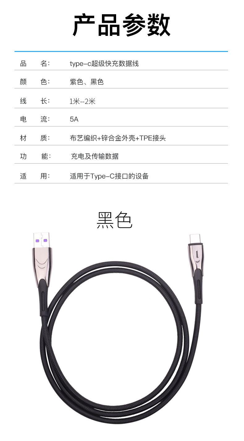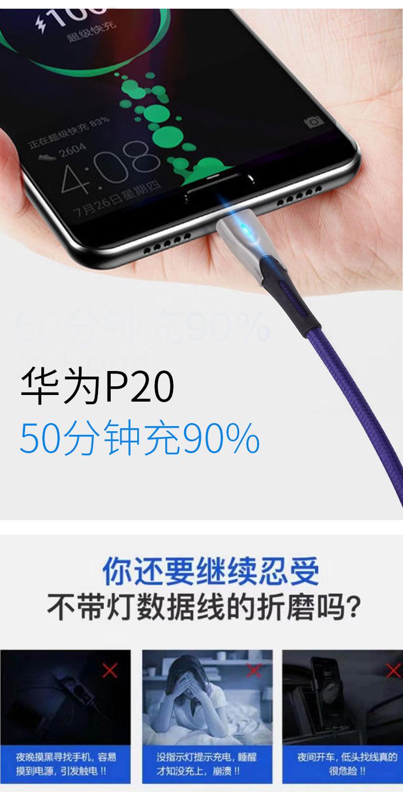 Cable de datos tipo C de carga rápida 5A de fábrica con luz indicadora, cable de datos para teléfono móvil de carga súper rápida de aleación de zinc.