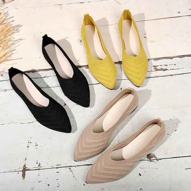Zapatos de punto de talla grande para comercio exterior transfronterizo, verano nuevos, cómodos, transpirables, de moda, combinan con todo, planos, para mujer, negro, amarillo