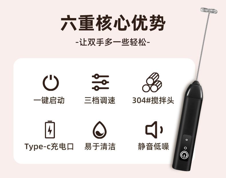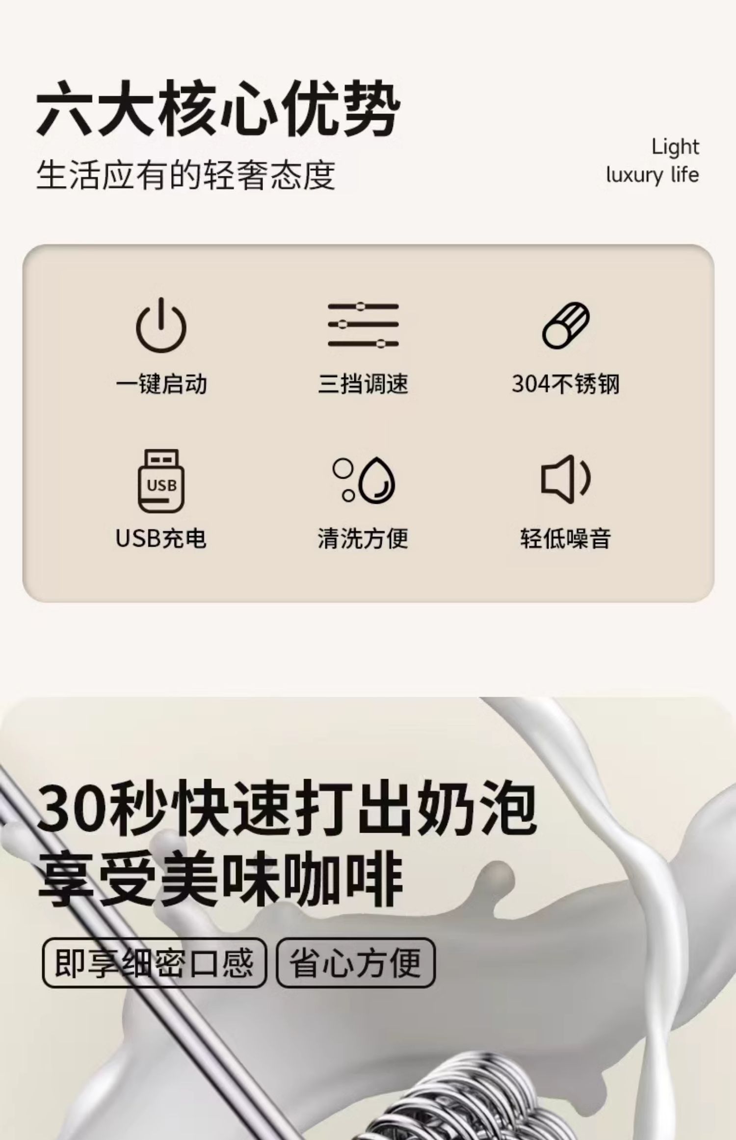 Espumador de Leche Eléctrico Inalámbrico Mini Espumador de Leche para Café Espumador de Leche Doméstico Batidora de Huevos Eléctrica de Mano