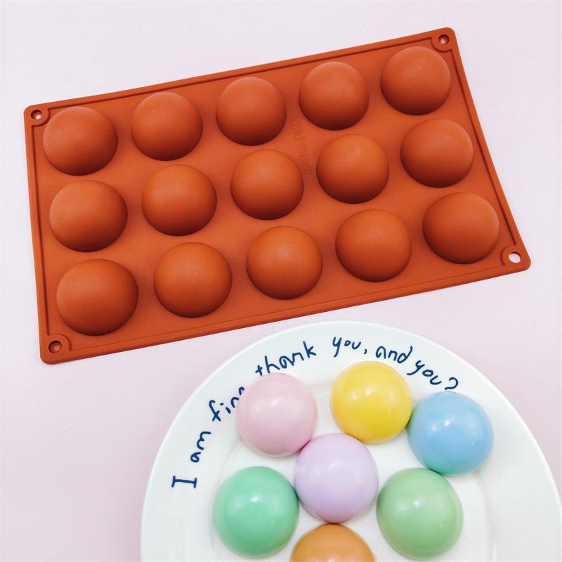 Nombre: Molde de silicona semicircular de 15 piezas, molde para sándwich, chocolate, postre, horneado, molde para dulces DIY, bandeja de hielo, herramienta para decoración de pasteles