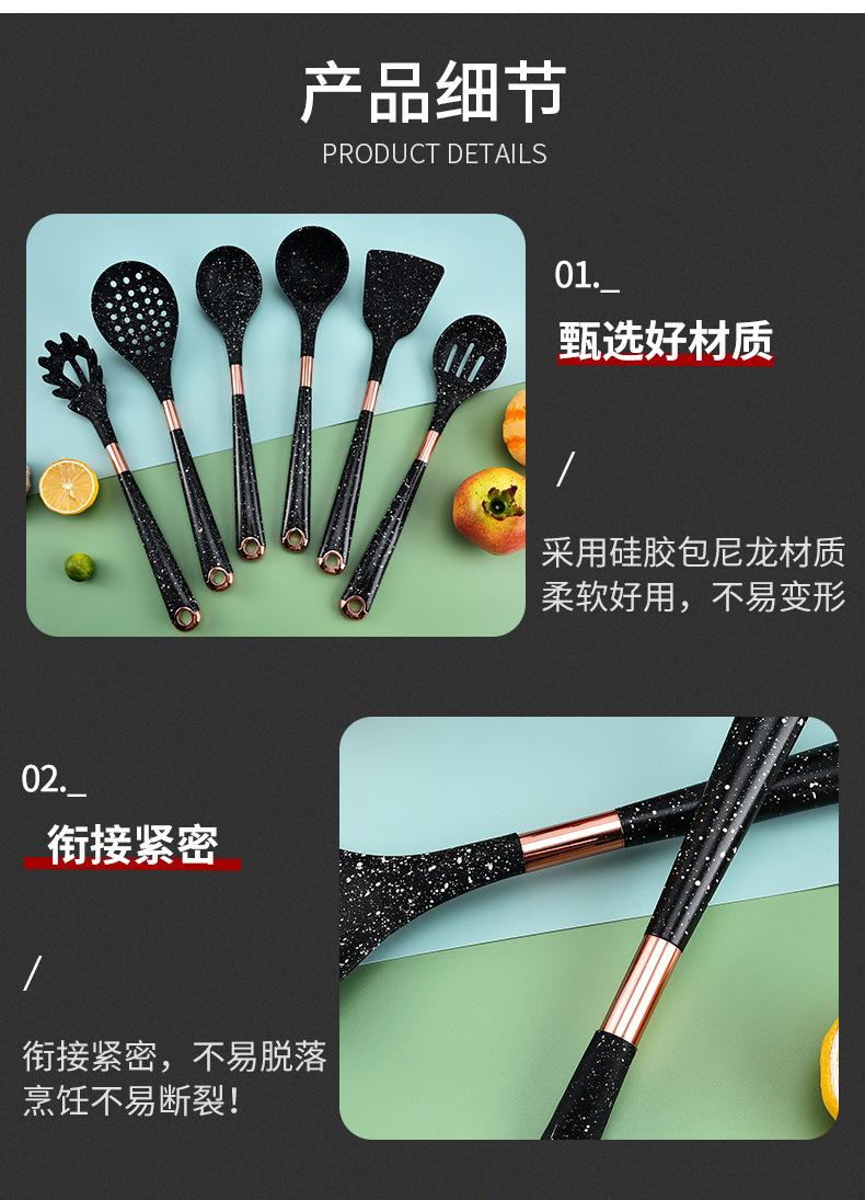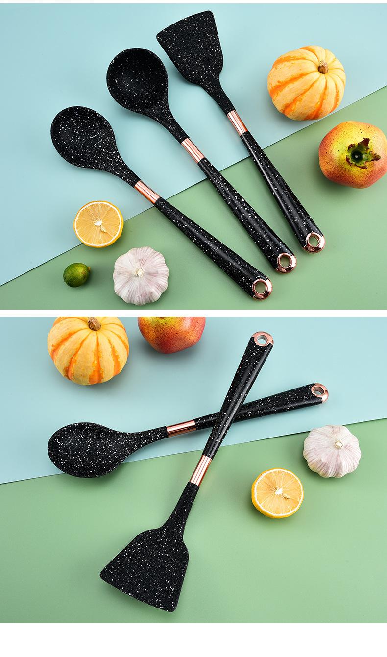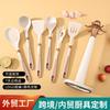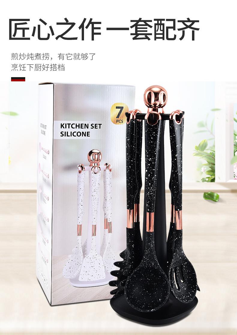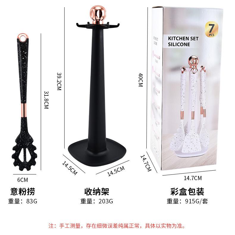 Utensilios de Cocina de Silicona para Comercio Exterior Juego de Siete Piezas Cuchara de Cocina Espátula de Cocina Antiadherente con Juego de Soporte Giratorio para Almacenamiento