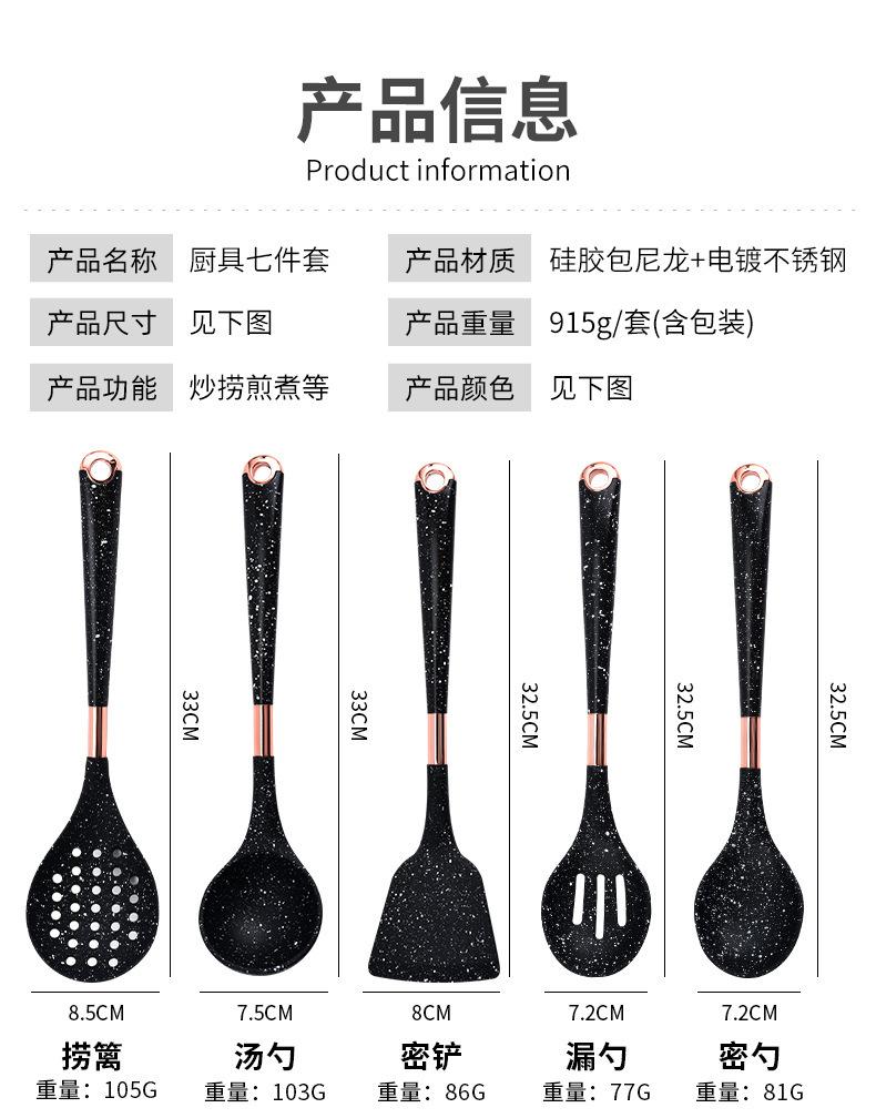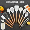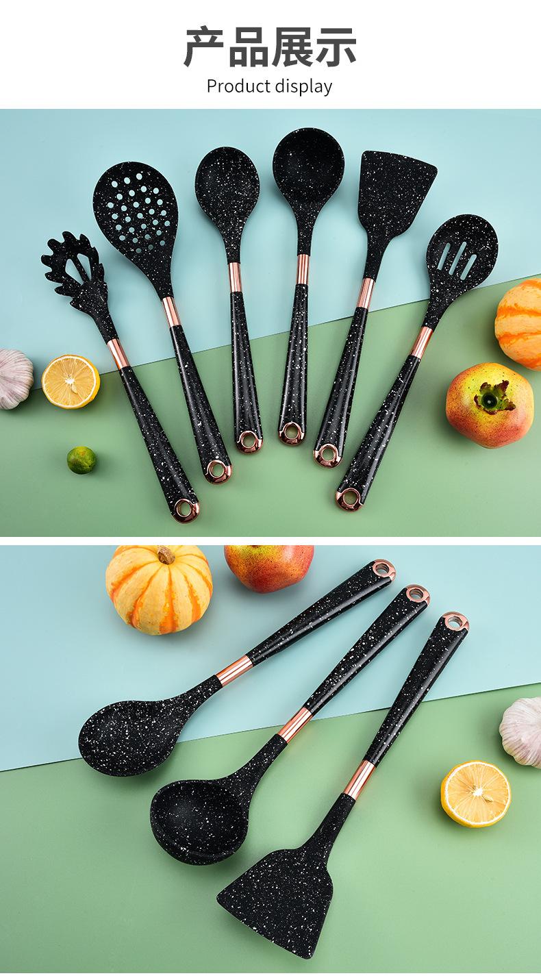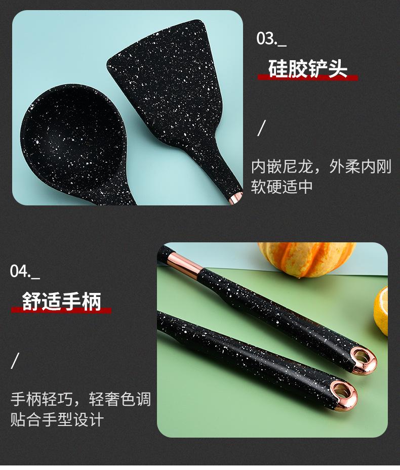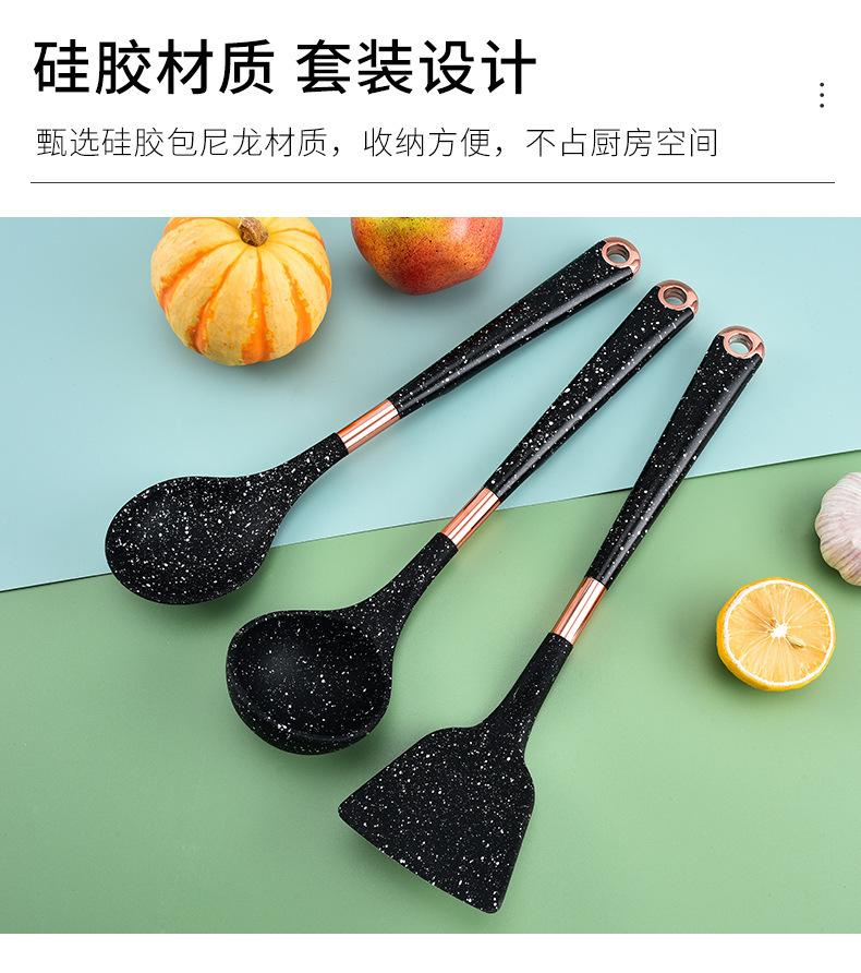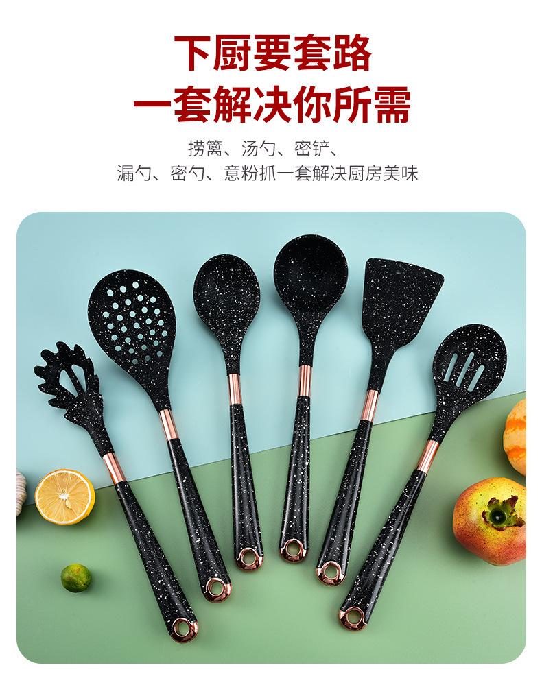 Utensilios de Cocina de Silicona para Comercio Exterior Juego de Siete Piezas Cuchara de Cocina Espátula de Cocina Antiadherente con Juego de Soporte Giratorio para Almacenamiento