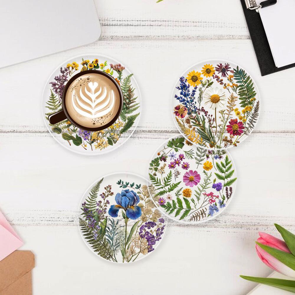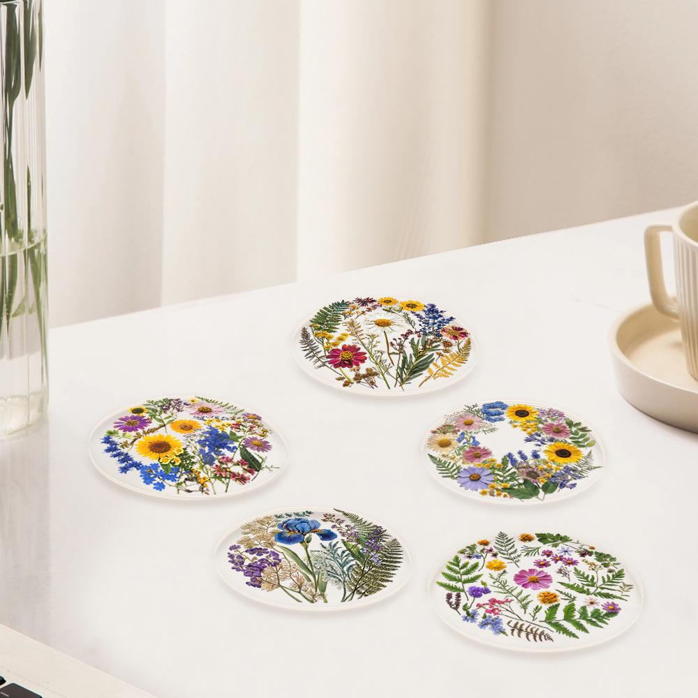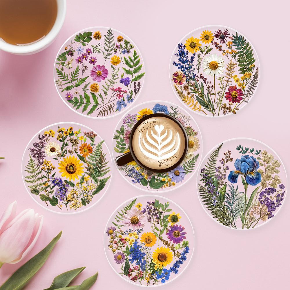 Posavasos plano de acrílico 2D con diseño floral disperso de estilo chino transfronterizo para decoración de fiestas en el hogar y bares.
