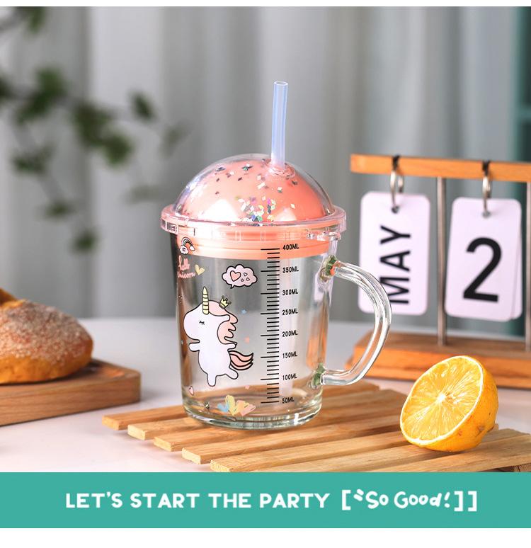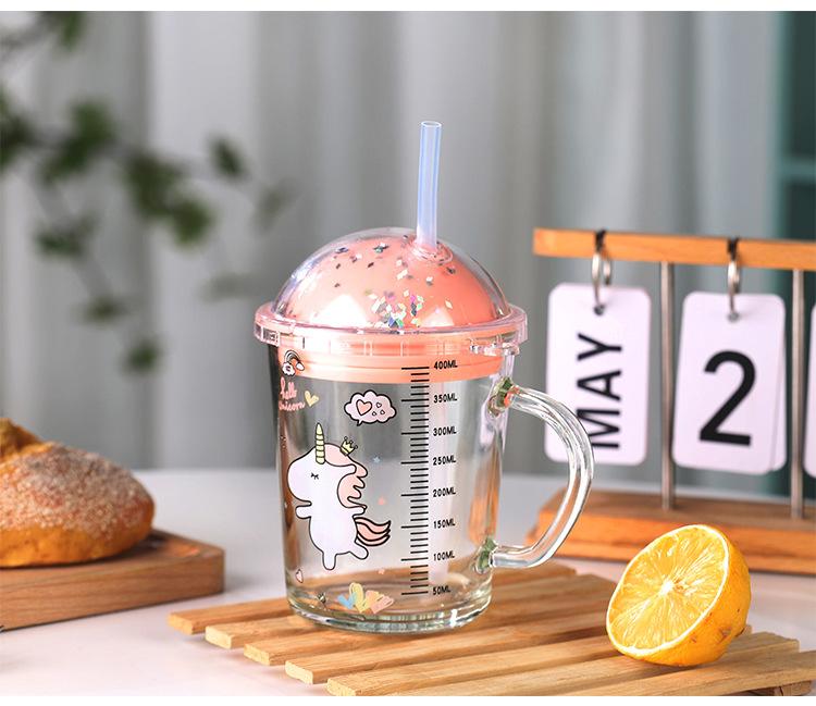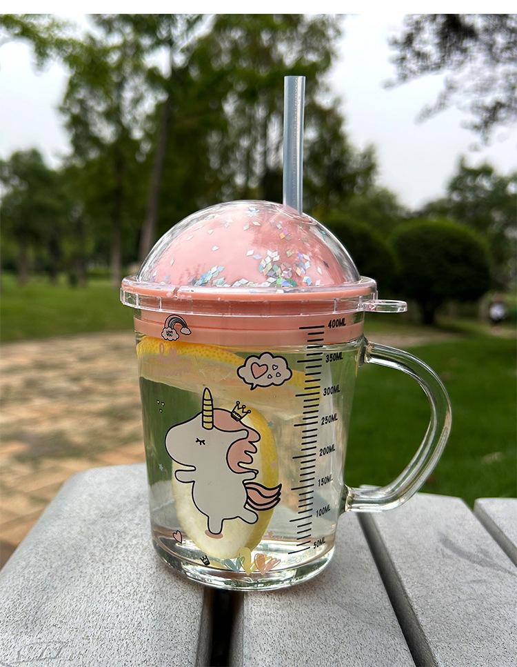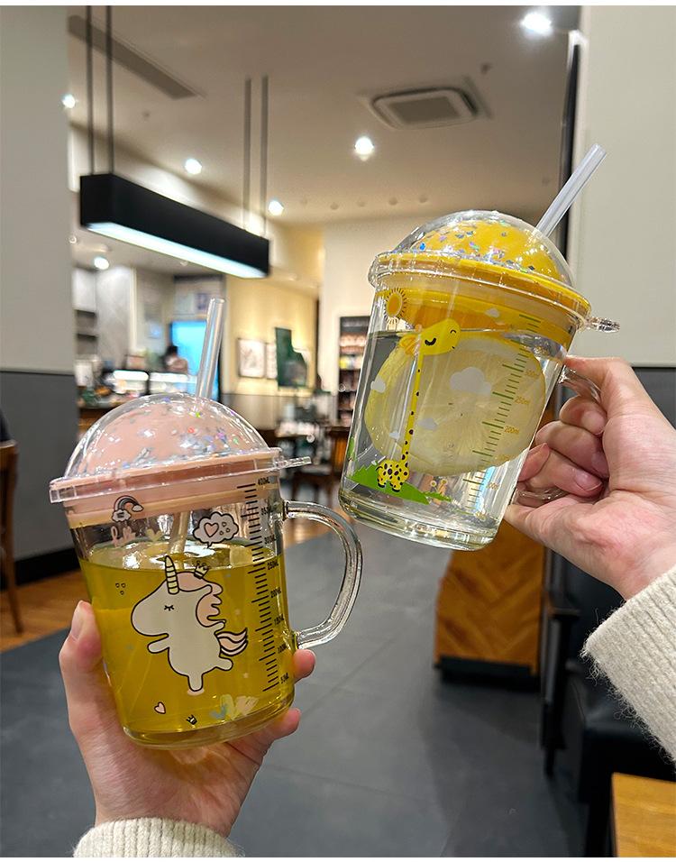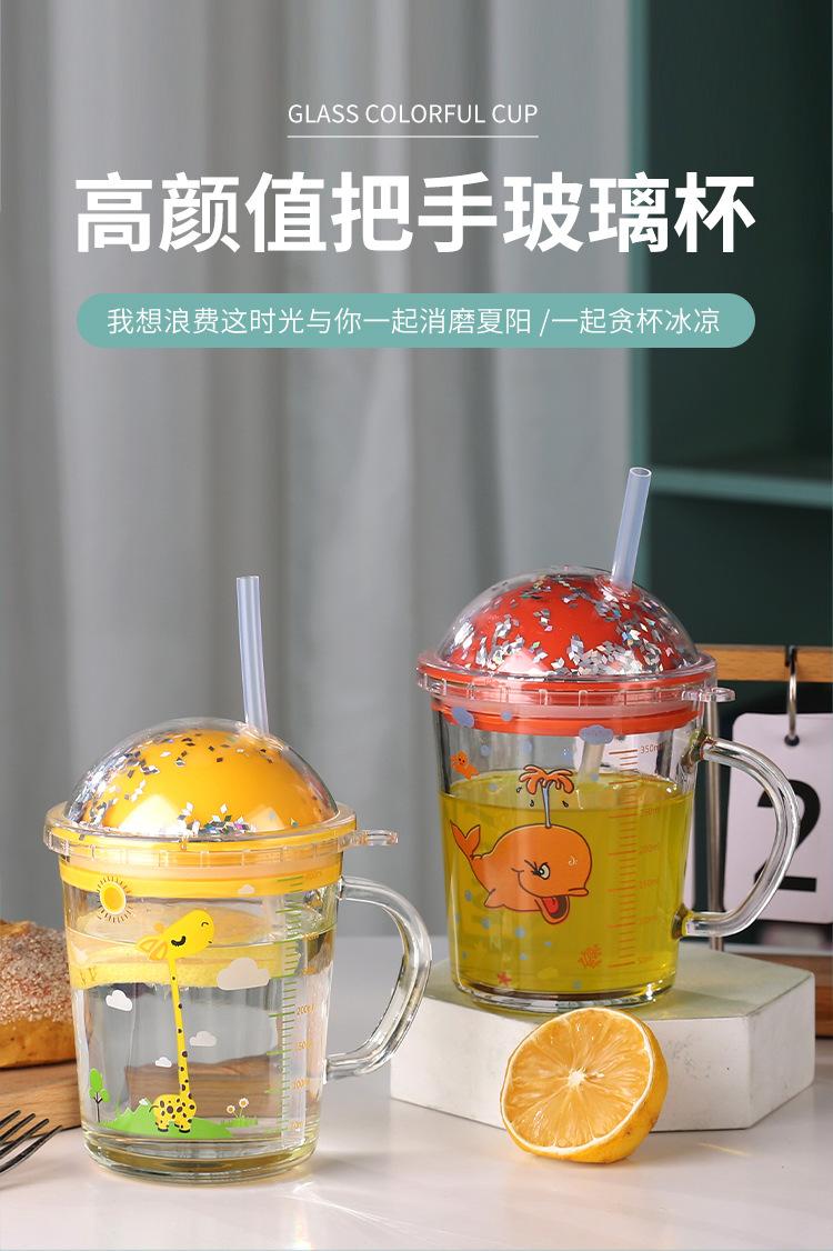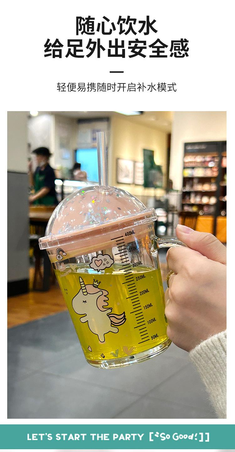 Taza de Regalo de Apertura Se Puede Imprimir con Logotipo, Colorida y de Aspecto Elegante, Vaso de Agua con Tapa, Vaso con Popote de Vidrio, Vaso Espacial de Verano, Personalizable