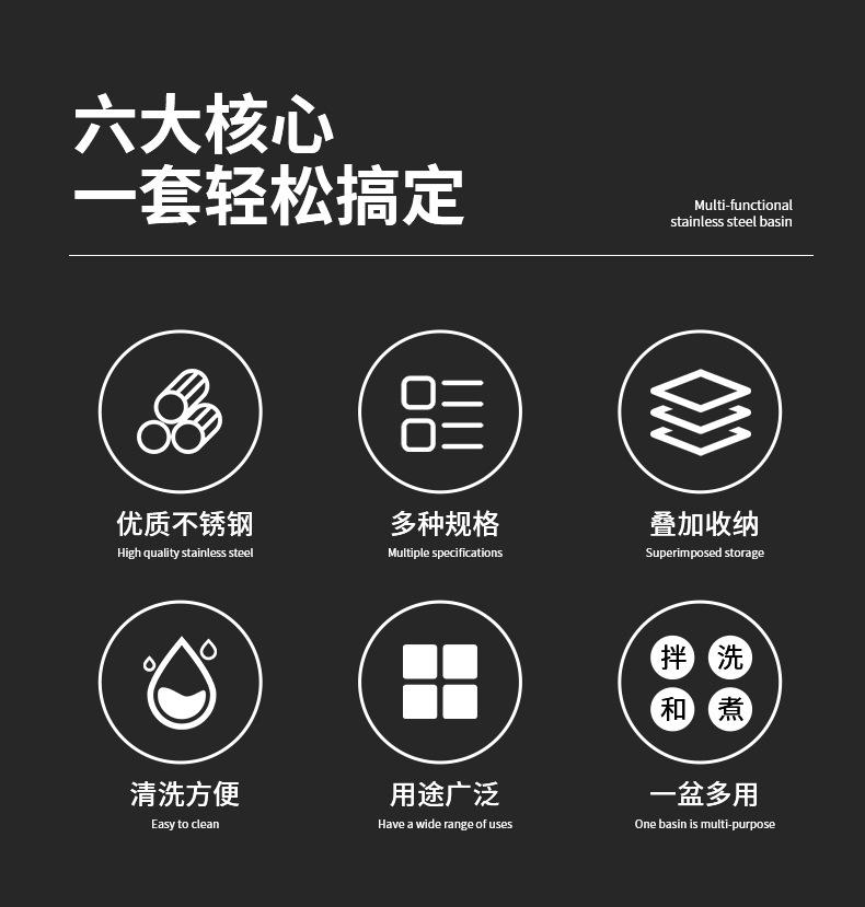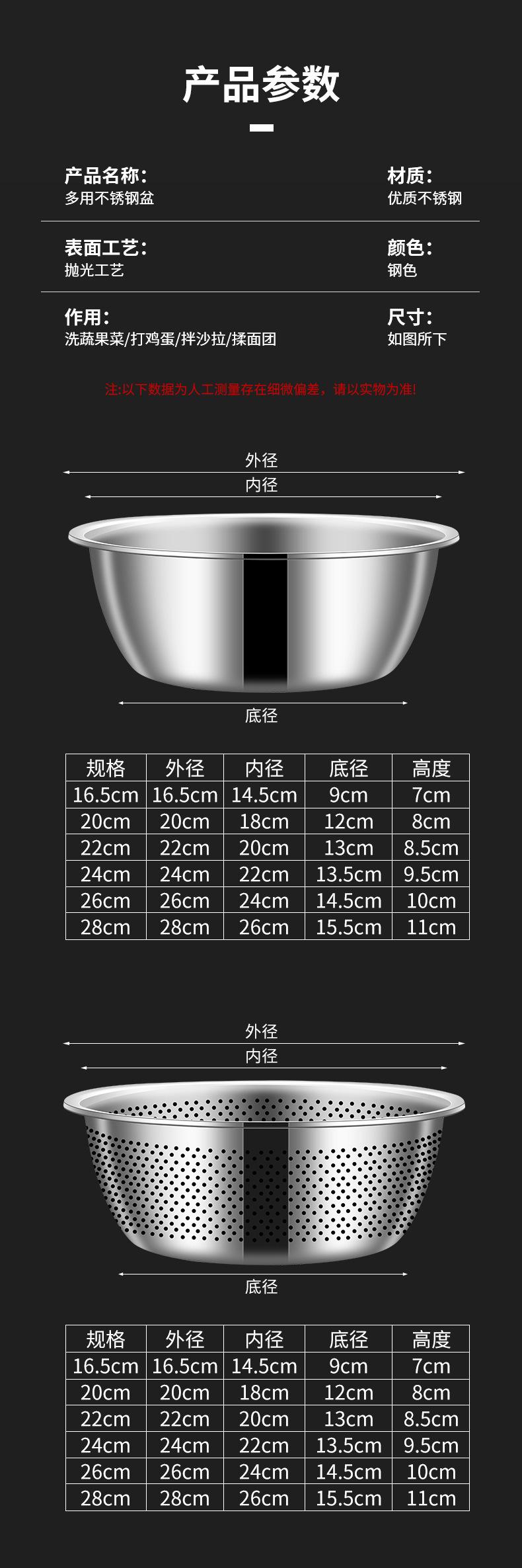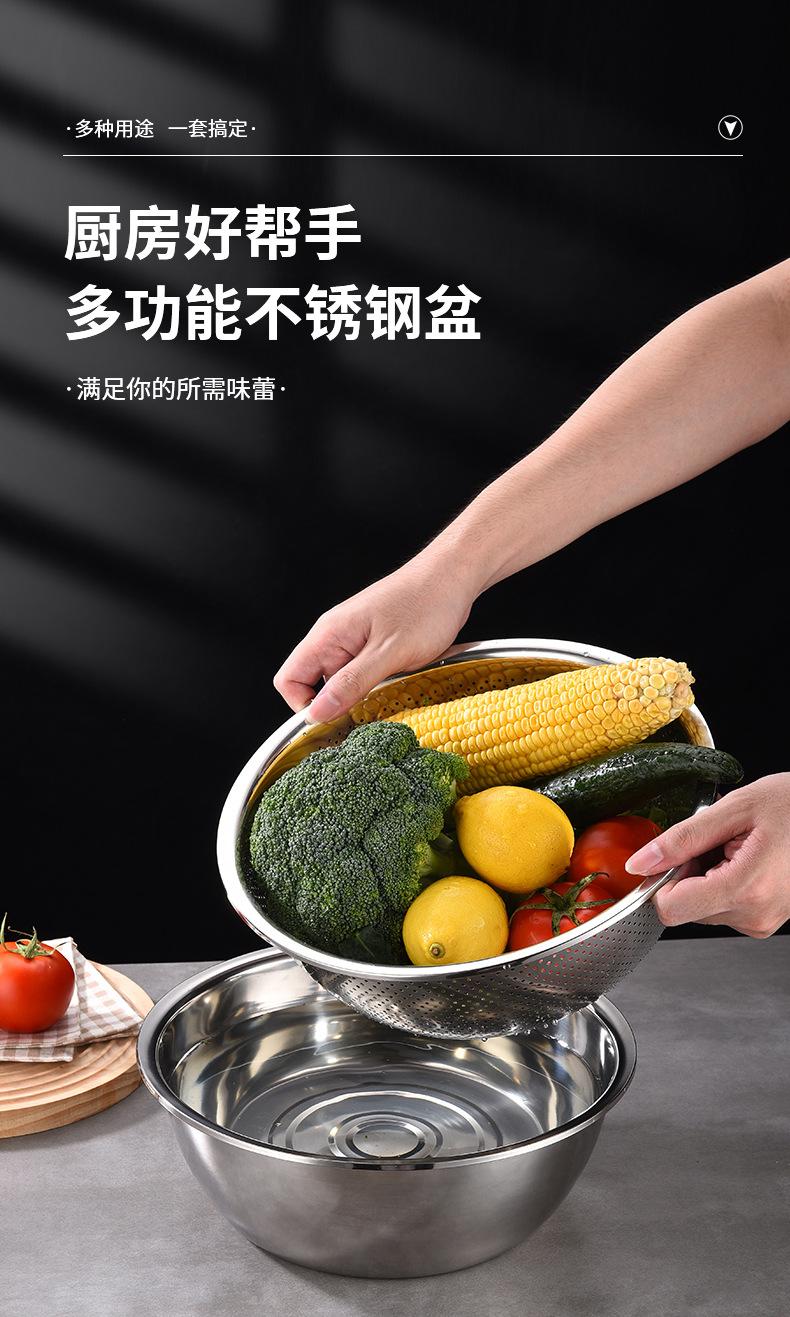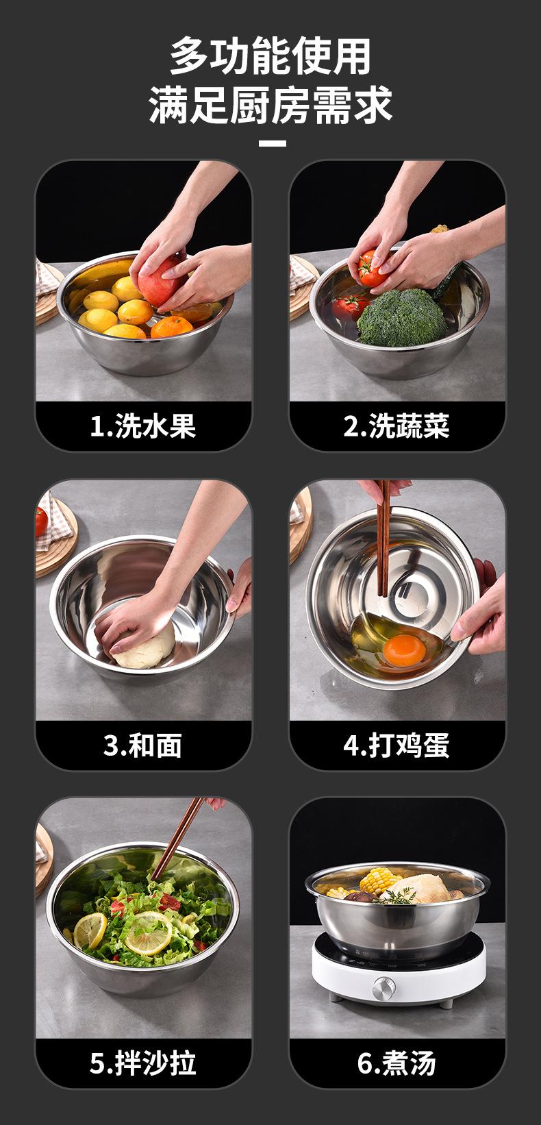 Lavabo de acero inoxidable 304 de grado alimenticio para uso doméstico, ideal para batir huevos y preparar sopa de fideos, lavar verduras y mezclar en un recipiente espesado.