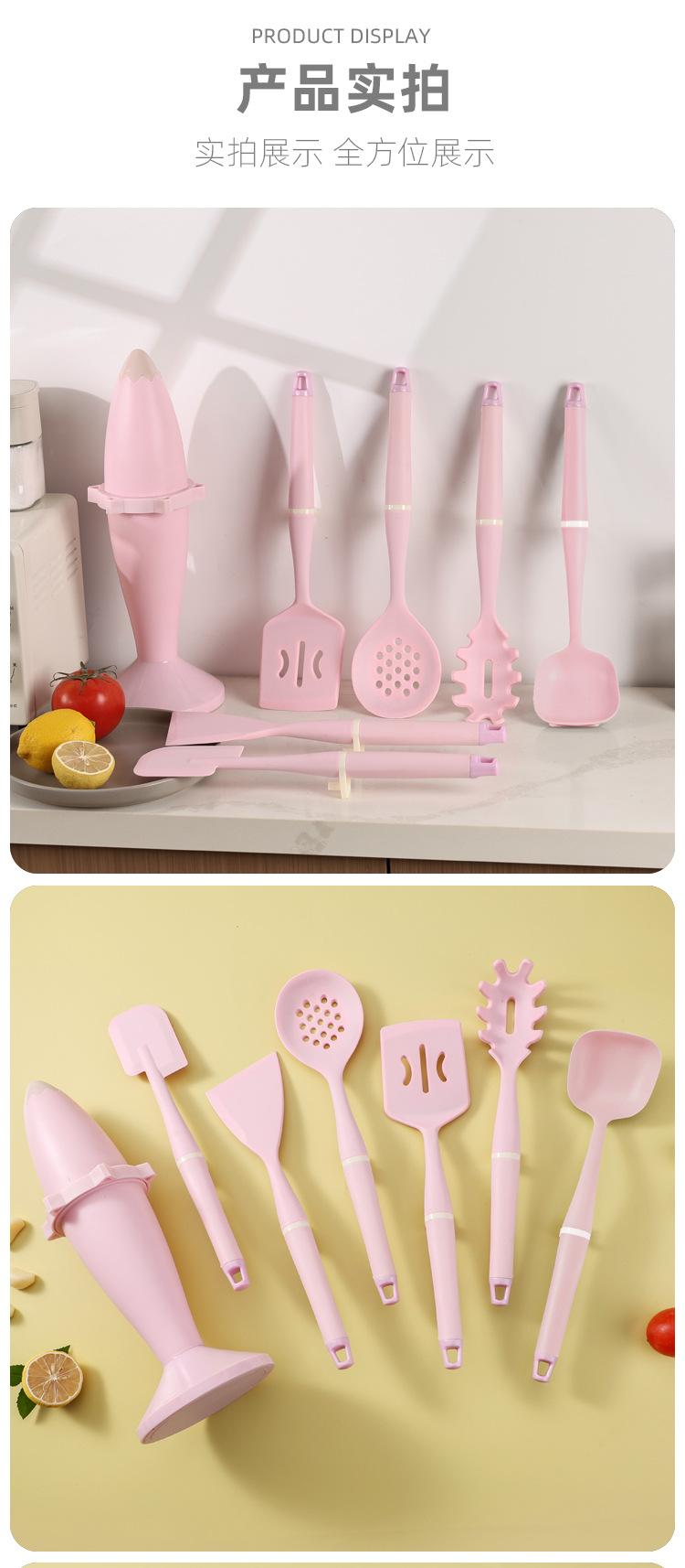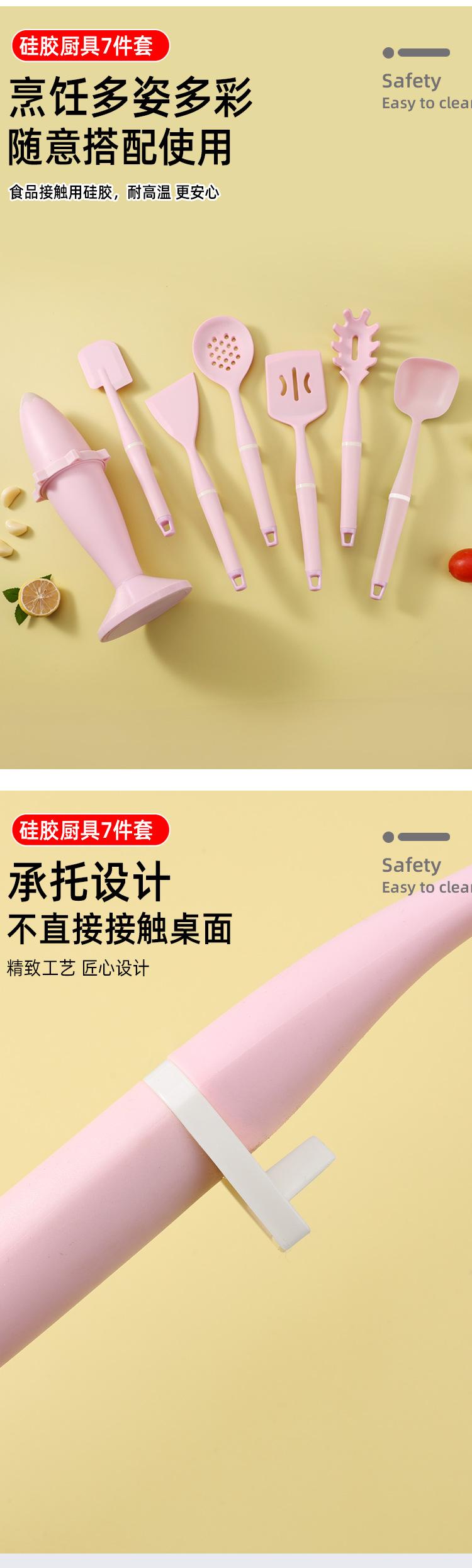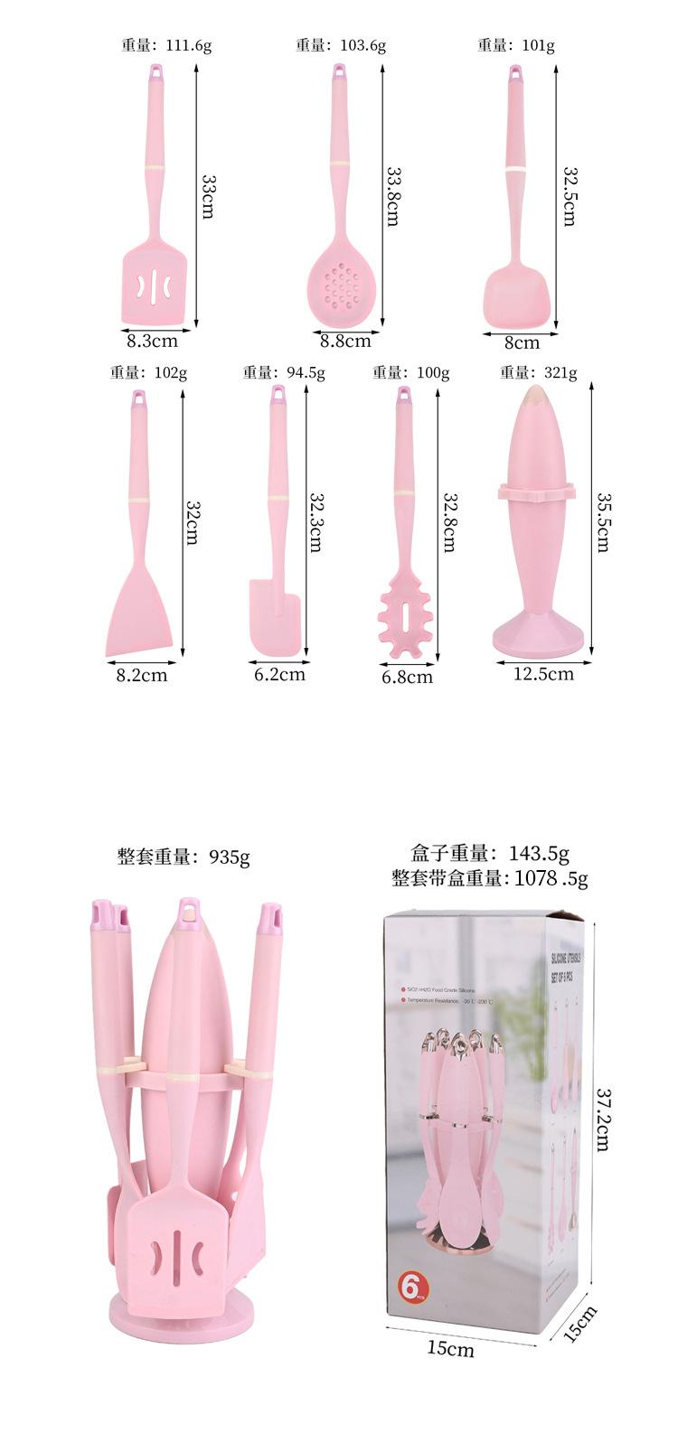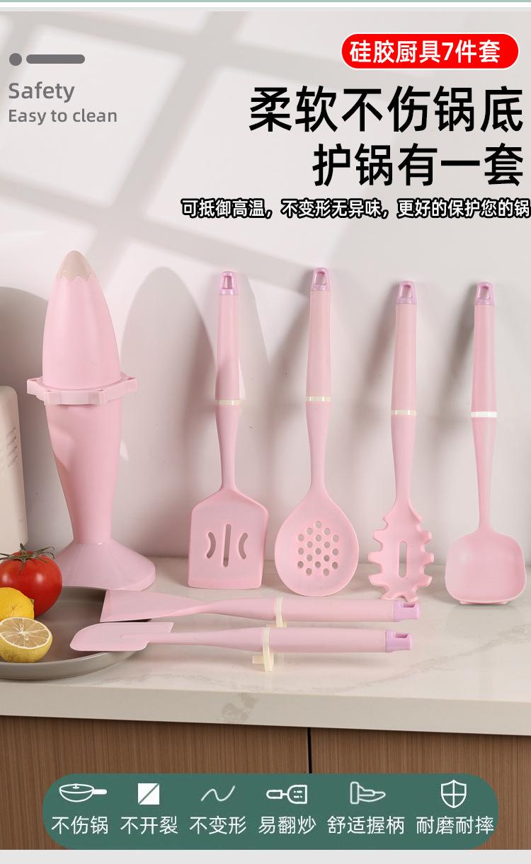 Set de Utensilios de Cocina de Silicona de 7 Piezas Cocina Hogar Antiadherente Espátula para Cocinar Cuchara para Sopa con Soporte para Almacenamiento Set de Utensilios de Cocina