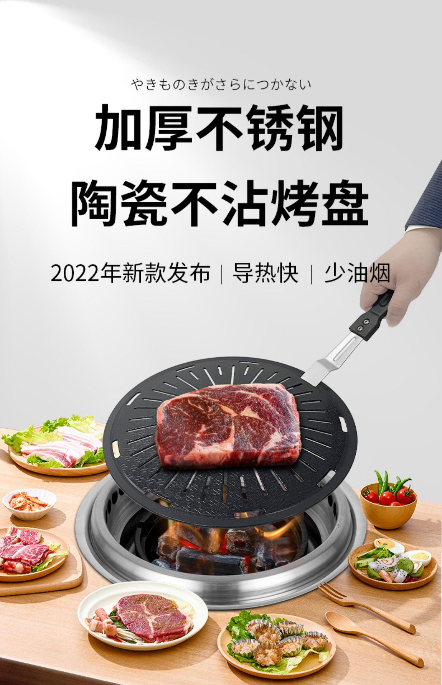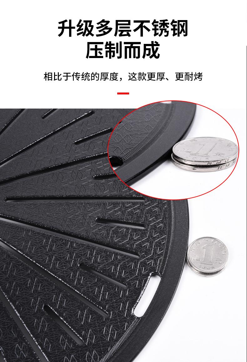 Plato Parrilla de Carbón Coreano Malla de Parrilla de Acero Inoxidable Malla de Barbacoa Engrosada Rejilla Redonda para Barbacoa Sartén Comercial para Asar Bistecs
